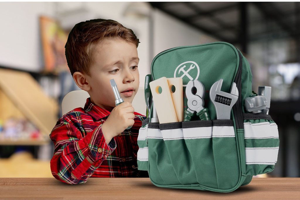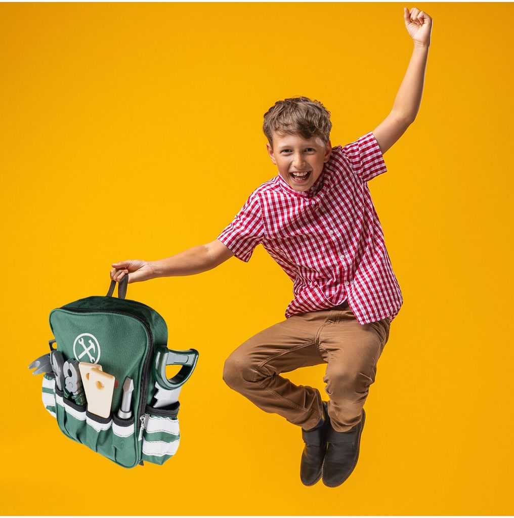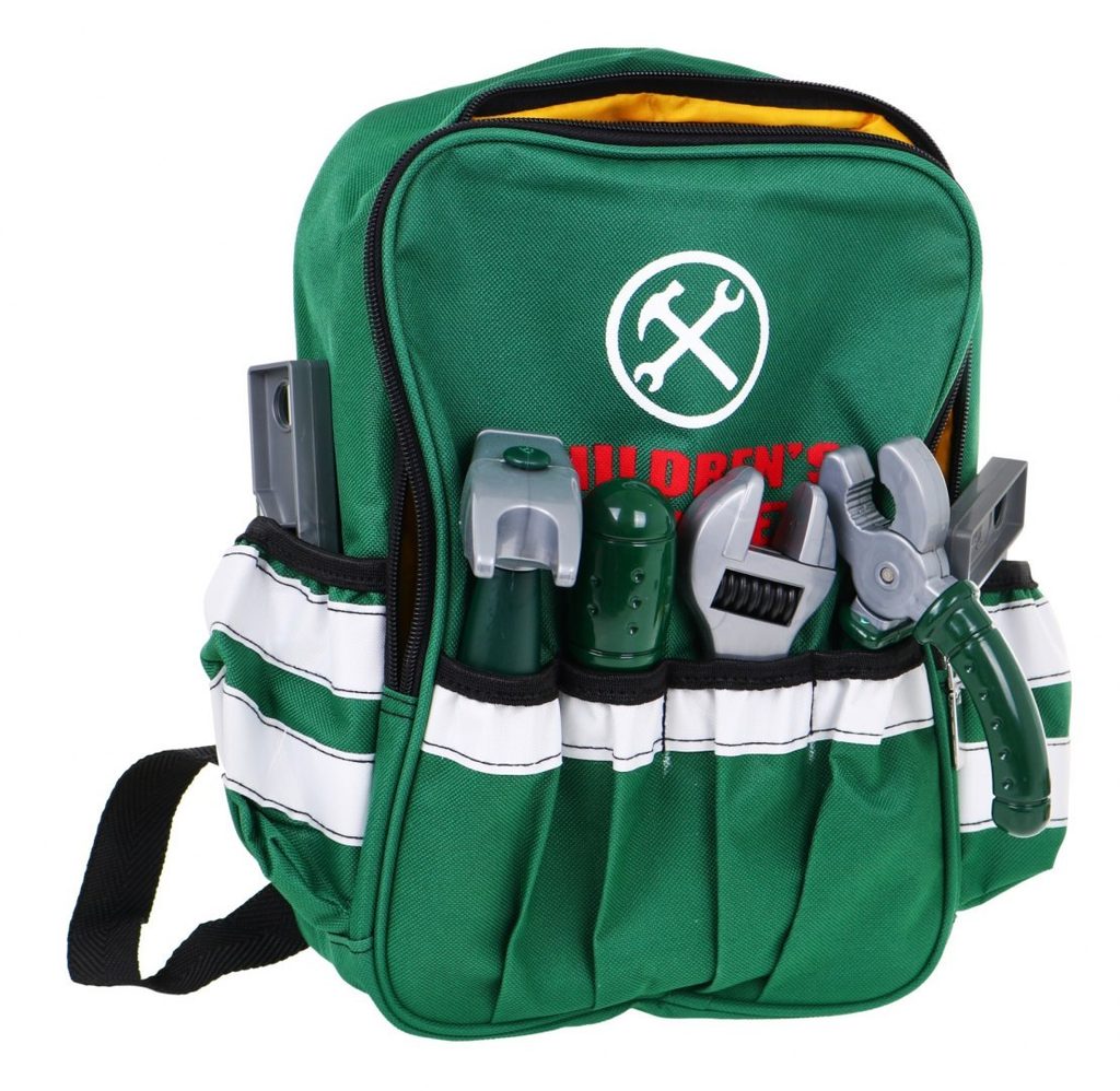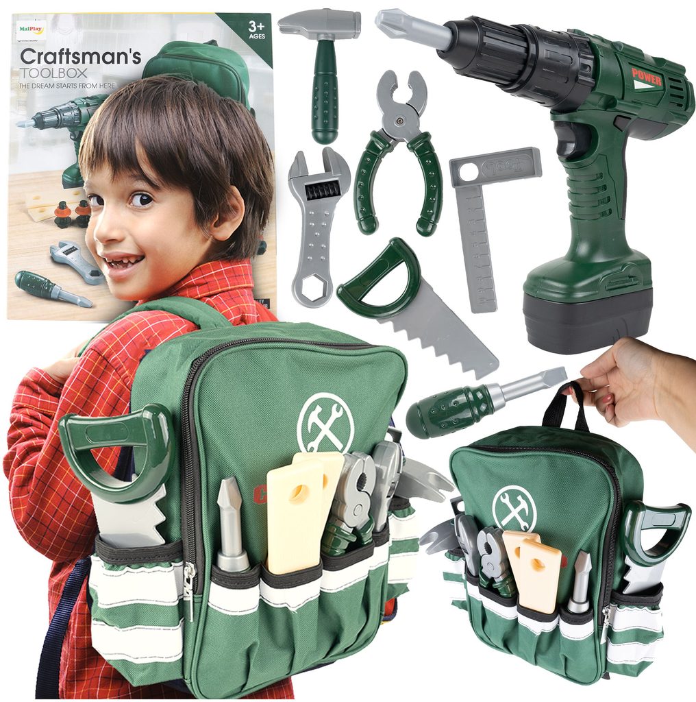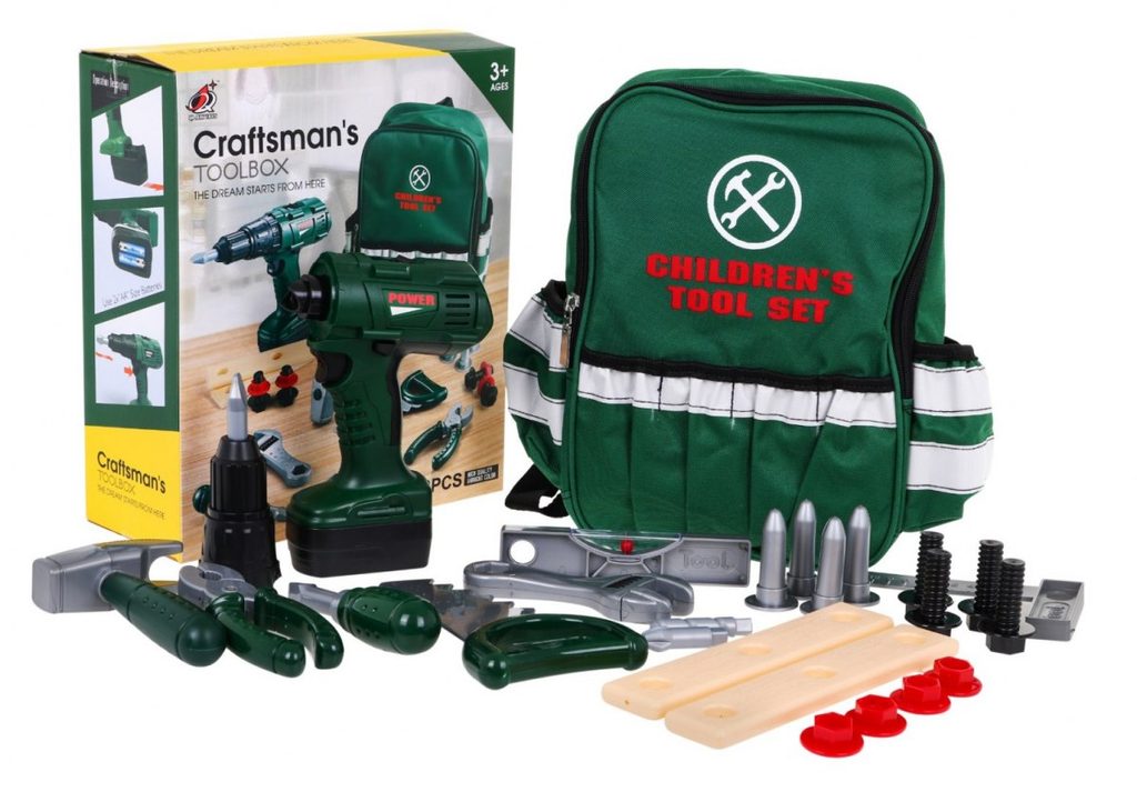 Sada plastového nářadí v praktickém uzavíratelném batůžku s dvěma bočními kapsami Craft Toolbox je ideální hračkou pro všechny malé kutily. Díky batůžku si může své oblíbené nářadí přenášet kamkoliv bude potřebovat. Sada obsahuje celkem 19 součástí včetně kladívka, klíče, šroubků, kleští, úhelníku, pilky, matic a dalšího nářadí. V sadě je také vrtačka na baterie, které po zapnutí vydává charakteristický zvuk. Hračka je určena pro děti od 36 měsíců věku.