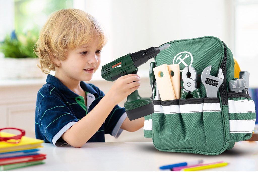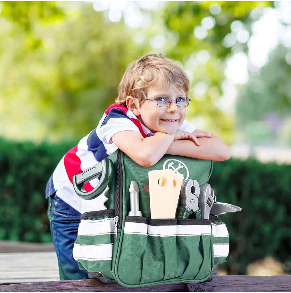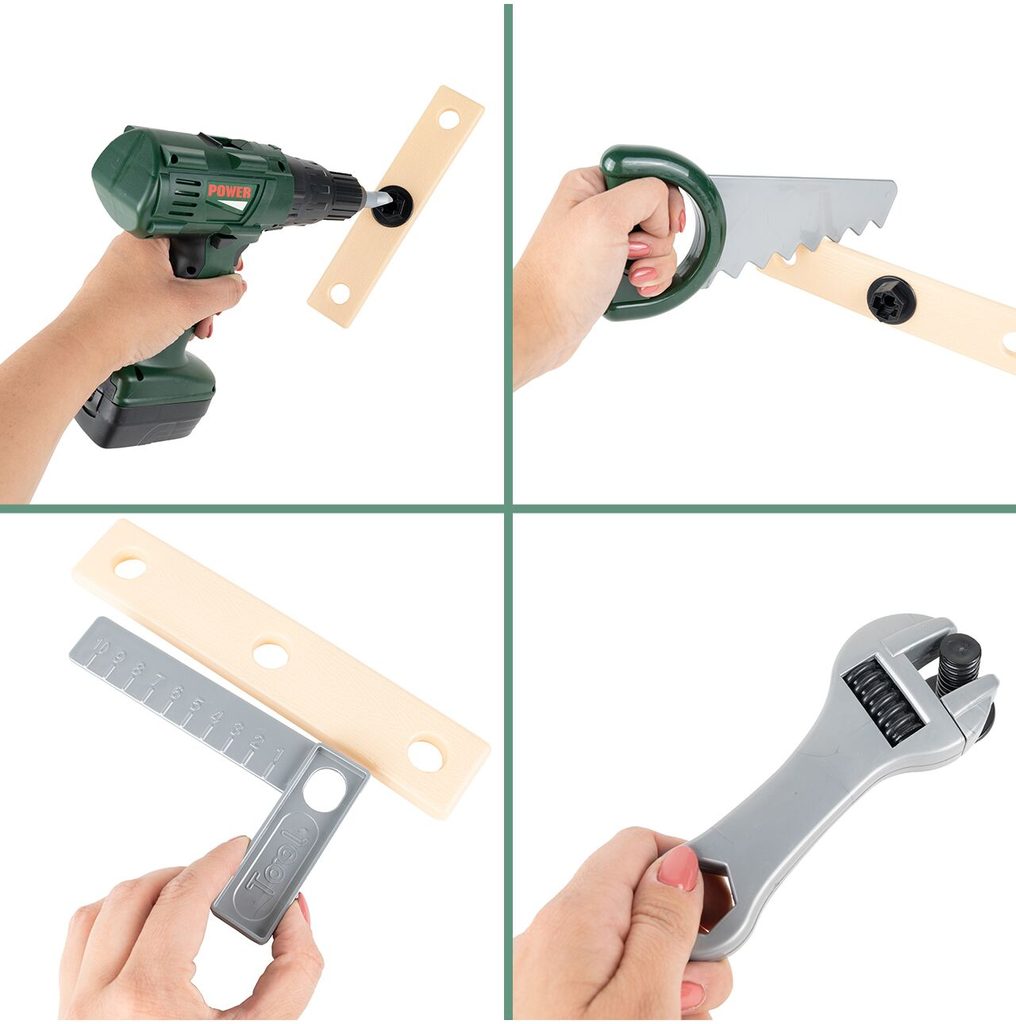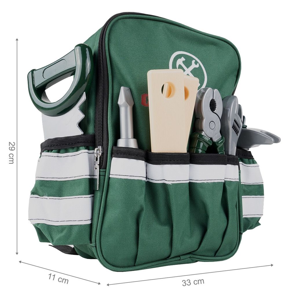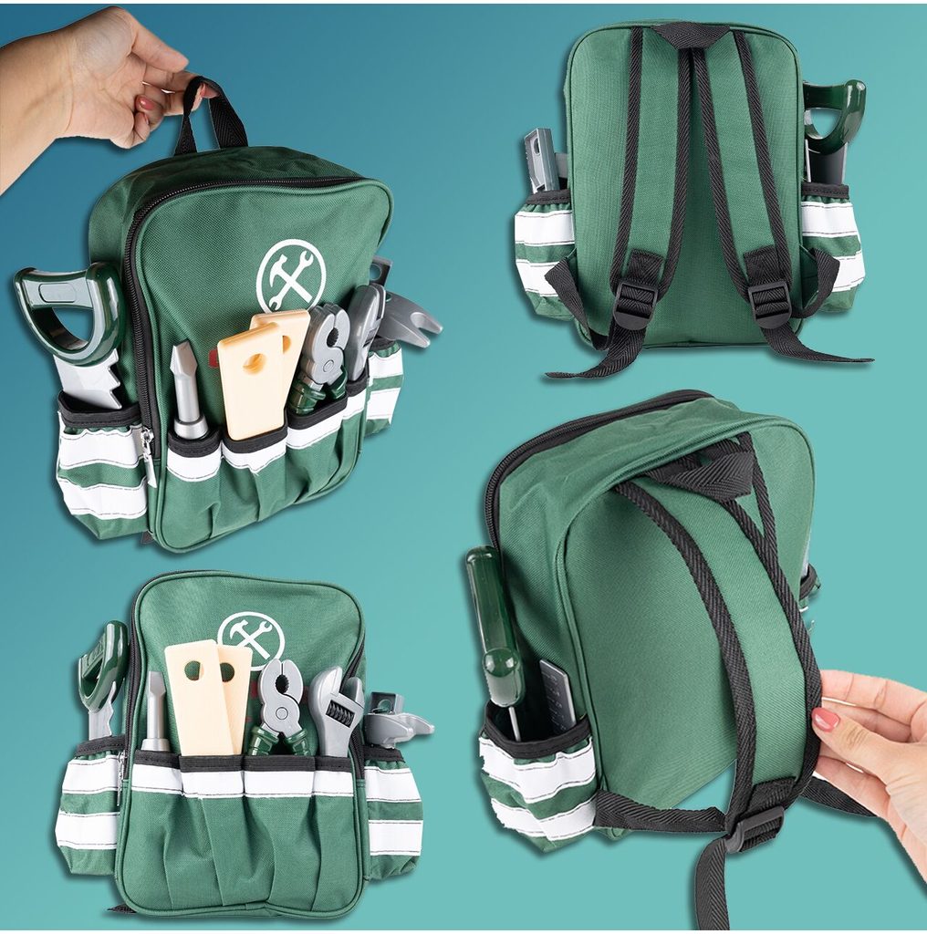 Sada plastového nářadí v praktickém uzavíratelném batůžku s dvěma bočními kapsami Craft Toolbox je ideální hračkou pro všechny malé kutily. Díky batůžku si může své oblíbené nářadí přenášet kamkoliv bude potřebovat. Sada obsahuje celkem 19 součástí včetně kladívka, klíče, šroubků, kleští, úhelníku, pilky, matic a dalšího nářadí. V sadě je také vrtačka na baterie, které po zapnutí vydává charakteristický zvuk. Hračka je určena pro děti od 36 měsíců věku.
