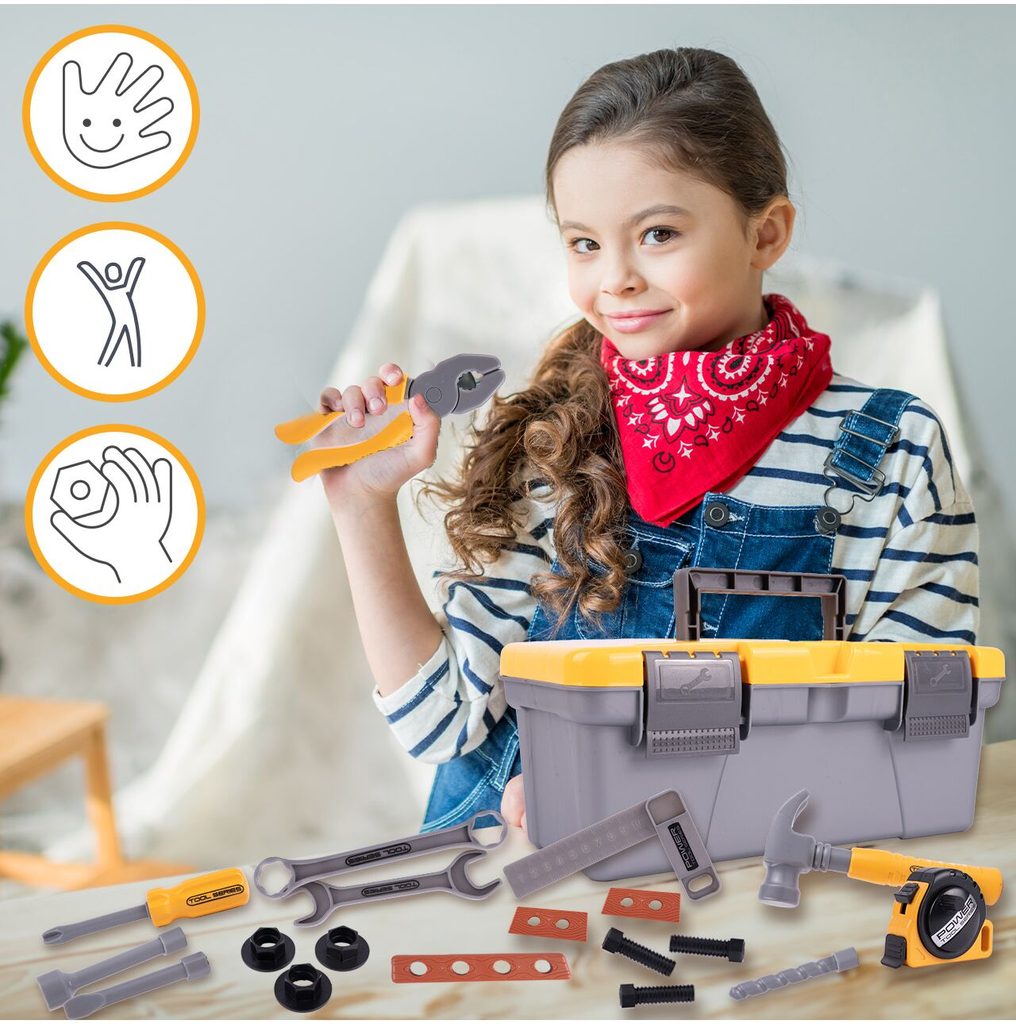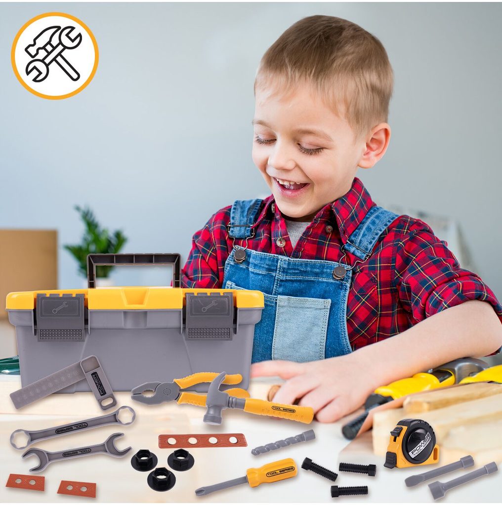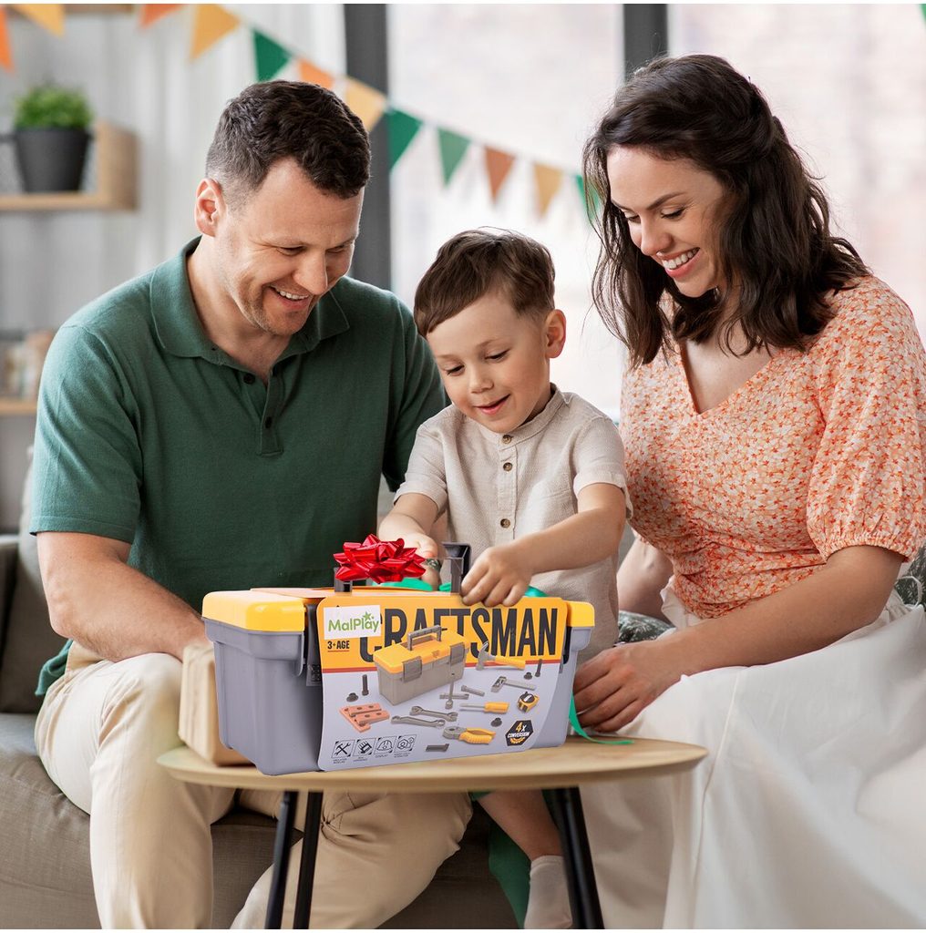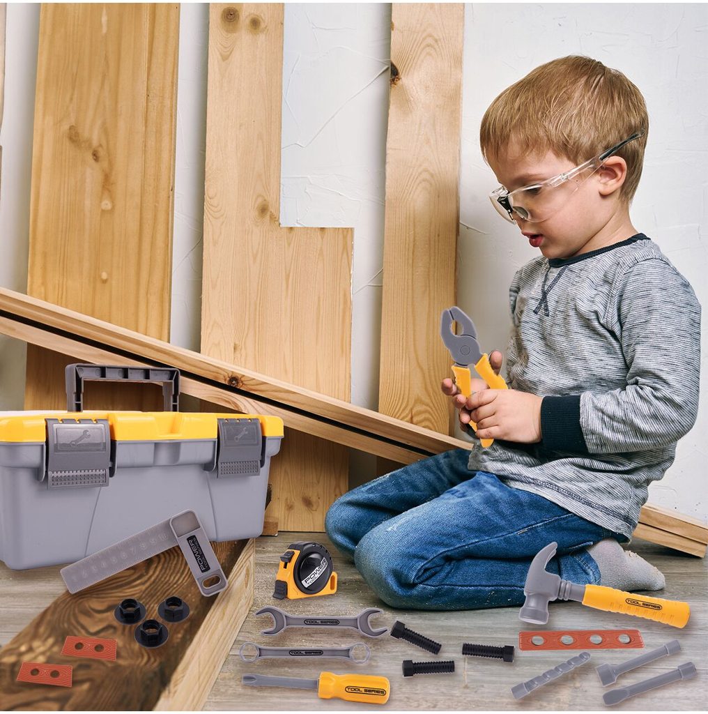 Sada plastového nářadí pro nejmenší kutily Craftsman Box v praktickém přenosném kufříku. Sada obsahuje mnoho součástí včetně kladívka, klíčů, šroubků, kleští, metru, šroubků, matic a dalších konstrukčních prvků. Hračka je určena pro děti od 36 měsíců věku.
