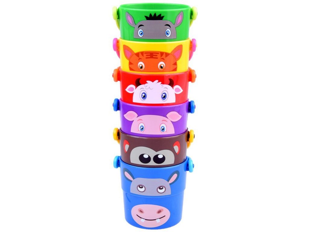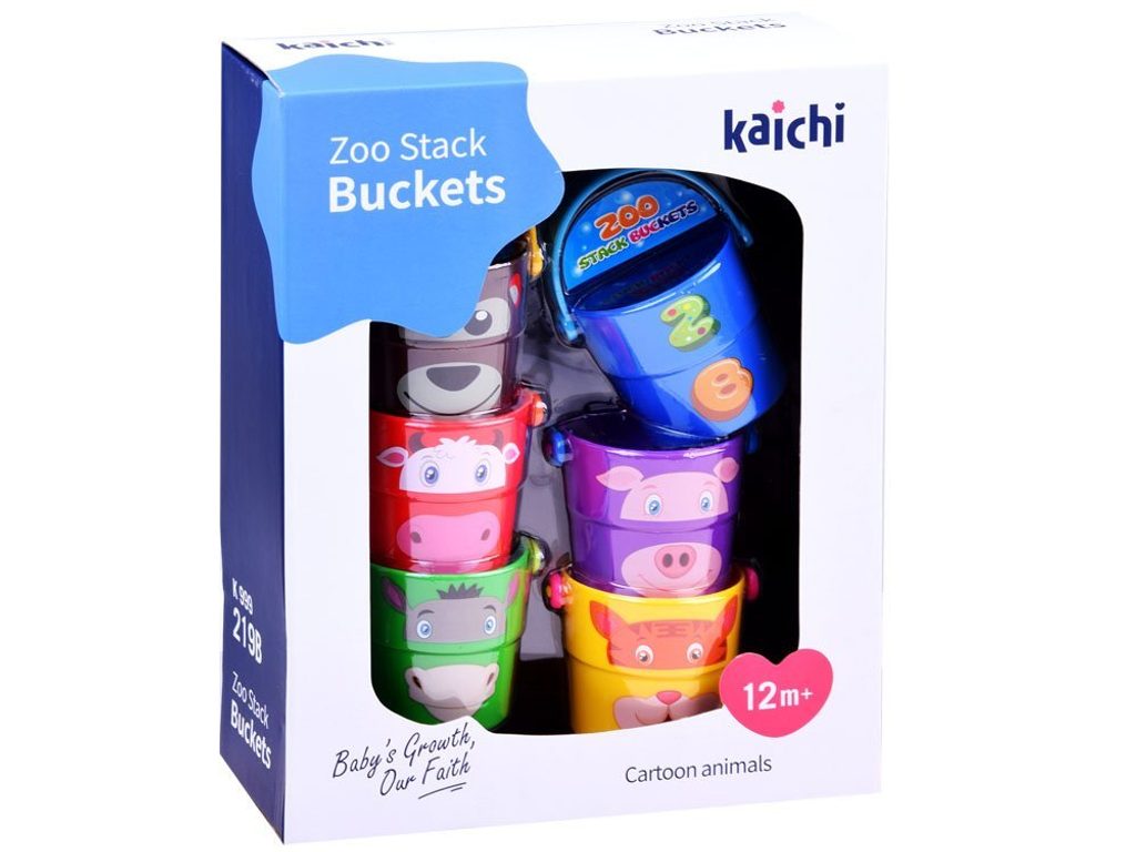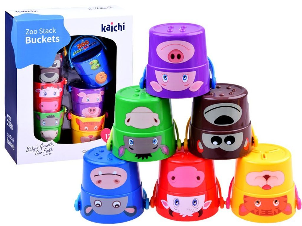 Sada dětských kyblíčků Zoo Buckets je ideální hračkou na pískoviště nebo do vany. Ve dně kyblíčku jsou otvory, dítě tak může pozorovat jak protéká voda. Na stranách každého kyblíčku jsou obrázky zvířátek a číslic. Lze také vytvořit pyramidu o výšce 24 cm. Každý kyblíček má úchyt. Určeno pro děti od 12 měsíců.