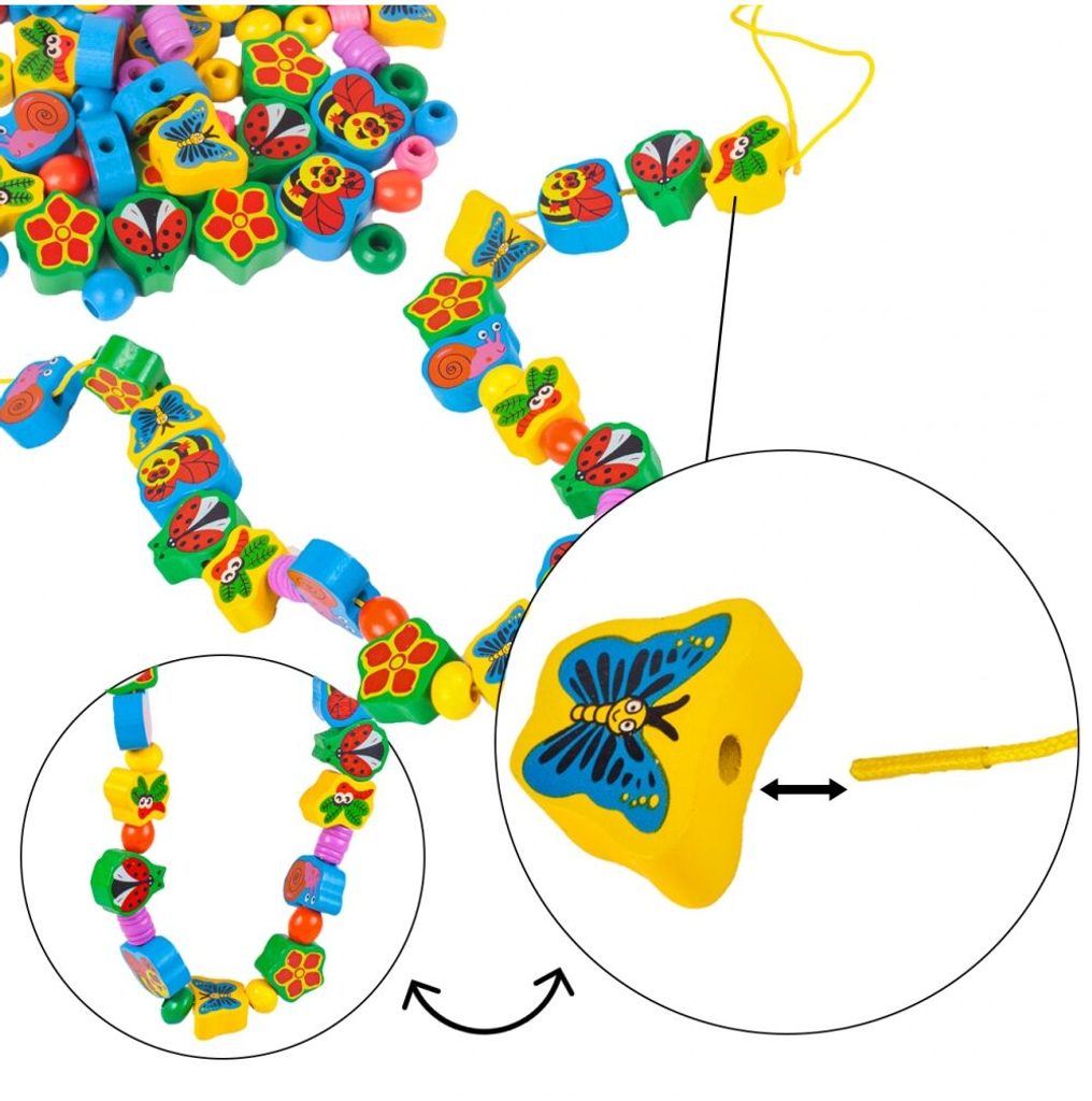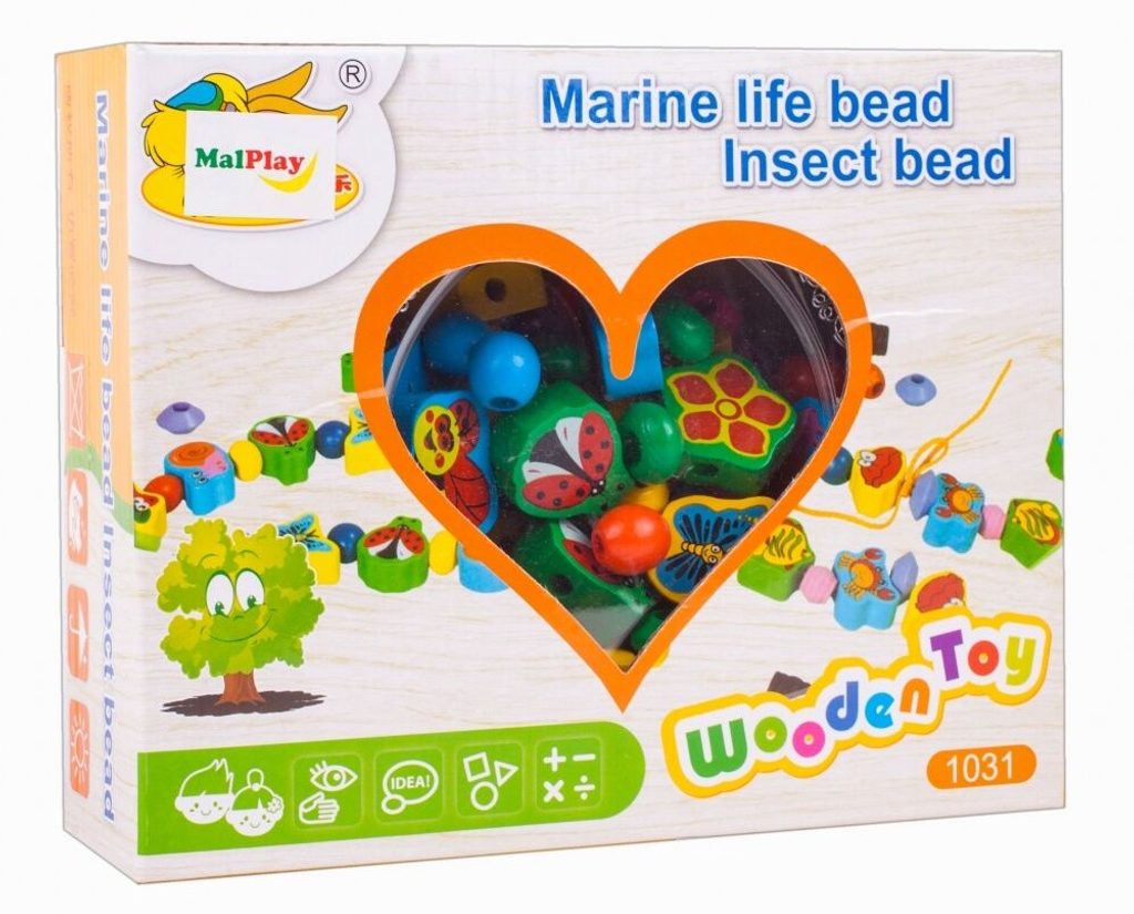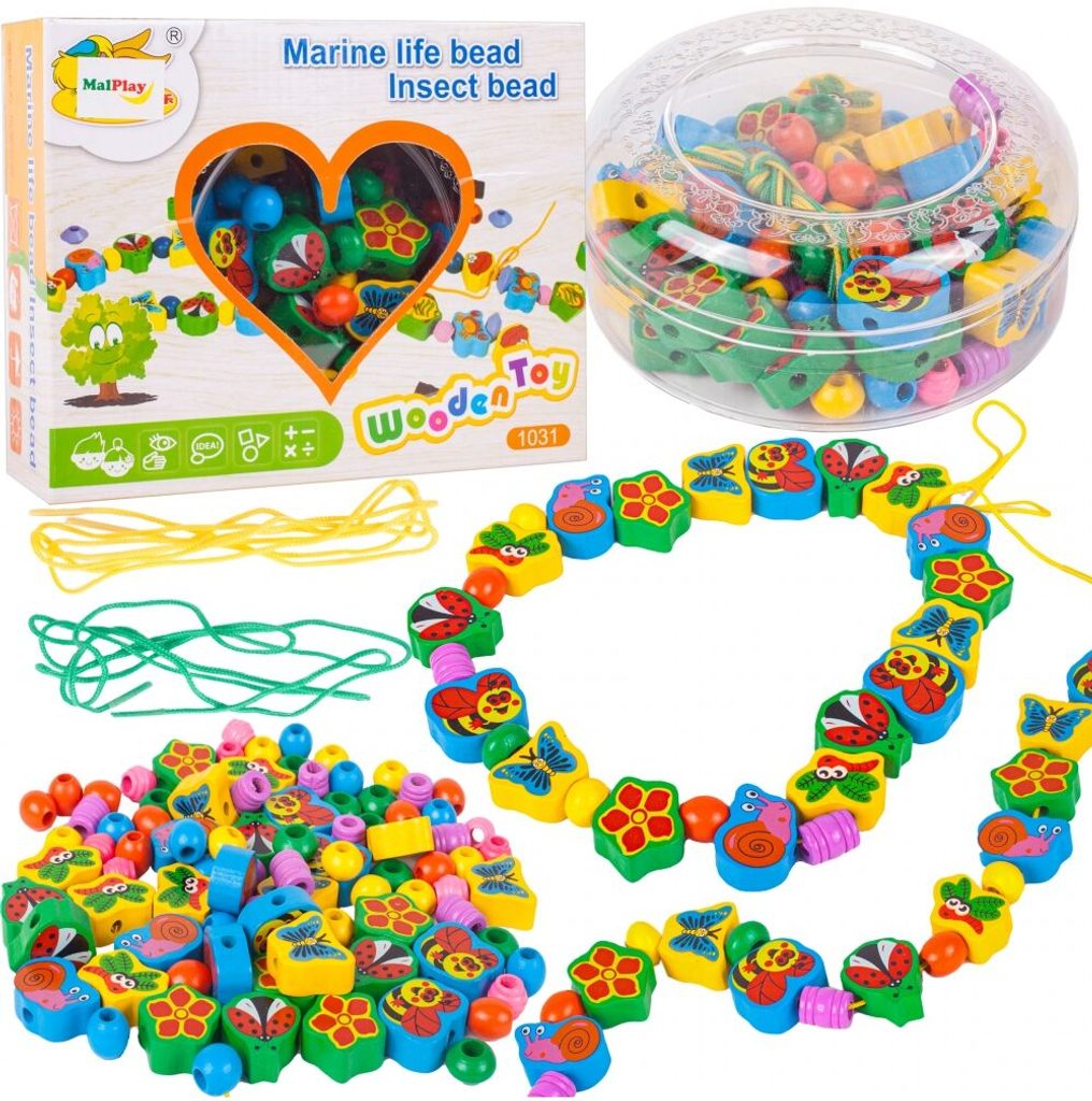 Sada dřevěných korálků Marine Beads pro výrobu dřevěných šperků a bižuterie. Sada obsahuje mnoho druhů korálků v různých tvarech a barevných provedeních a 2 šňůrky na navlékaní. Zabavte sebe i své dítě touto velkou kreativní sadou korálků a výsledkem se můžete pochlubit všem okolo. Vše je uloženo v plastové krabici s úchytem. Hračka je vyrobená v pestrobarevném provedení a určena pro děti od 6 let.