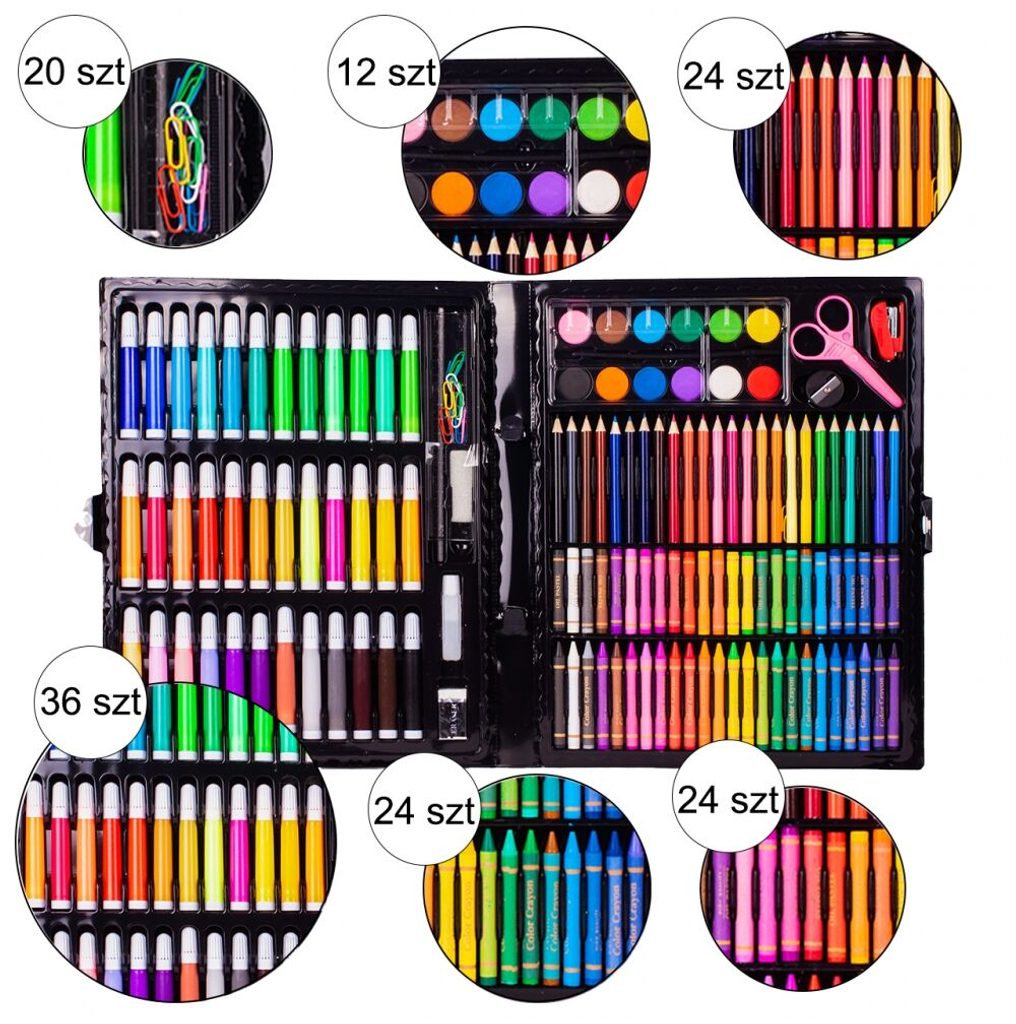 Sada na kreslení a malování Art Set je skvělou hračkou při první nauce psaní a kreslení. Najdete zde vše co malý umělec potřebuje pro svou práci. Sada obsahuje 2 druhy pastelek, vodové barvy, fixy, gumu, ořezávátko, lepidlo, plastové sponky, sešívačku, křídy a štětec. Vše je uloženo v praktickém kufříku. Tato hračka je určena pro děti od 6 let věku.