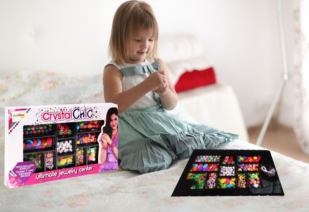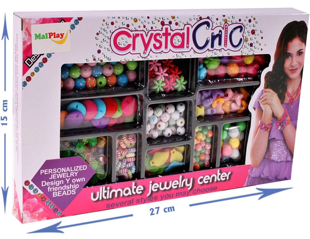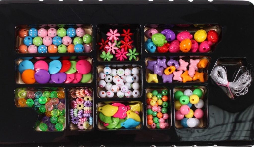 Sada korálků pro výrobu šperků a bižuterie. Sada obsahuje mnoho druhů korálků v různých tvarech a barevných provedeních a šňůrky na navlékaní. Zabavte sebe i své dítě touto velkou kreativní sadou korálků a výsledkem se můžete pochlubit všem okolo. Vše je uloženo v barevné krabici s průhlednými otvory, která má celkem 12 přihrádek. Hračka je vyrobená z plastu v pestrobarevném provedení a určena pro děti od 5 let.