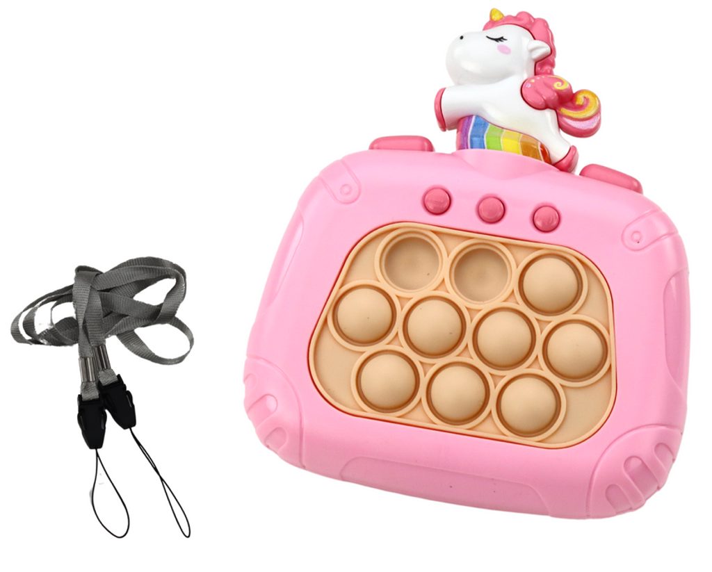 Hra Pop It s roztomilým jednorožcem je mimořádná hračka, která svým kouzlem a inovací potěší děti i dospělé. Tato barevná konzole, vybavená 4 herními režimy, nabízí nejen skvělou zábavu, ale také stimuluje smysly prostřednictvím světelných a zvukových efektů, díky nimž je každý okamžik strávený s ní jedinečný. Konzole Pop It je víc než jen způsob, jak zabít nudu. Je to také skvělá příležitost pro rozvoj motorické koordinace a logického myšlení. Návykové mačkání tlačítek není jen zdrojem zábavy, ale vyžaduje také soustředění a schopnost rozpoznávat vzory, díky čemuž je hra interaktivní a rozvíjející se. Hra je navíc dodávána s provázkem, který lze připevnit ke konzoli, což usnadňuje přenášení. Díky svému roztomilému designu jednorožce je tato konzole nejen zábavná, ale také lahodí oku. Je to také skvělý tip na dárek, který jistě potěší děti i dospělé hledající jedinečnou zábavu a odpočinek.