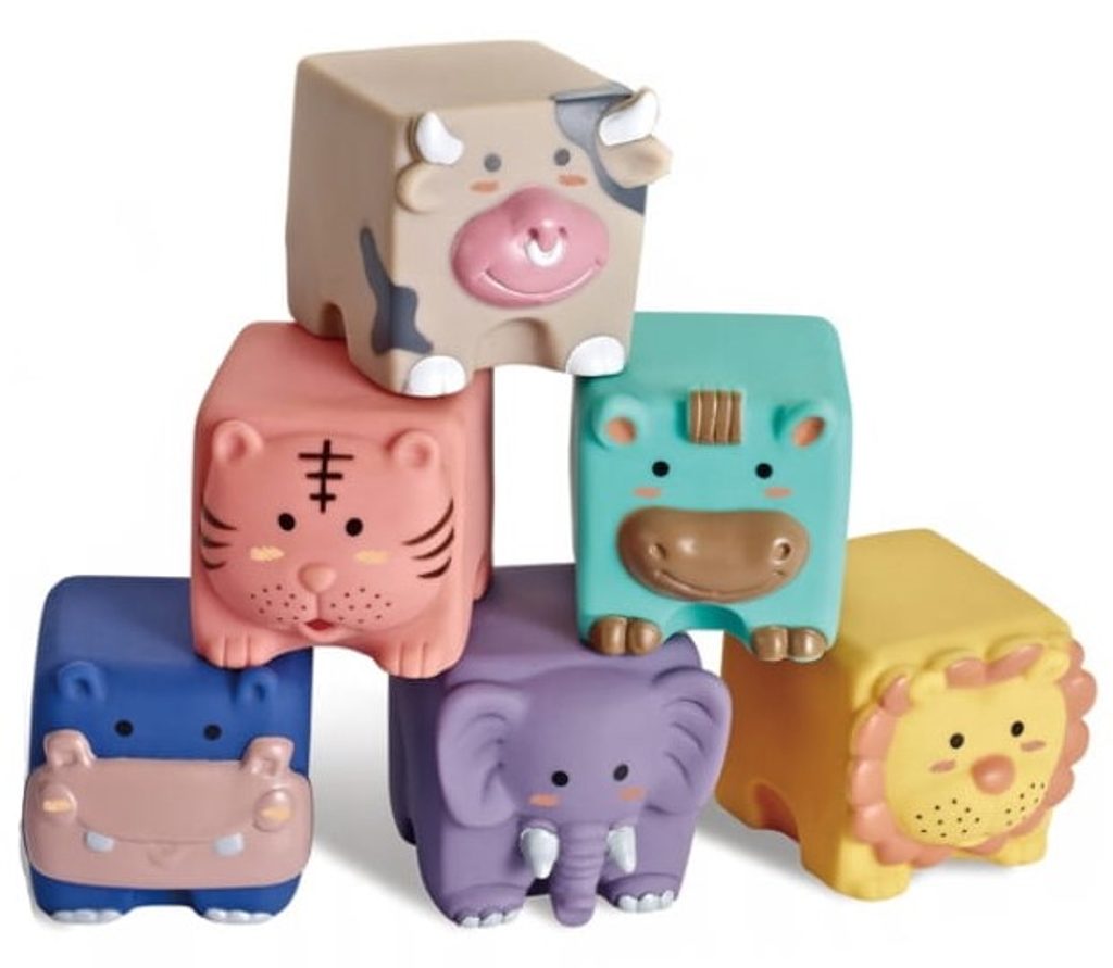Sada měkkých senzorických kostek se zvířátky Animal Building Blocks je určena pro ty nejmenší děti. Stimuluje u nich představivost, mysl, zrak a sluch. Zmáčknutím se ozve "pískot" a navíc tímto dítě posiluje ruce. V sadě najdete celkem 6 kostek v různých barvách vyrobených ze zcela bezpečného materiálu. Hračka je určena pro děti od 6 měsíců věku.