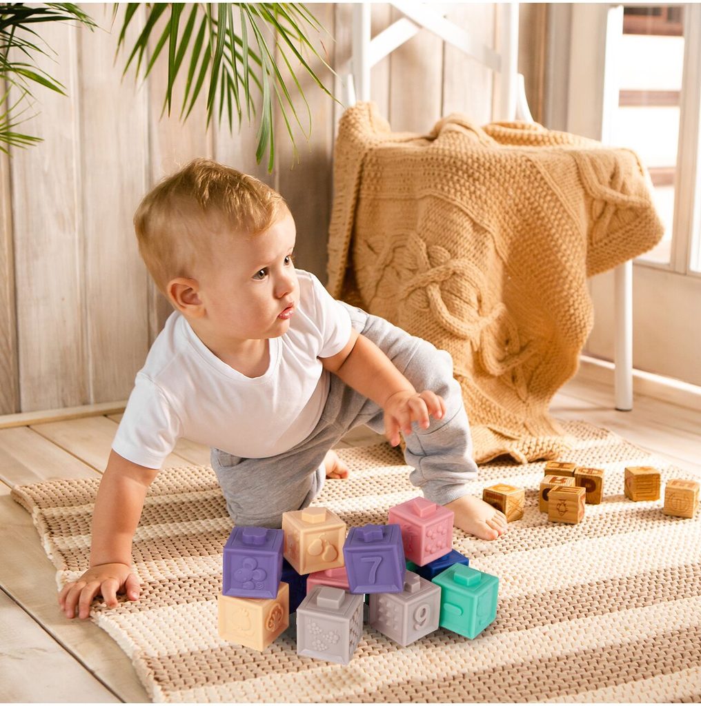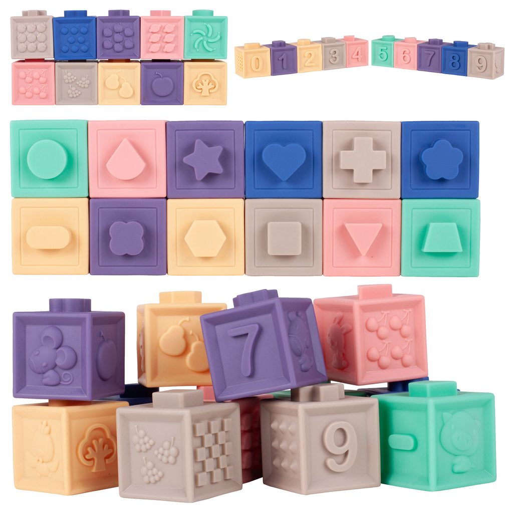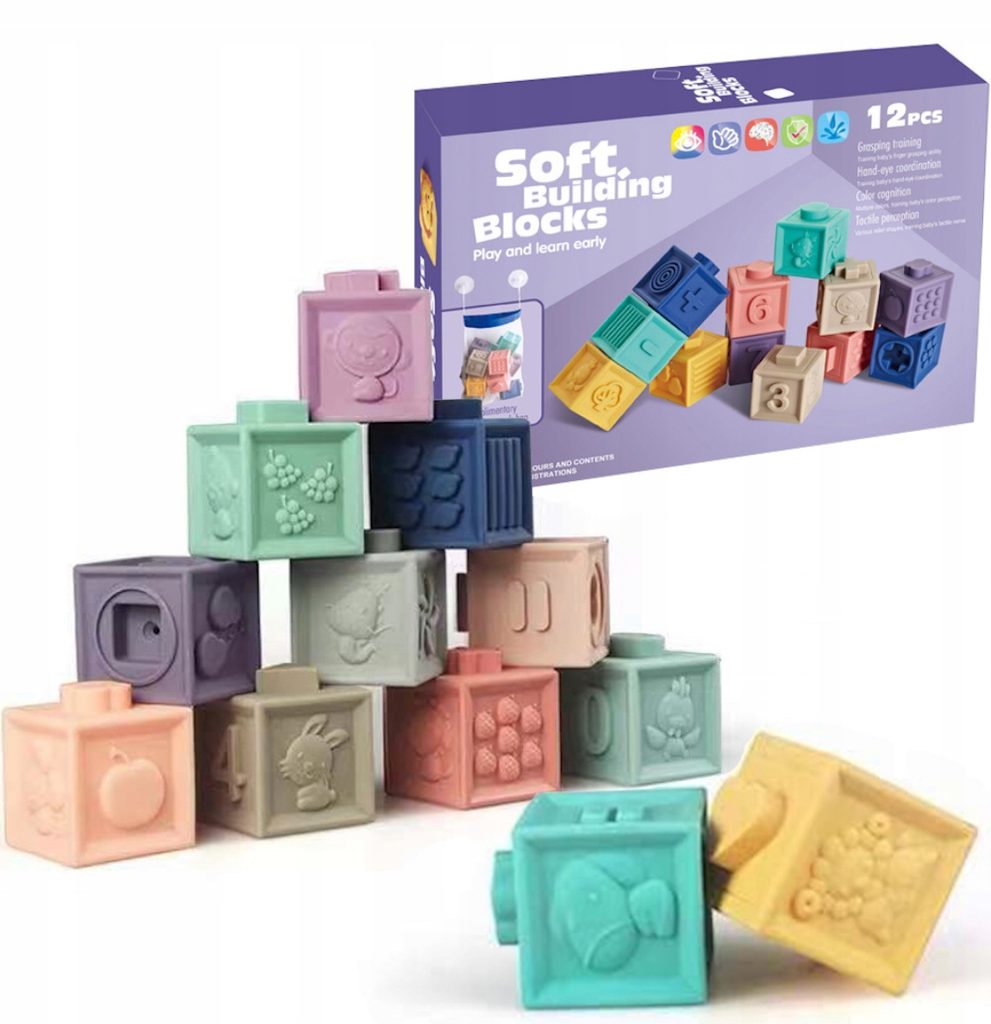 Sada měkkých senzorických kostek se zvířátky Color Building Blocks je určena pro ty nejmenší děti. Stimuluje u nich představivost, mysl, zrak a sluch. Zmáčknutím se ozve "pískot" a navíc tímto dítě posiluje ruce. V sadě najdete celkem 12 kostek v různých barvách vyrobených ze zcela bezpečného materiálu. Povrch kostek má různé textury. Hračka je určena pro děti od 6 měsíců věku.
