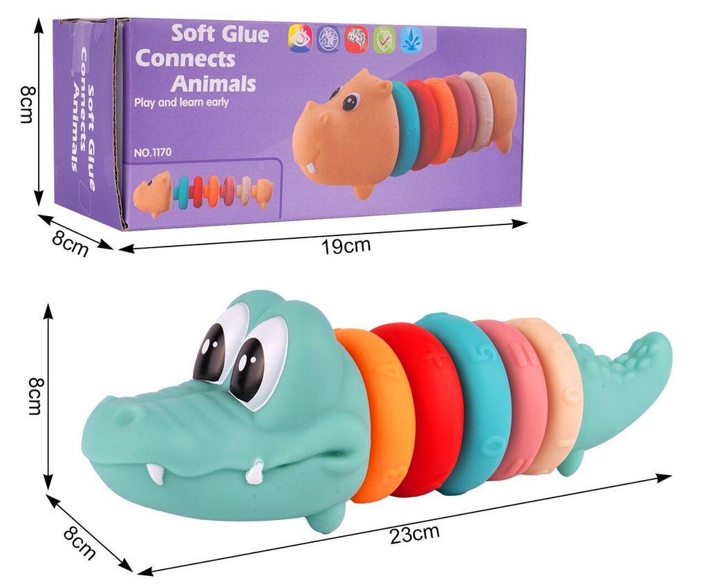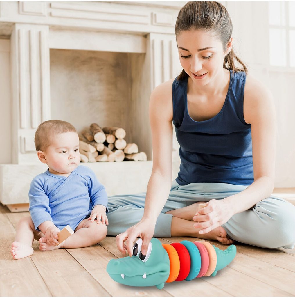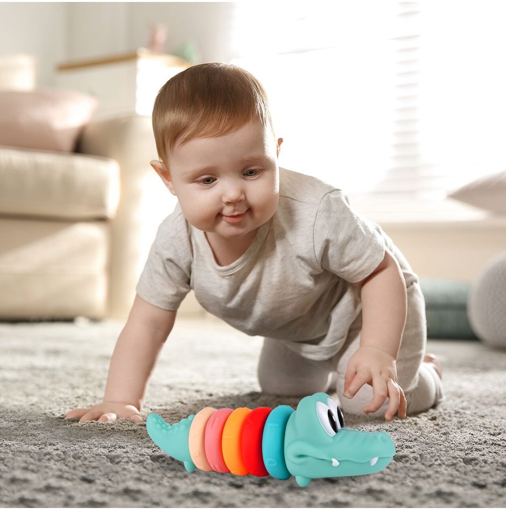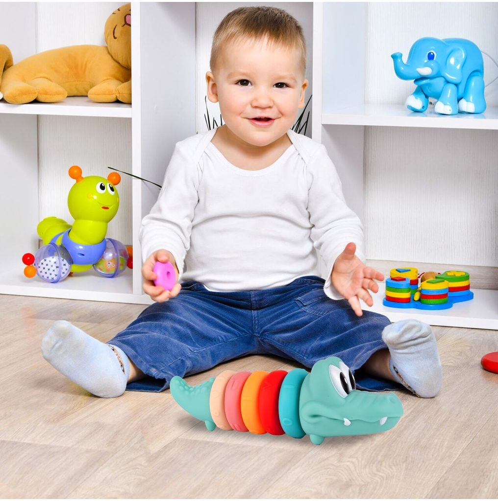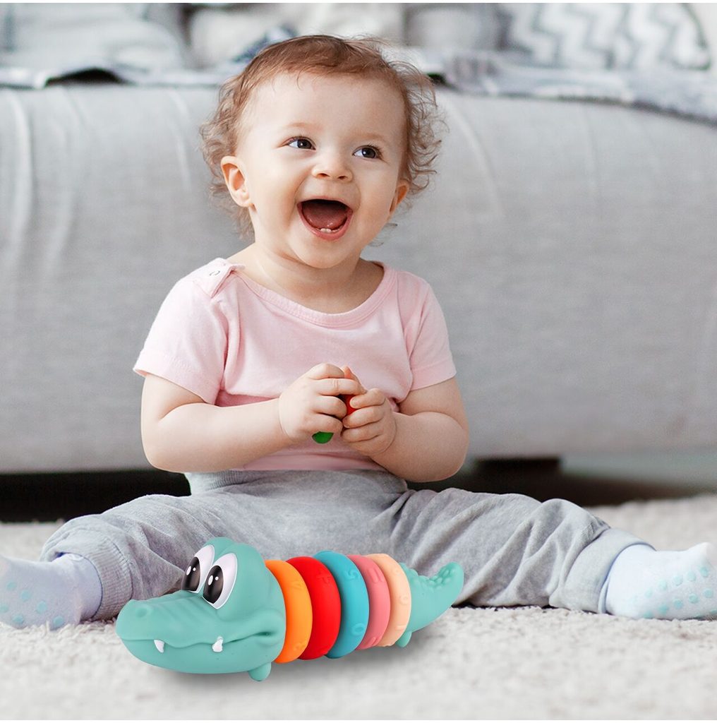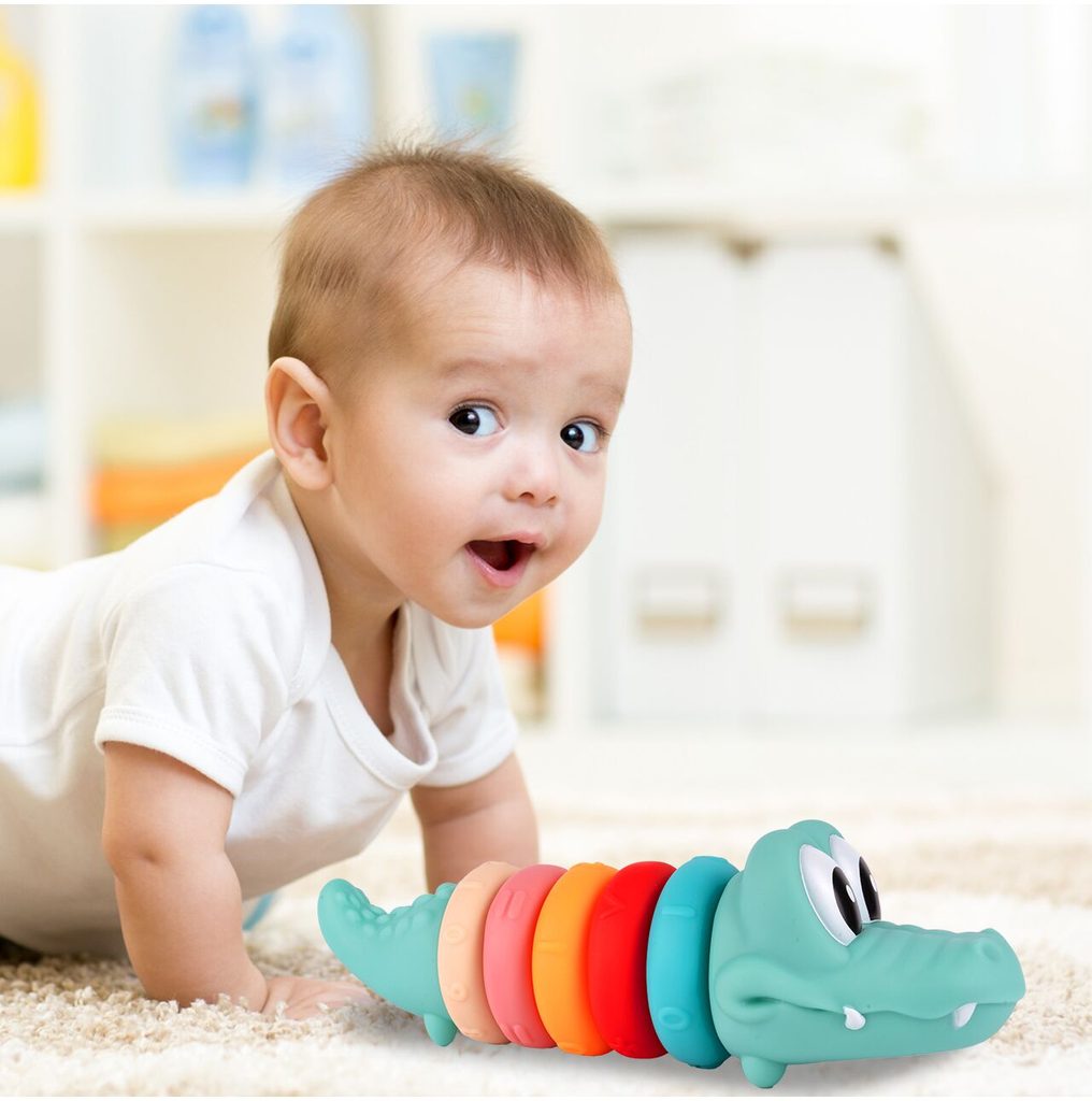 Sada měkkých senzorických kroužků Color Crocodille určena pro ty nejmenší děti. Stimuluje u nich představivost, mysl, zrak a sluch. V sadě najdete celkem 7 součástí, 5 barevných kroužků s číslicemi, hlavu a ocas krokodýla. Vše se dá spojit v celek, nebo si s nimi lze hrát samostatně. Hračka je určena pro děti od 6 měsíců věku.