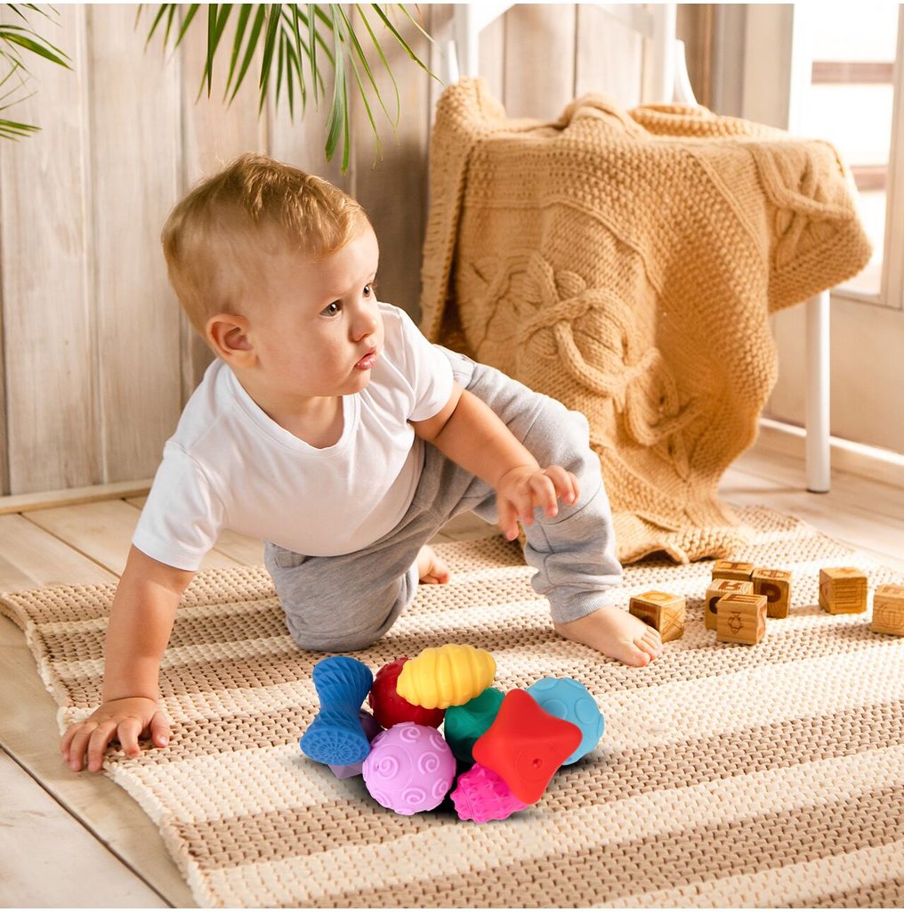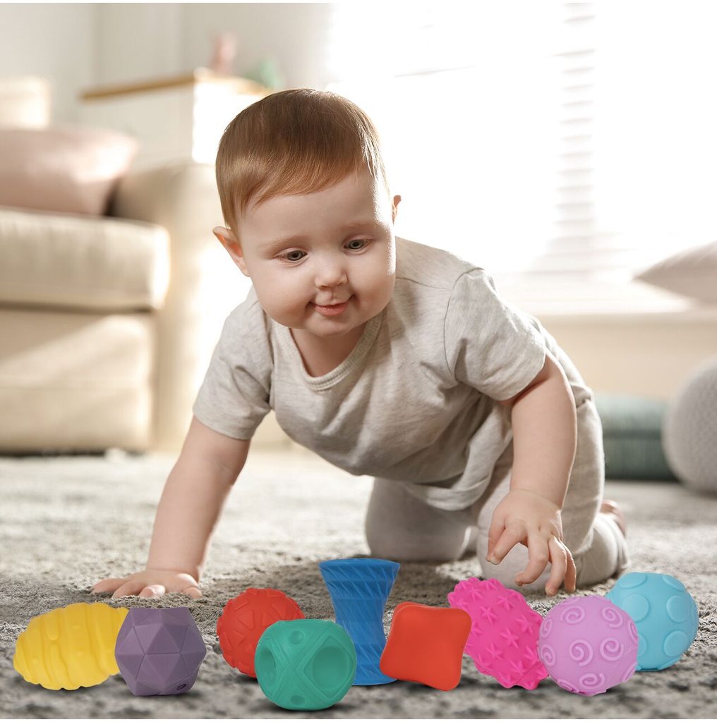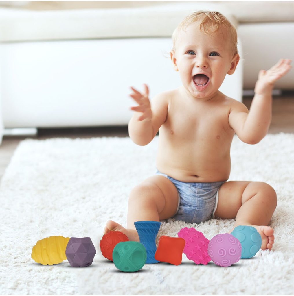 Sada měkkých senzorických míčků Multi Ball Set je určena pro ty nejmenší děti. Stimuluje u nich představivost, mysl, zrak a sluch. Zmáčknutím  dítě posiluje ruce. V sadě najdete celkem 9 míčků v různých barvách, tvarech a velikostech vyrobených ze zcela bezpečného materiálu. Hračka je určena pro děti od 18 měsíců věku.