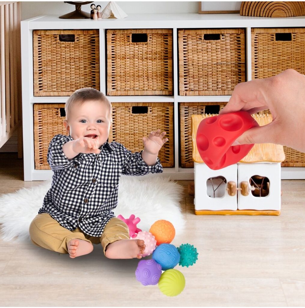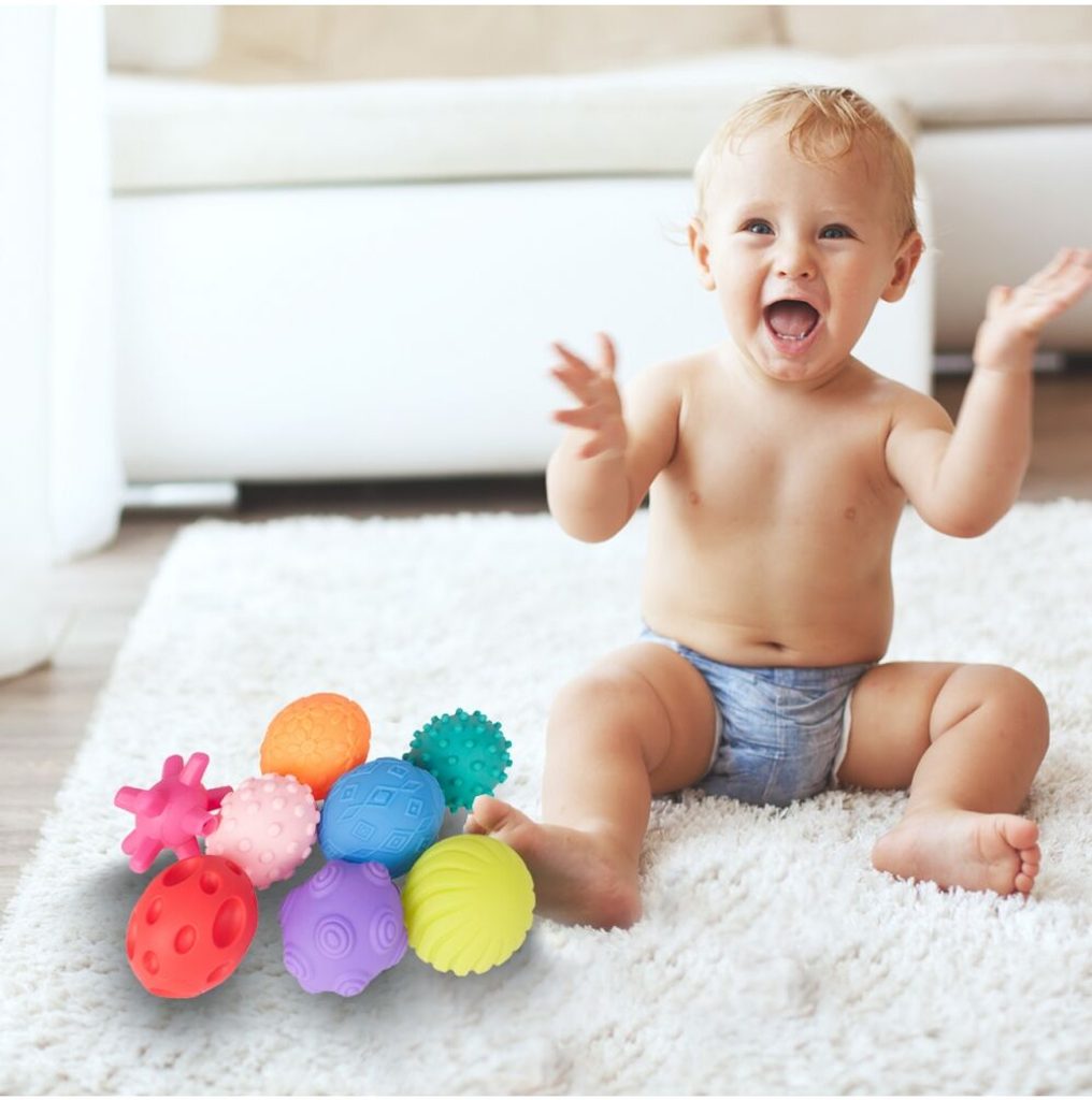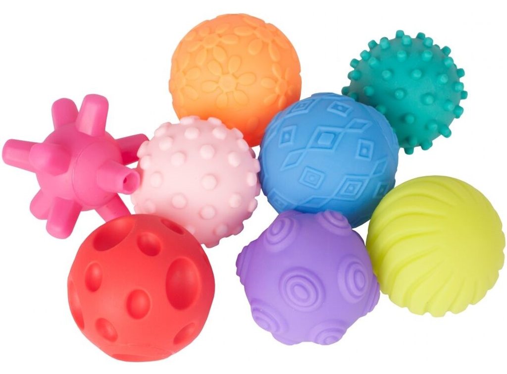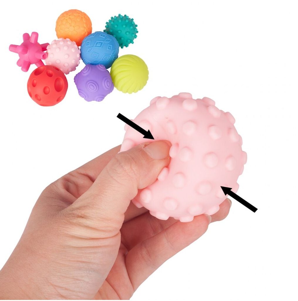 Sada měkkých senzorických míčků Soft Rubber Ball je určena pro ty nejmenší děti. Stimuluje u nich představivost, mysl, zrak a sluch. Zmáčknutím se ozve "skřípot" a navíc tímto dítě posiluje ruce. V sadě najdete celkem 8 míčků v různých barvách vyrobených ze zcela bezpečného materiálu. Povrch míčků má různé textury. Hračka je určena pro děti od 6 měsíců věku.