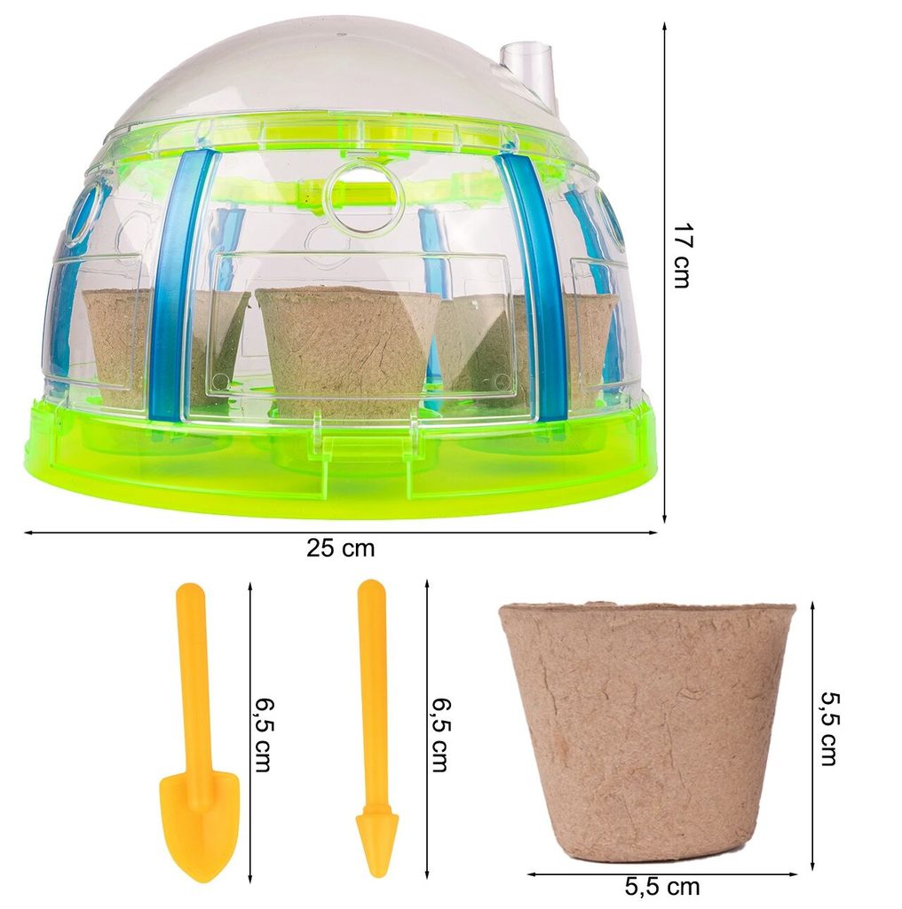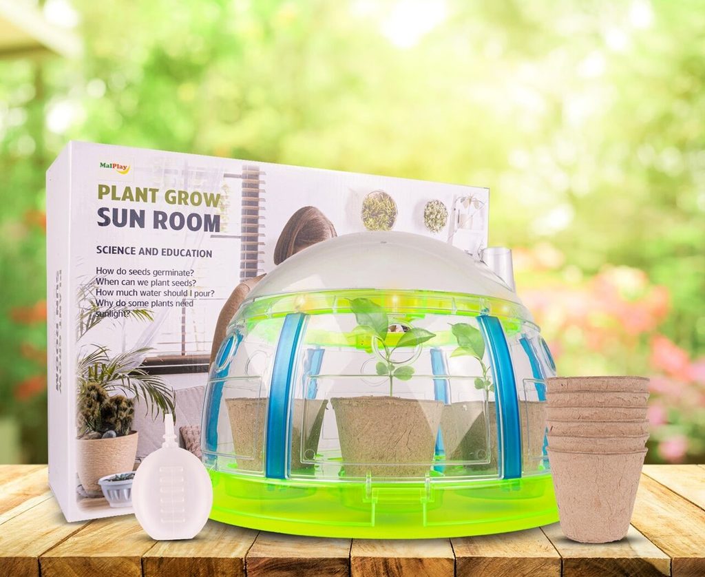 Sestava se skleníkem Sun Room je snem každého malého zahradníka a umožní mu mít celoroční zahradu ve svém pokoji. Tato hračka podněcuje představivost, ale také učí zodpovědnost, péči a empatii. Dítě se naučí sadit, zalévat, pěstovat a zároveň sledovat jak rostlinky postupně rostou. Navíc má skleník osvětlení formou LED řetězu s diodami. Zahrádka bude perfektní hračka jak pro chlapce, tak pro dívku.