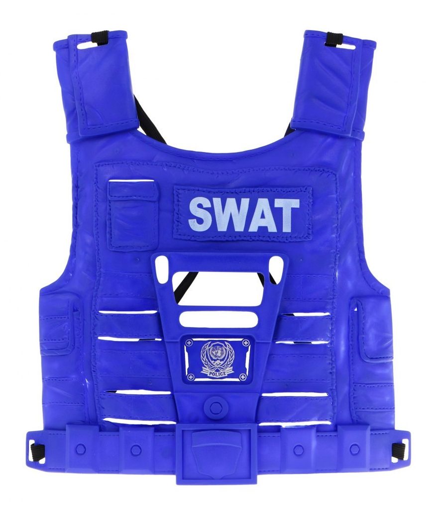 Sestava Malý policista s helmou a kompletním příslušenstvím je ideální hračkou pro každého malého strážce zákona. V sestavě najdete vše co bude potřebovat. Neprůstřelnou vestu, helmu, kulomet, regulovatelné pouta, bezpečný nůž, hodinky, píšťalku, identifikační odznak a také vysílačku na baterie, která vydává zvuky. Hračka je určena pro děti od 36 měsíců věku.