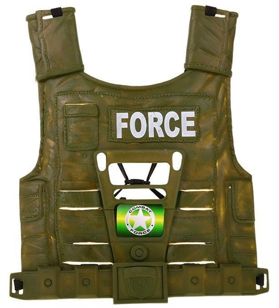 Sestava Malý voják s helmou a kompletním příslušenstvím je ideální hračkou pro každého malého vojáčka. V sestavě najdete vše co bude potřebovat. Neprůstřelnou vestu, helmu, kulomet, láhev, kompas, bezpečný nůž, hodinky, píšťalku, masku, granát, řád za zásluhy a také vysílačku na baterie, která vydává zvuky. Hračka je určena pro děti od 36 měsíců věku