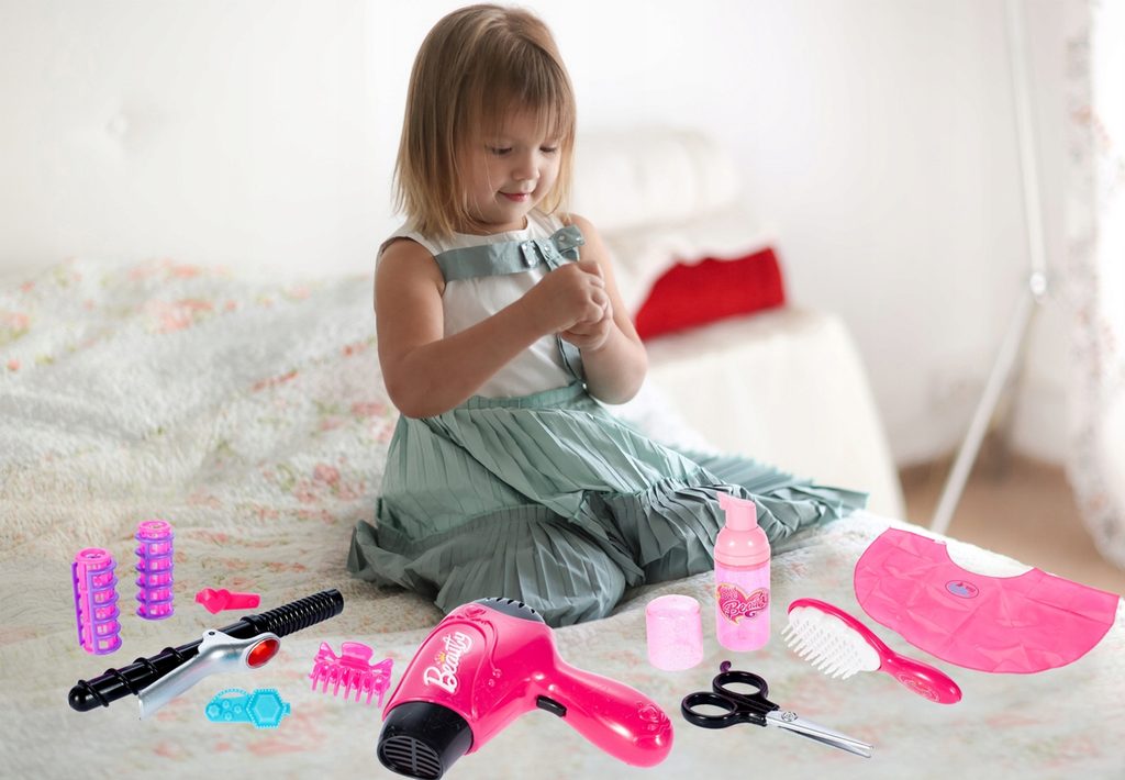 Sestava Malá kadeřnice musí být součástí pokojíčku každé malé princezny. Je vybavena spoustou důležitých věcí pro každou malou kadeřnici. Sada obsahuje fén na baterii, kulmu, nůžky, natáčky, zrcadlo, sponku do vlasů, imitaci laku na vlasy, hřeben a také kadeřnickou zástěru. Hračka je určena pro děti od 36 měsíců věku.