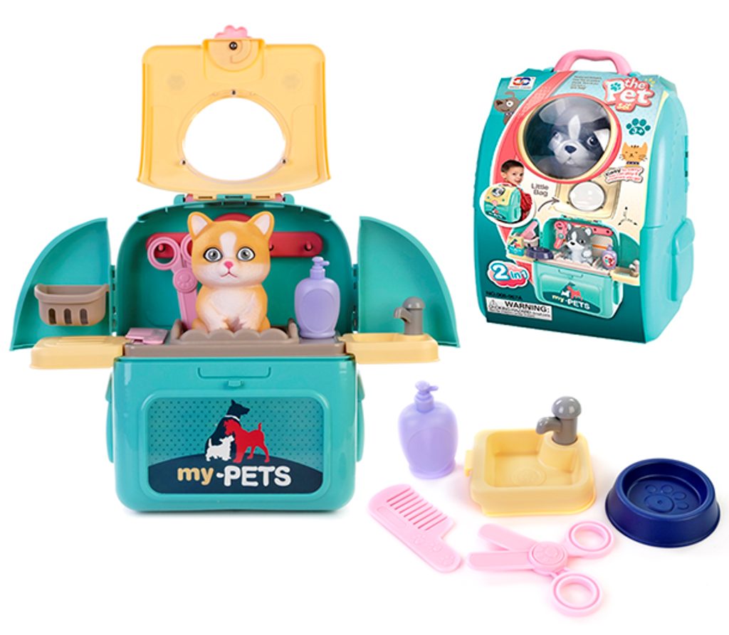 Rozkládací kosmetický salón pro kočičku obsahuje vše potřebné pro péči o své oblíbené zvířátko. Lze ho jednoduše složit a rozložit a díky přiloženým popruhům ho lze jednoduše přenášet. Součástí salónu jsou kromě kočičky také nůžky, hřeben, miska, umyvadlo s baterií a imitace kosmetiky. Hračka je vyrobená z plastu v pestrobarevném provedení a určena pro děti od 3 let.