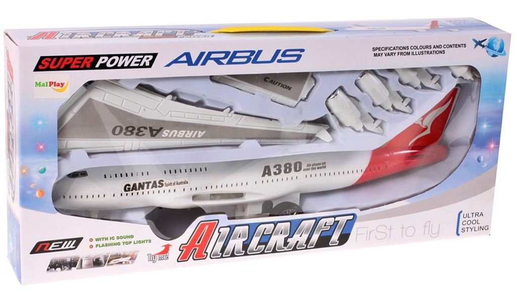 Skládací dopravní letadlo Airbus A380 je ideální hračkou pro rozvoj manuální zručnosti a logického myšlení. Je vybaven tlačítkem, které spouští zvuky motoru a osvětlení. Hračka je určena pro děti od 36 měsíců věku.