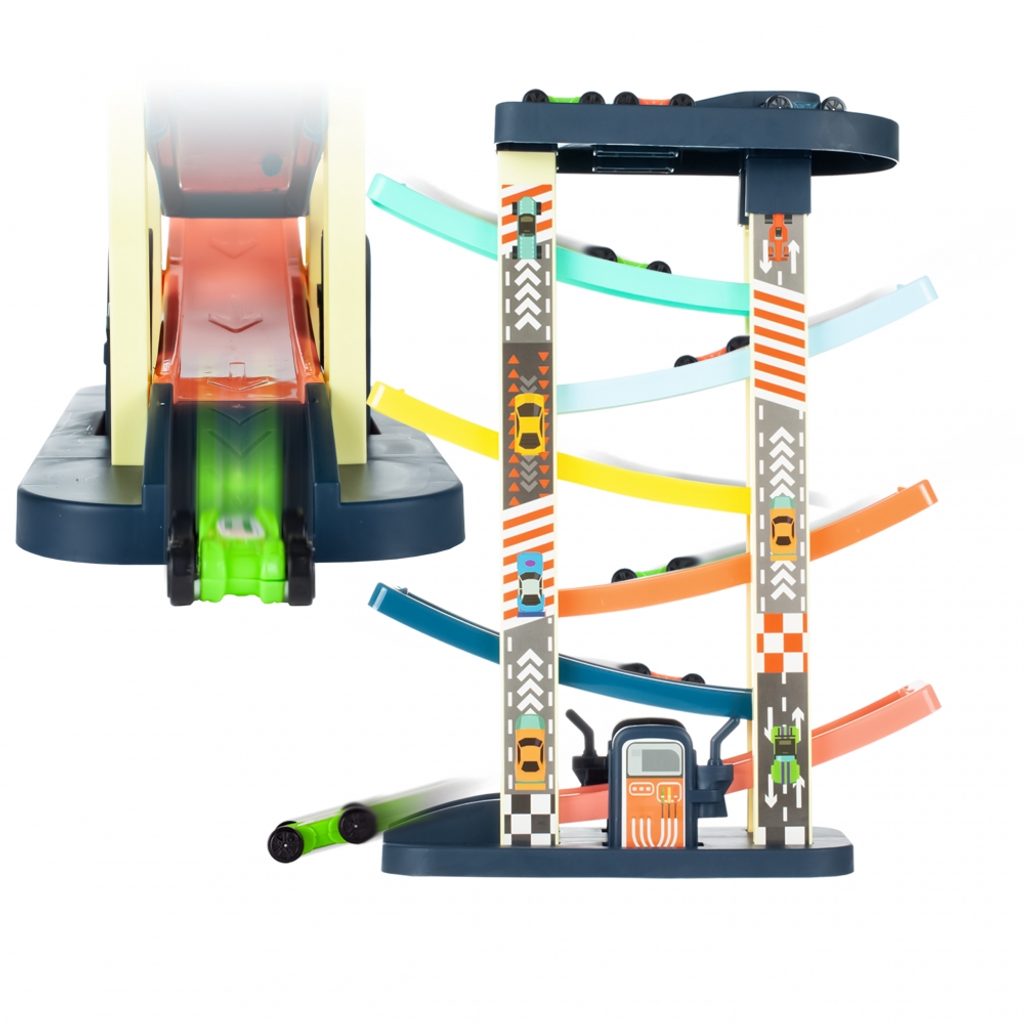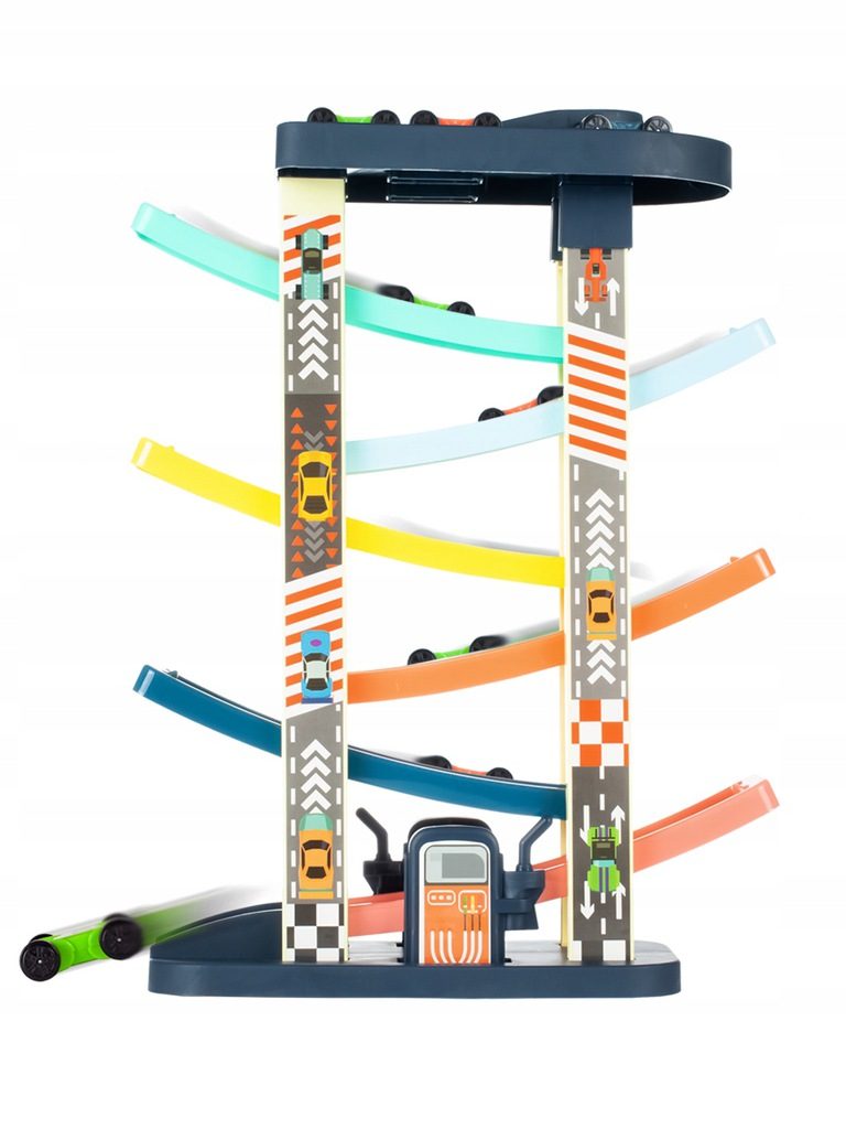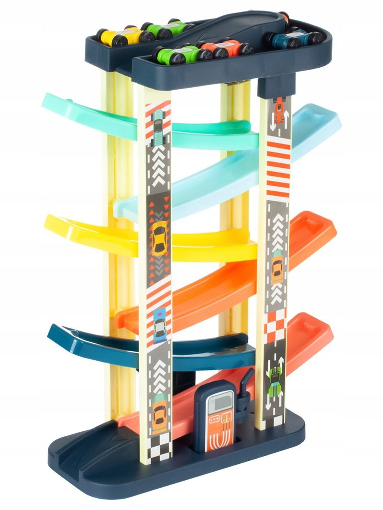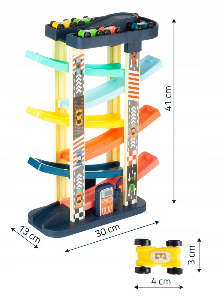 Skluzavka se 6 autíčky Car Ramp je skvělou zábavou pro nejmenší děti. Celkem 6 pater, které jsou propojeny tak, že autíčka, které jsou součástí balení mohou sjet zhora až dolů. Dole jsou umístěny 2 benzínové stojany. Vše je vyrobeno z plastu v pestrobarevném barevném provedení. Hračka je určena pro děti od 36 měsíců věku.