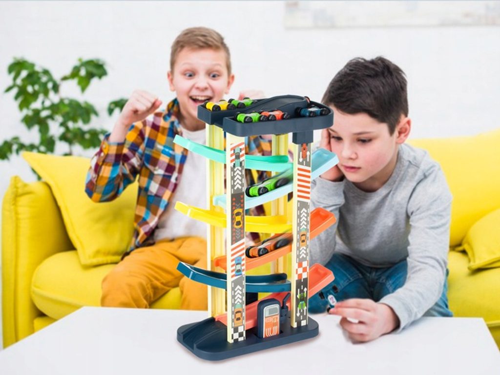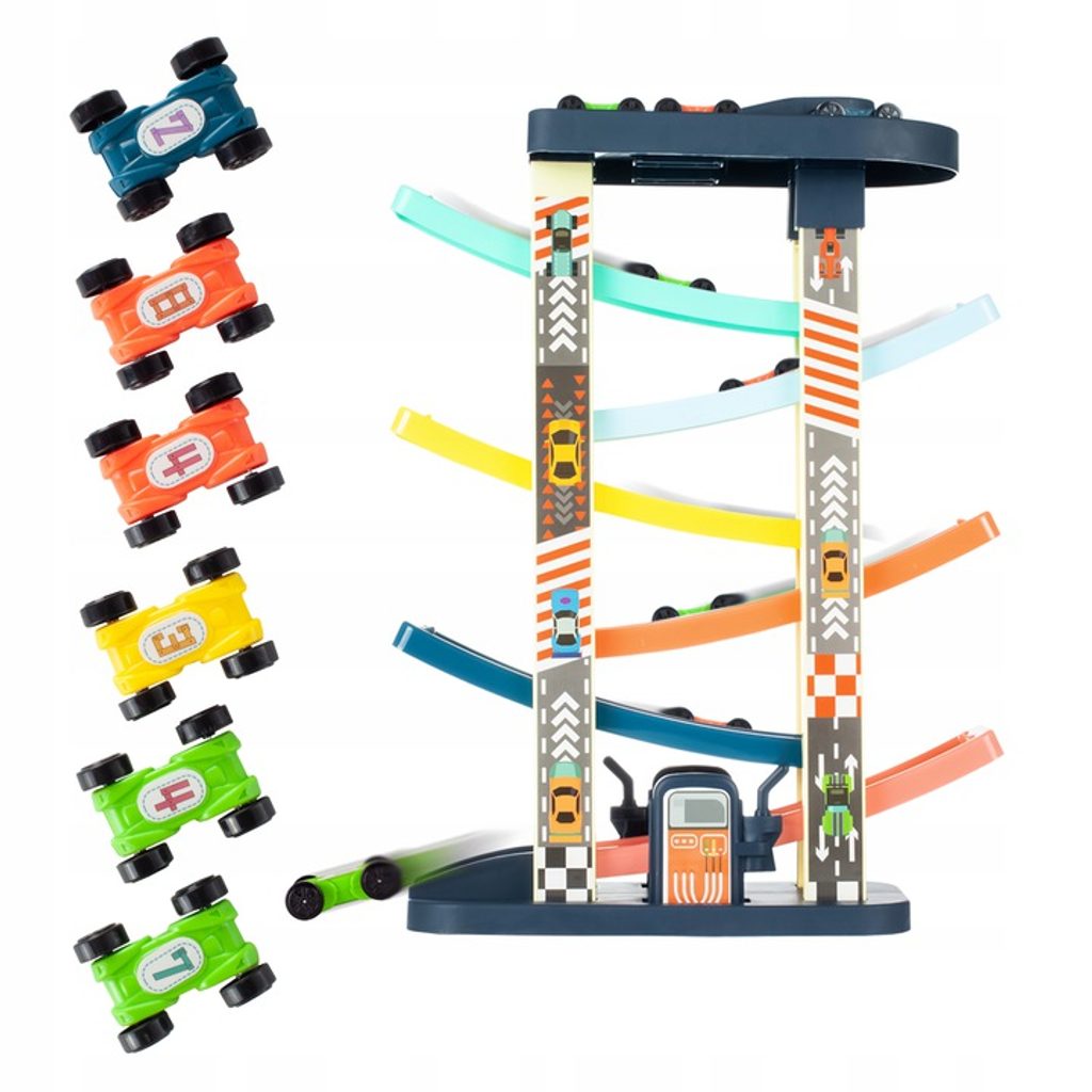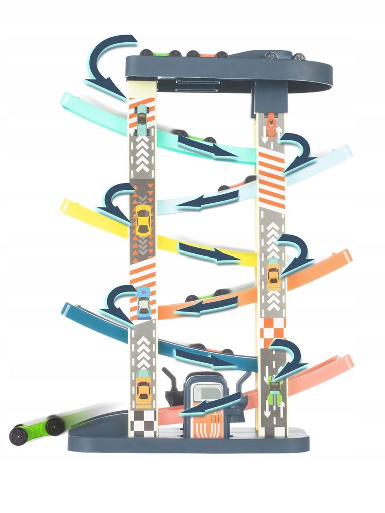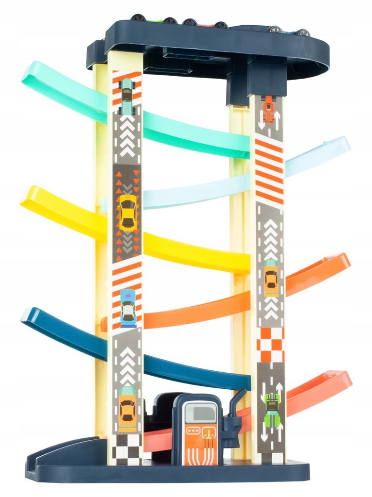 Skluzavka se 6 autíčky Car Ramp je skvělou zábavou pro nejmenší děti. Celkem 6 pater, které jsou propojeny tak, že autíčka, které jsou součástí balení mohou sjet zhora až dolů. Dole jsou umístěny 2 benzínové stojany. Vše je vyrobeno z plastu v pestrobarevném barevném provedení. Hračka je určena pro děti od 36 měsíců věku.