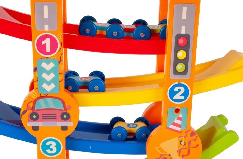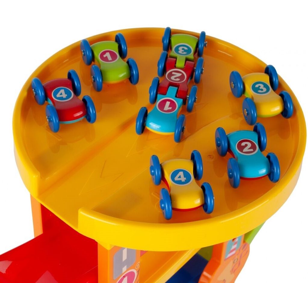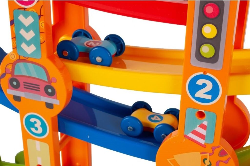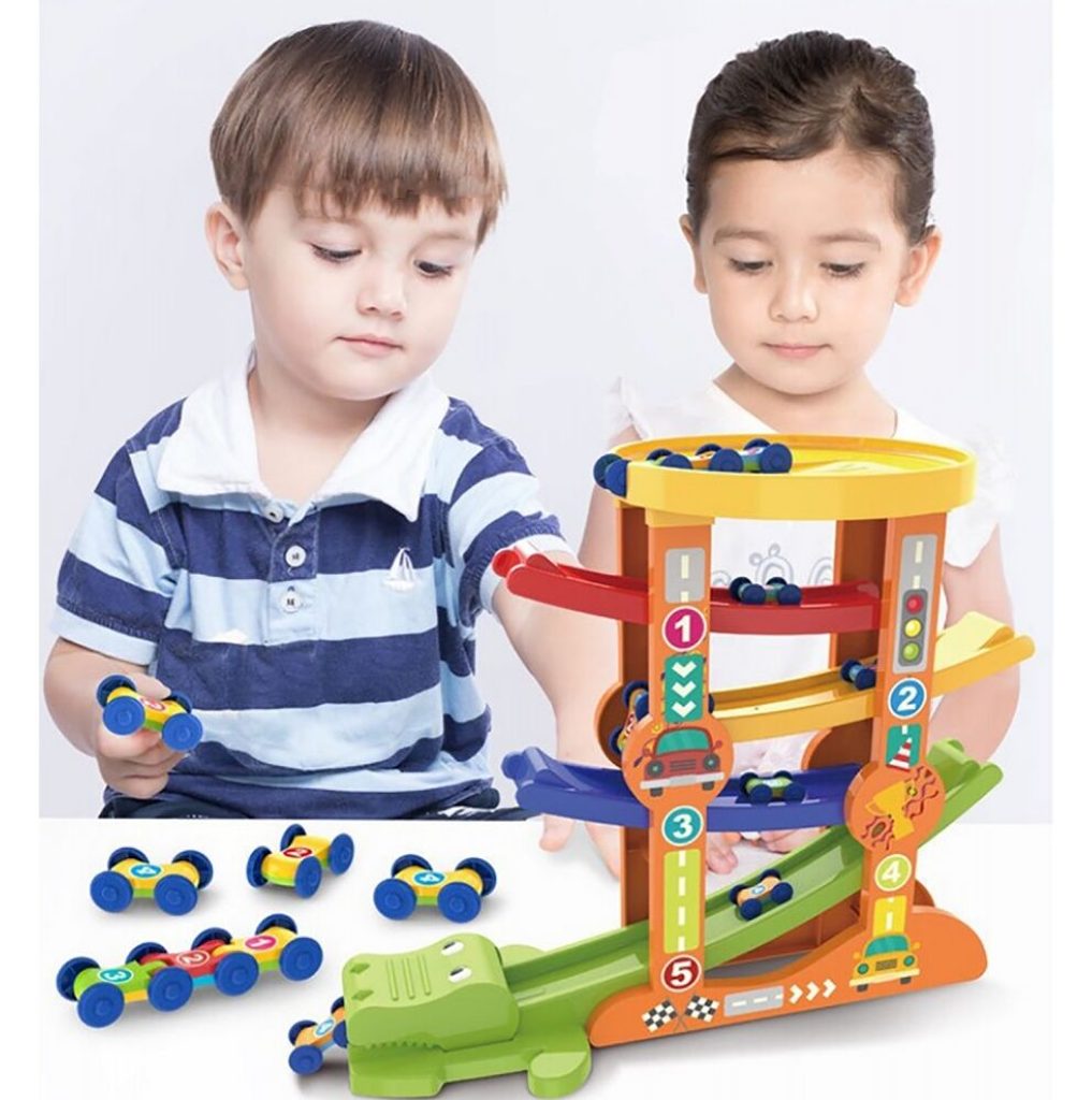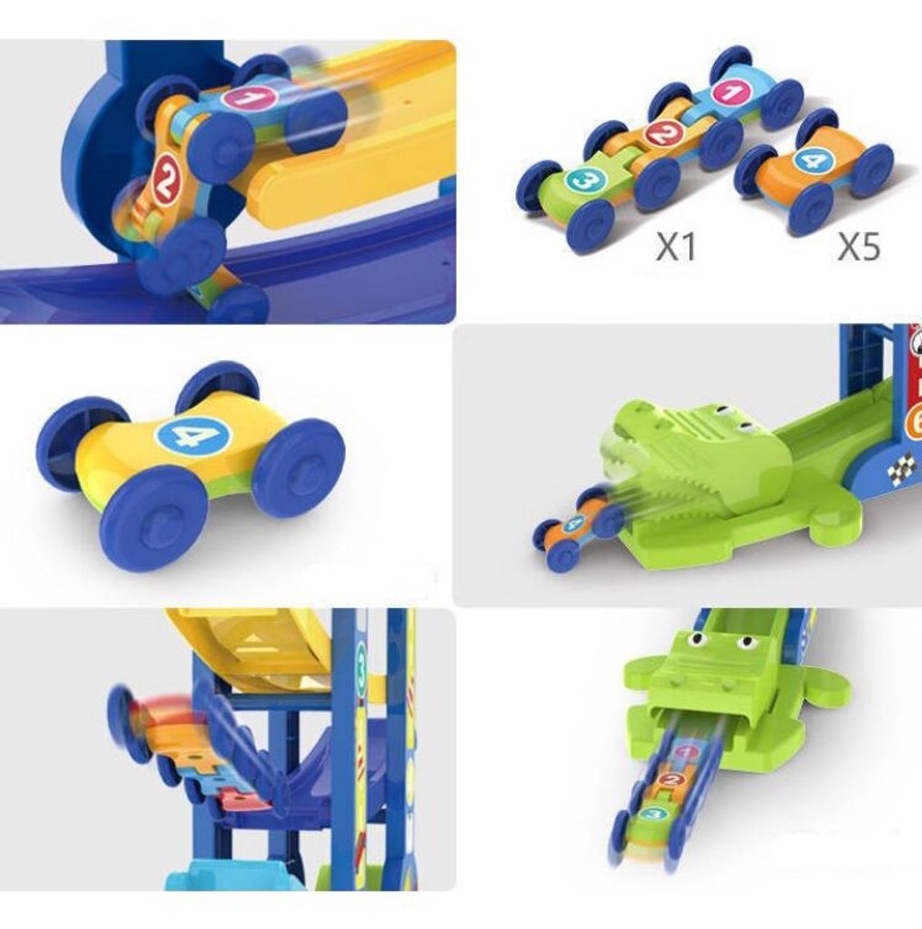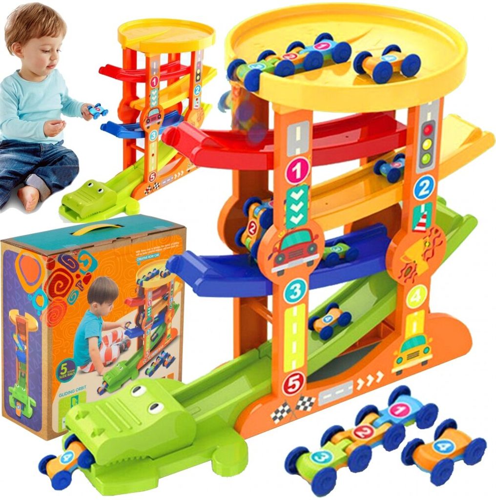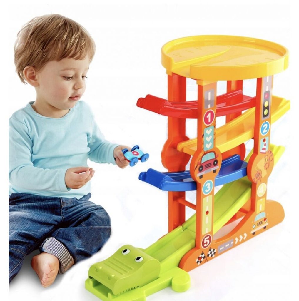 Skluzavka se 6 autíčky Krokodýl je skvělou zábavou pro nejmenší děti. Celkem 5 pater, které jsou propojeny tak, že autíčka, které jsou součástí balení mohou sjet zhora až dolů. Dole je umístěna hlava krokodýla, kterou autíčka vyjíždějí. Vše je vyrobeno z plastu v pestrobarevném barevném provedení. Hračka je určena pro děti od 36 měsíců věku.
