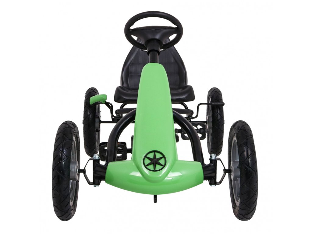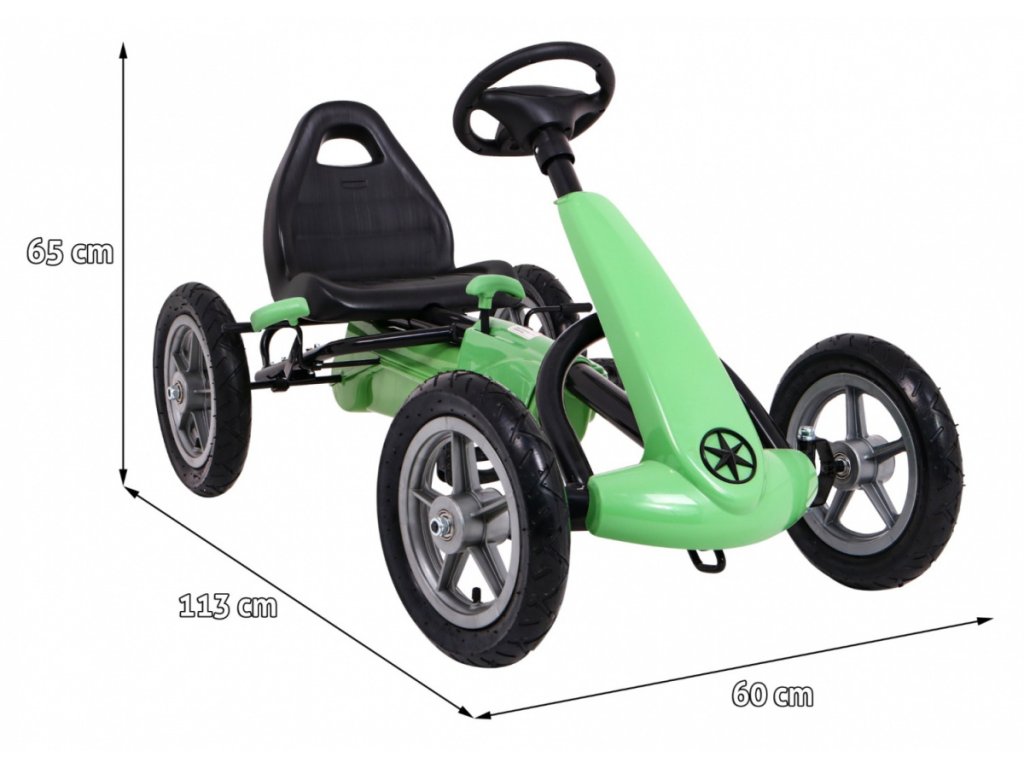 Dětská šlapací motokára Formule Star s velkými nafukovacími koly o průměru 30 cm je určena pro děti od 5 let a hmotnosti 50 kg. Pohon zajištuje řetěz, který je zabezpečen ochranným krytem. Pohodlné sedadlo lze posouvat směrem k volantu ve třech polohách. Motokára je vybavena ruční brzdou. Šlapátka mají na povrchu protiskluzovou úpravu. Motokára umožňuje jízdu vpřed, vzad a volnoběh. Rám motokáry je vyroben z kvalitního kovu.