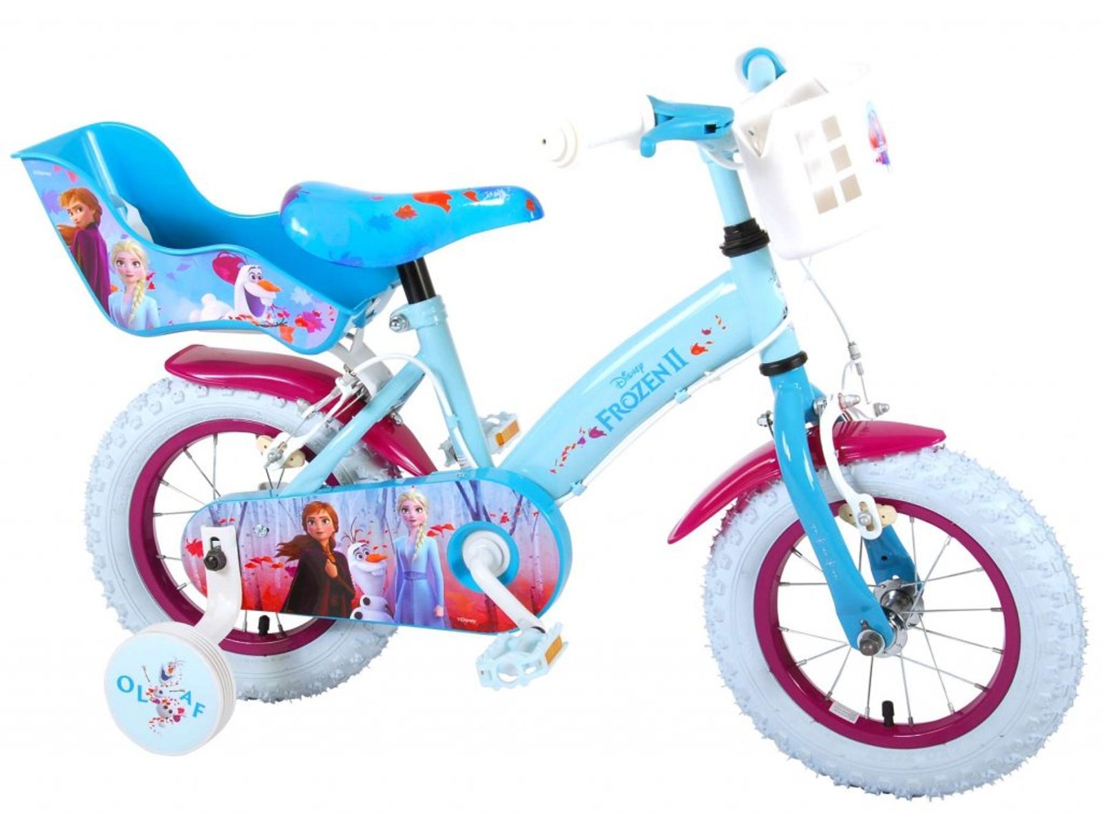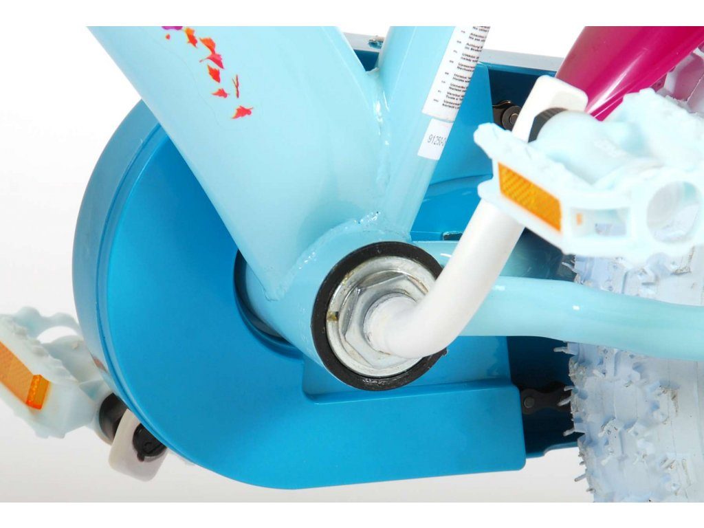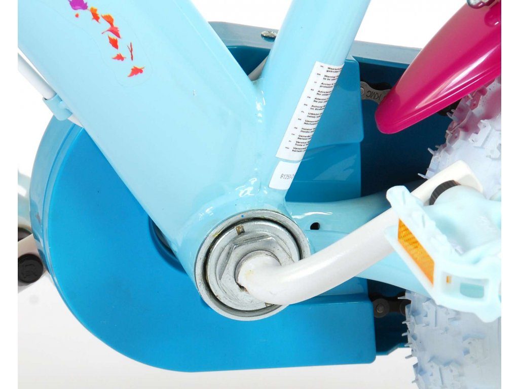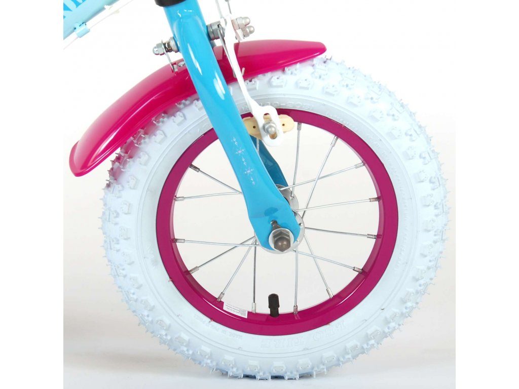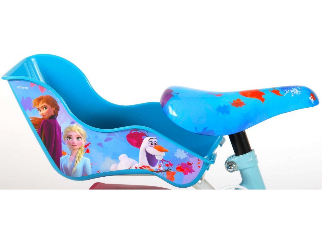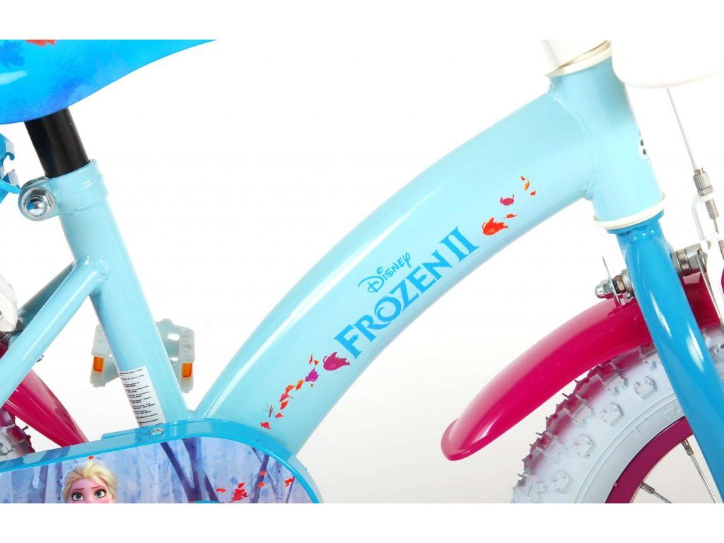 Originální dětské kolo od holandského výrobce Volare Frozen II (licence Disney) s velikostí ráfků 12 palců je určeno pro nejmenší děti ve věku od 3 do 4,5 let s výškou do 95 cm. Kolo je opatřeno demontovatelnými balančními kolečky, dítě se tedy bude cítit hned od první jízdy bezpečně a stabilně. Kolo je vybaveno 2 druhy brzd. Brždění probíhá buď protisměrnou zadní brzdou "torpédem",která možnuje brzdit zpětným záběrem pedálů nebo lze použít přední pákovou brzdu. Proti nechtěnému namotání nohavice nebo tkaničky do řetězu má kolo kryt s obrázky, který zakrývá celý řetěz. Sedadlo i řídítka jsou výškově nastavitelné. V zadní části je umístěný nosič na panenky a v přední části je košík na hračky.