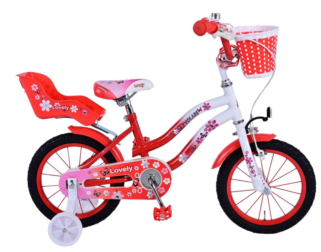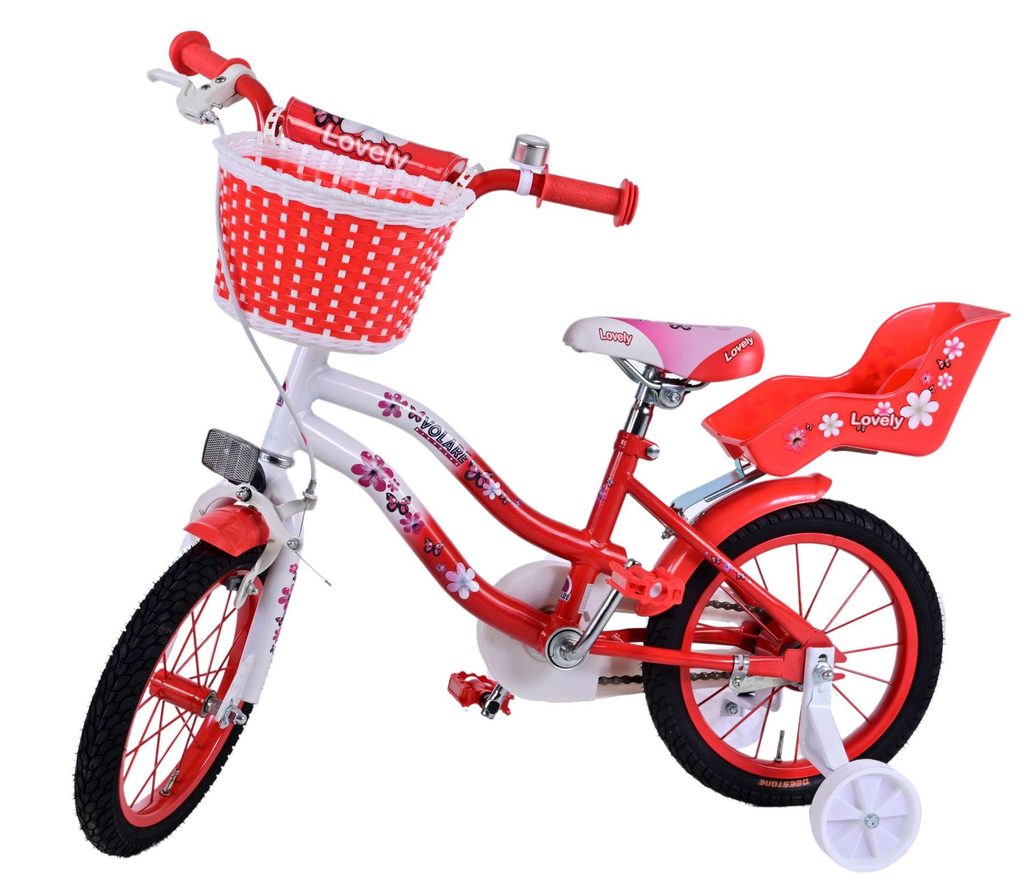 Originální dětské kolo od holandského výrobce Volare Lovely s velikostí ráfků 14 palců je určeno pro děti ve věku od 3,5 do 5 let s výškou do 100 cm. Kolo je opatřeno demontovatelnými balančními kolečky, dítě se tedy bude cítit hned od první jízdy bezpečně a stabilně. Kolo je vybaveno 2 druhy brzd. Brždění probíhá buď protisměrnou zadní brzdou "torpédem", která umožnuje brzdit zpětným záběrem pedálů nebo lze použít přední pákovou brzdu. Proti nechtěnému namotání nohavice nebo tkaničky do řetězu má kolo kryt s barevným potiskem, který zakrývá celý řetěz. Sedadlo i řídítka jsou výškově nastavitelné. Na řídítkách je umístěn plastový košíček. V zadní části je připevněný nosič na panenku.