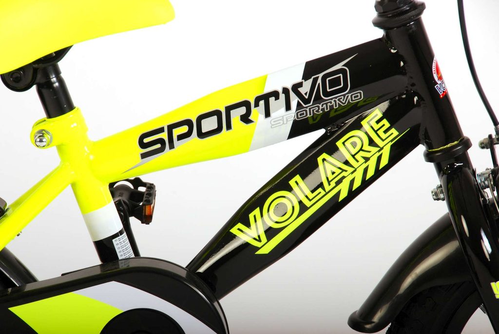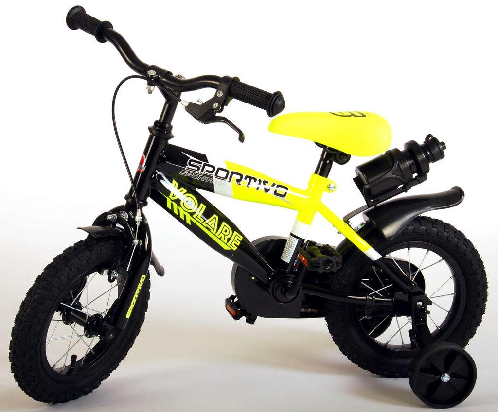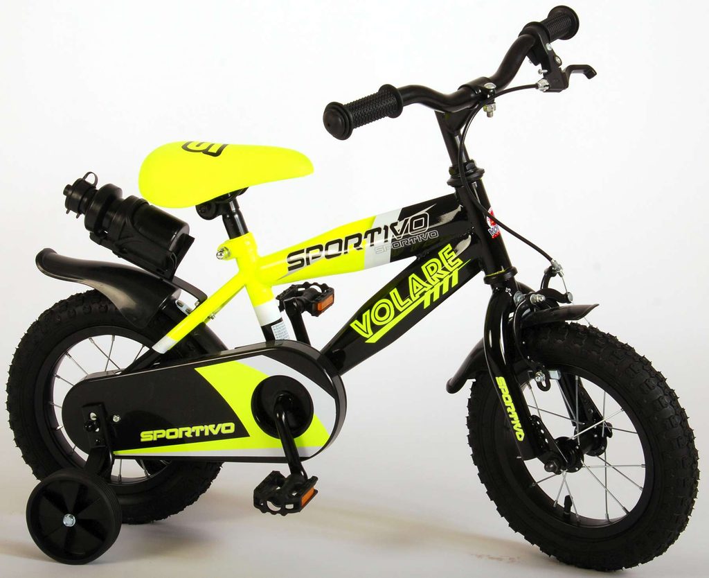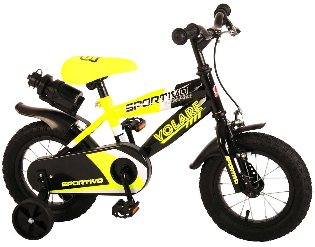 Originální dětské kolo od holandského výrobce Volare Sportivo Yellow s velikostí ráfků 12 palců je určeno pro nejmenší děti ve věku od 3 do 4,5 let s výškou do 95 cm. Kolo je opatřeno demontovatelnými balančními kolečky, dítě se tedy bude cítit hned od první jízdy bezpečně a stabilně. Kolo je vybaveno 2 druhy brzd. Brždění probíhá buď protisměrnou zadní brzdou "torpédem", která umožnuje brzdit zpětným záběrem pedálů nebo lze použít přední pákovou brzdu. Proti nechtěnému namotání nohavice nebo tkaničky do řetězu má kolo kryt s barevným potiskem, který zakrývá celý řetěz. Sedadlo i řídítka jsou výškově nastavitelné. Za sedadlem je umístěný nosič s lahví na pití.
