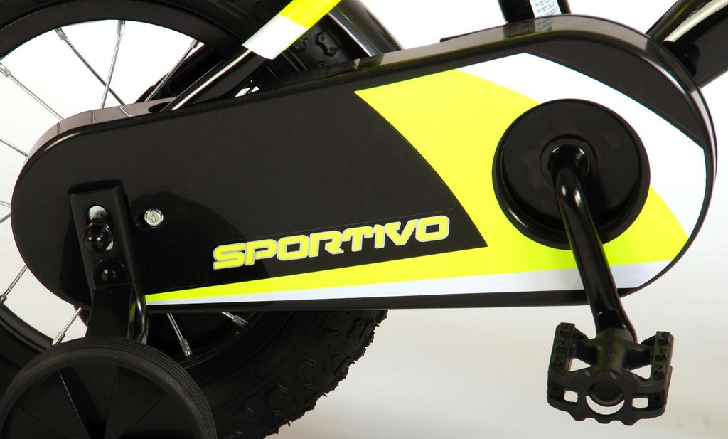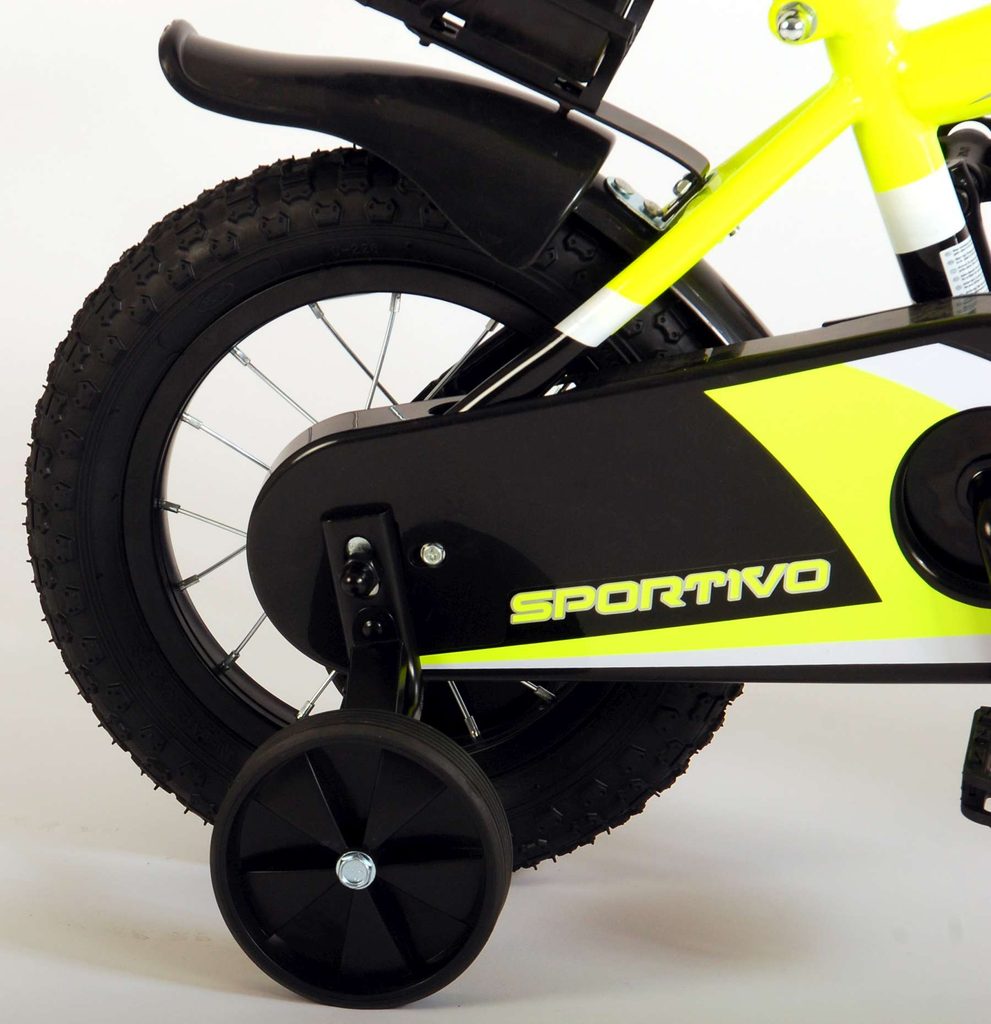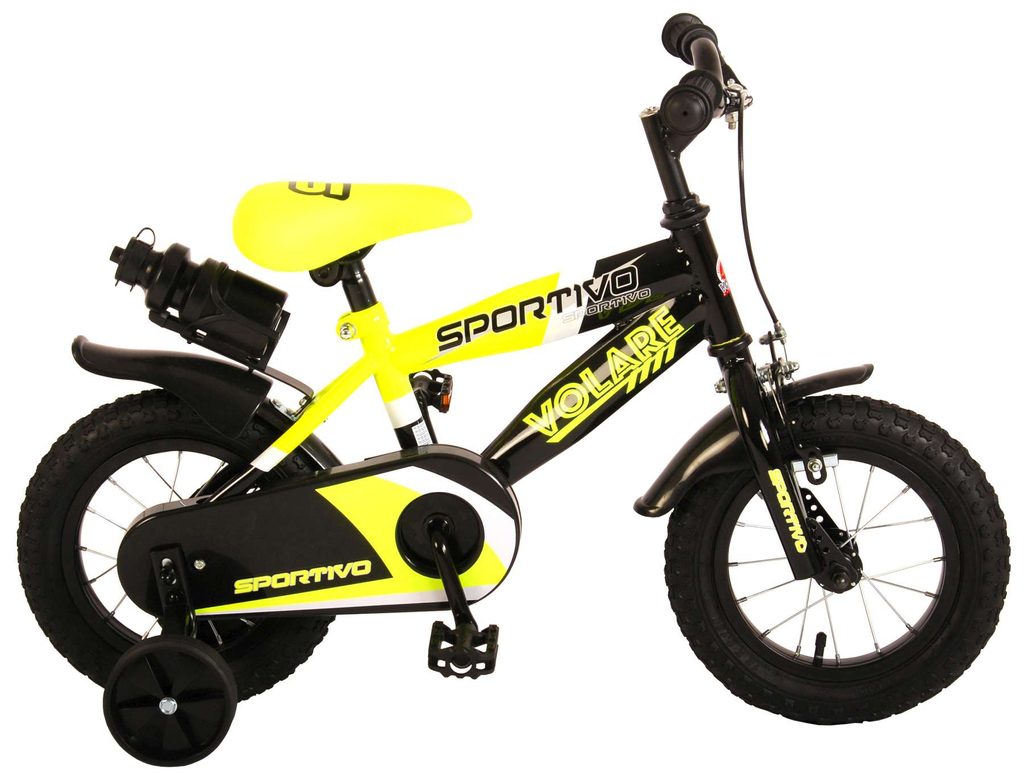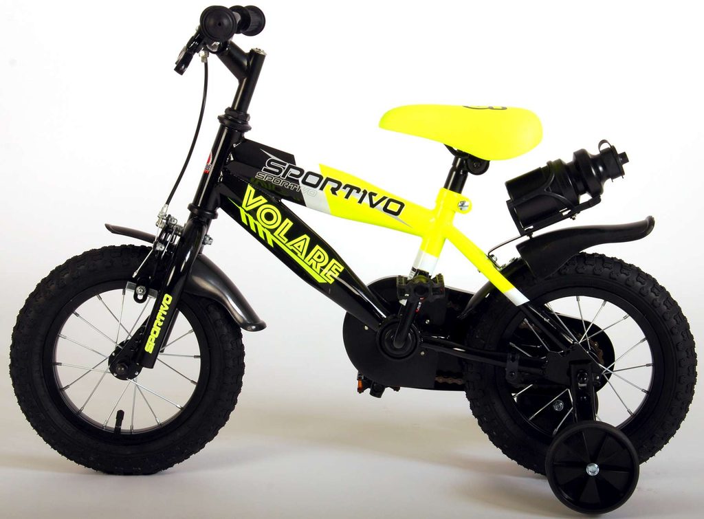 Originální dětské kolo od holandského výrobce Volare Sportivo Yellow s velikostí ráfků 12 palců je určeno pro nejmenší děti ve věku od 3 do 4,5 let s výškou do 95 cm. Kolo je opatřeno demontovatelnými balančními kolečky, dítě se tedy bude cítit hned od první jízdy bezpečně a stabilně. Kolo je vybaveno 2 druhy brzd. Brždění probíhá buď protisměrnou zadní brzdou "torpédem", která umožnuje brzdit zpětným záběrem pedálů nebo lze použít přední pákovou brzdu. Proti nechtěnému namotání nohavice nebo tkaničky do řetězu má kolo kryt s barevným potiskem, který zakrývá celý řetěz. Sedadlo i řídítka jsou výškově nastavitelné. Za sedadlem je umístěný nosič s lahví na pití.
