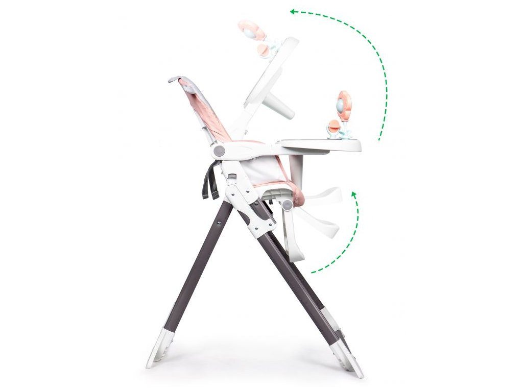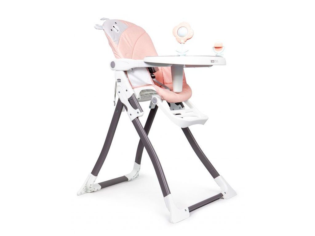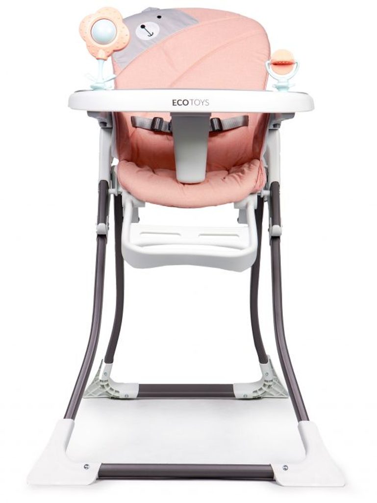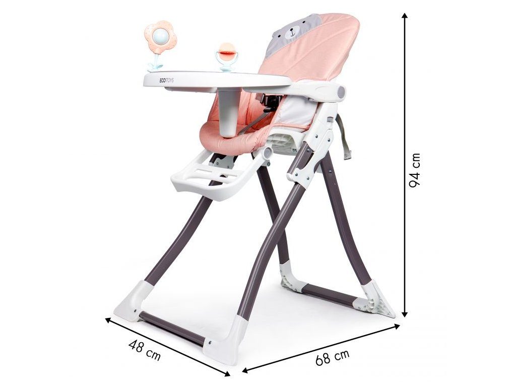 Jídelní židlička Ecotoys se stolečkem 2v1 a zabudovanými hračkami. Pomocí jednoho tlačítka ji lze velmi jednoduše složit a rozložit, což oceníte zejména při cestách. Jídelní tác má zvýšené okraje, lze ho odejmout a nastavit ve třech polohách dle věku dítěte. Je rozdělený na 2 části, kdy jedna slouží pro zábavu a druhá pro stravování. Praktické polstrování je vyrobeno s nesavého materiálu, lze ho snadno udržovat, čistit a prát v pračce. Na ochranu dítěte před vypadnutím je židlička vybavena 3 bodovými bezpečnostními pásy a pod jídelním tácem je umístěna blokace proti sesunutí dítěte. Na koncích noh jsou koncovky s protiskluzovou úpravou.