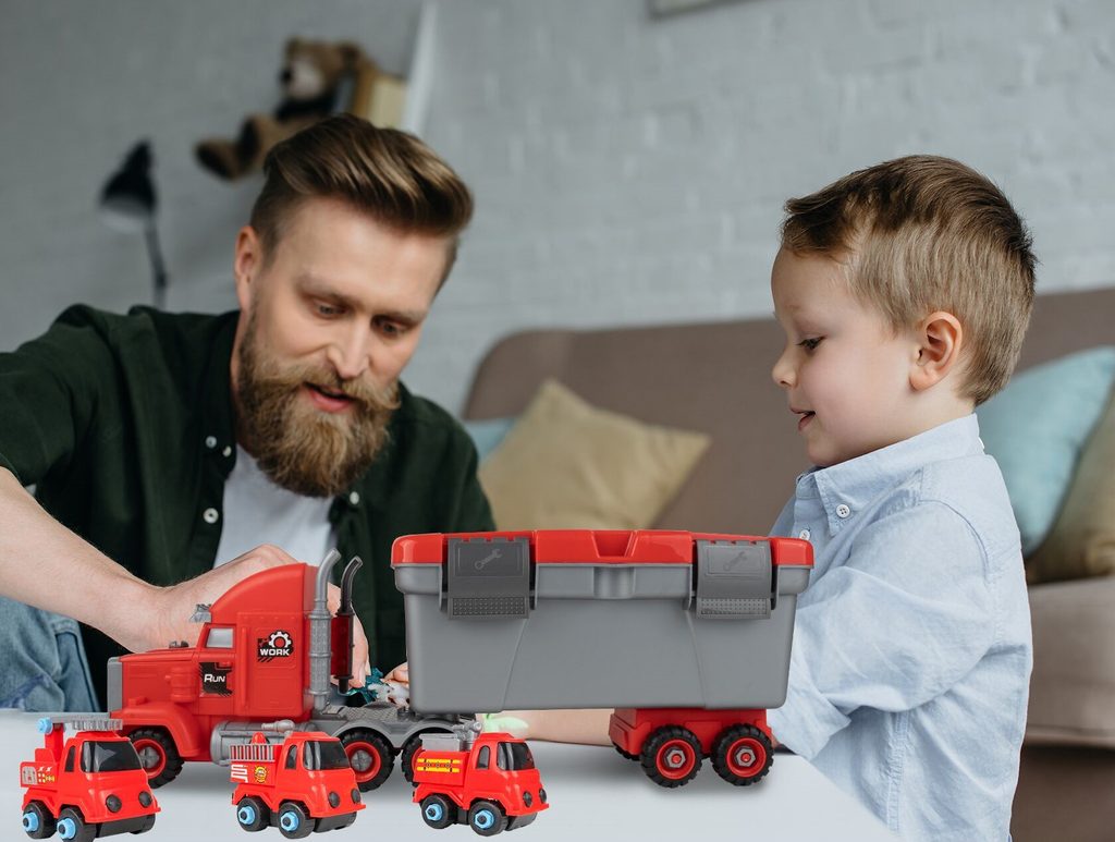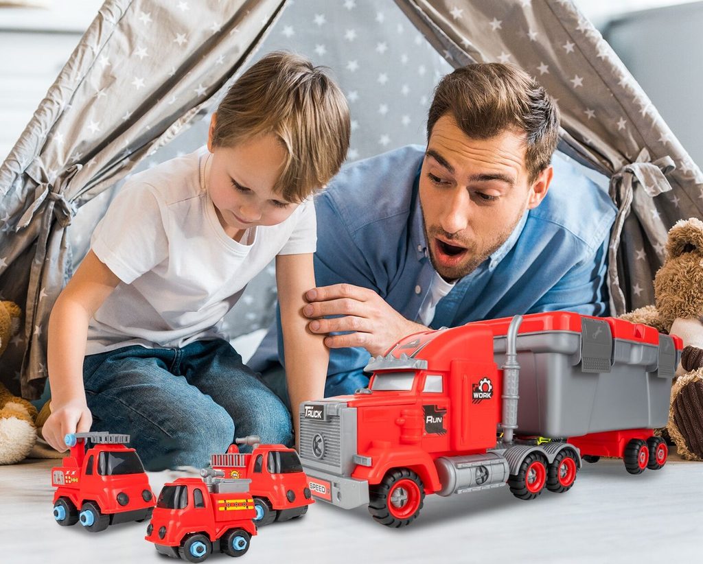 Šroubovací nákladní autíčko Fire Control je ideální hračkou pro rozvoj manuální zručnosti a logického myšlení. Lze ho rozebrat na jednotlivé díly a šrouby a poté zase složit pomocí přiloženého šroubováku a klíče. Jako korba slouží odnímatelný kufřík s úchytem, ve kterém jsou uloženy další tři malá šroubovací autíčka v požárním provedení. Zábava je tak nekonečná. Hračka je určena pro děti od 36 měsíců věku.