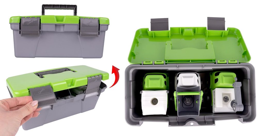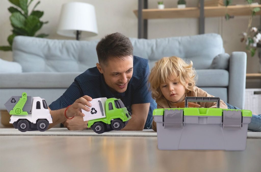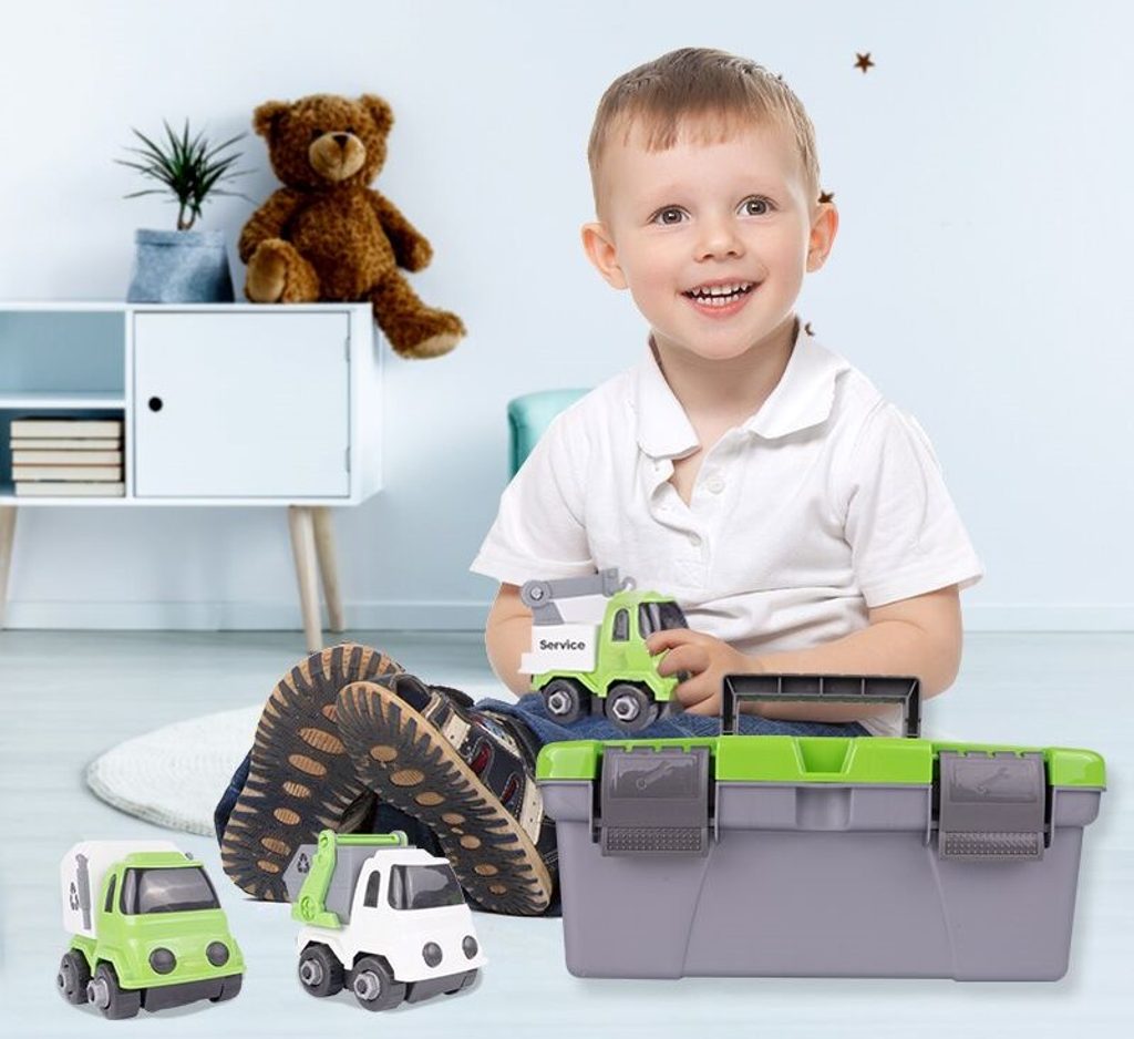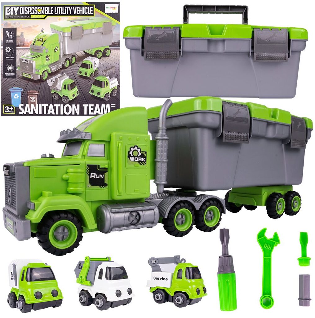 Šroubovací nákladní autíčko Sanitation Control je ideální hračkou pro rozvoj manuální zručnosti a logického myšlení. Lze ho rozebrat na jednotlivé díly a šrouby a poté zase složit pomocí přiloženého šroubováku a klíče. Jako korba slouží odnímatelný kufřík s úchytem, ve kterém jsou uloženy další tři malá šroubovací autíčka v popelářském provedení. Zábava je tak nekonečná. Hračka je určena pro děti od 36 měsíců věku.