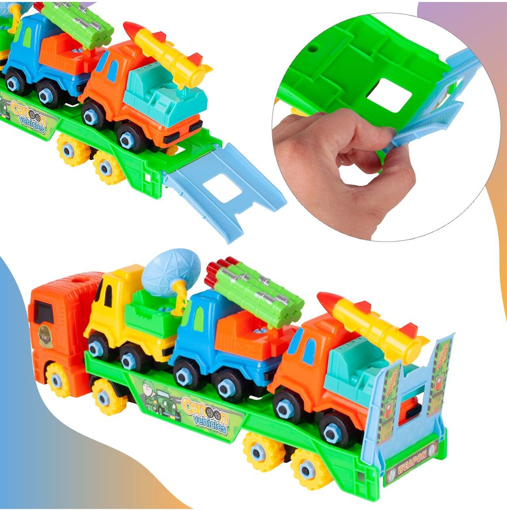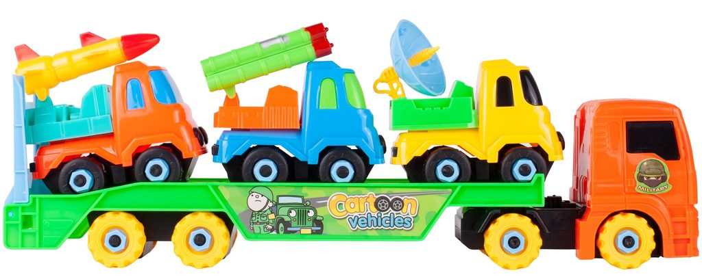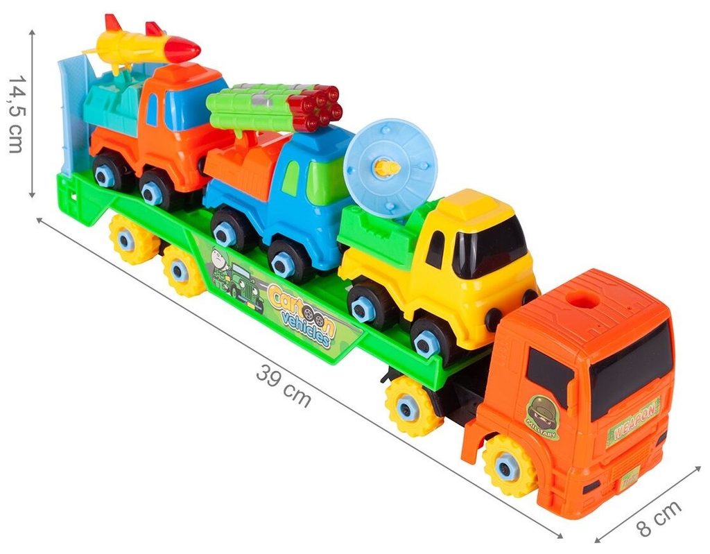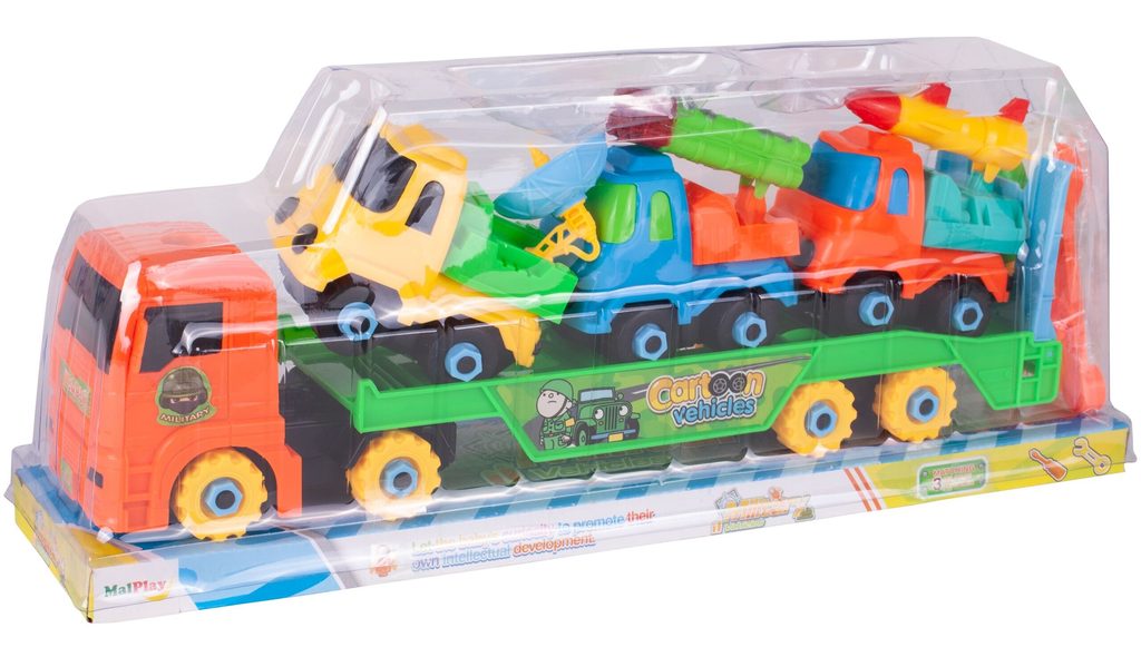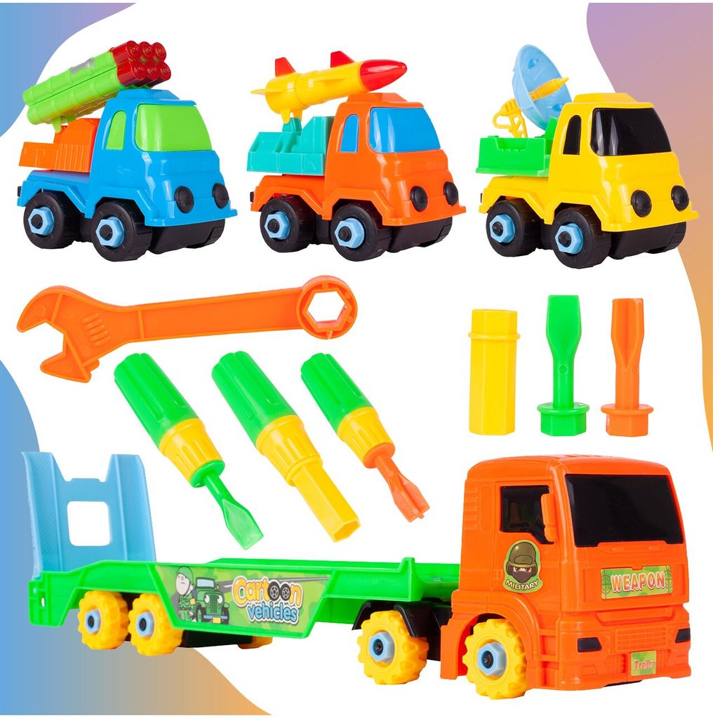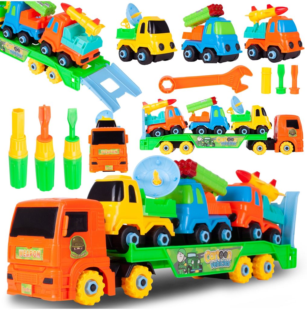 Šroubovací nákladní auto je ideální hračkou pro rozvoj manuální zručnosti a logického myšlení. Sada obsahuje kromě tahače také tři vojenské autíčka s příslušenstvím. Vše lze rozebrat a poté zase složit pomocí přiložených šroubováků a francouzského klíče. Hračka je určena pro děti od 36 měsíců věku.D