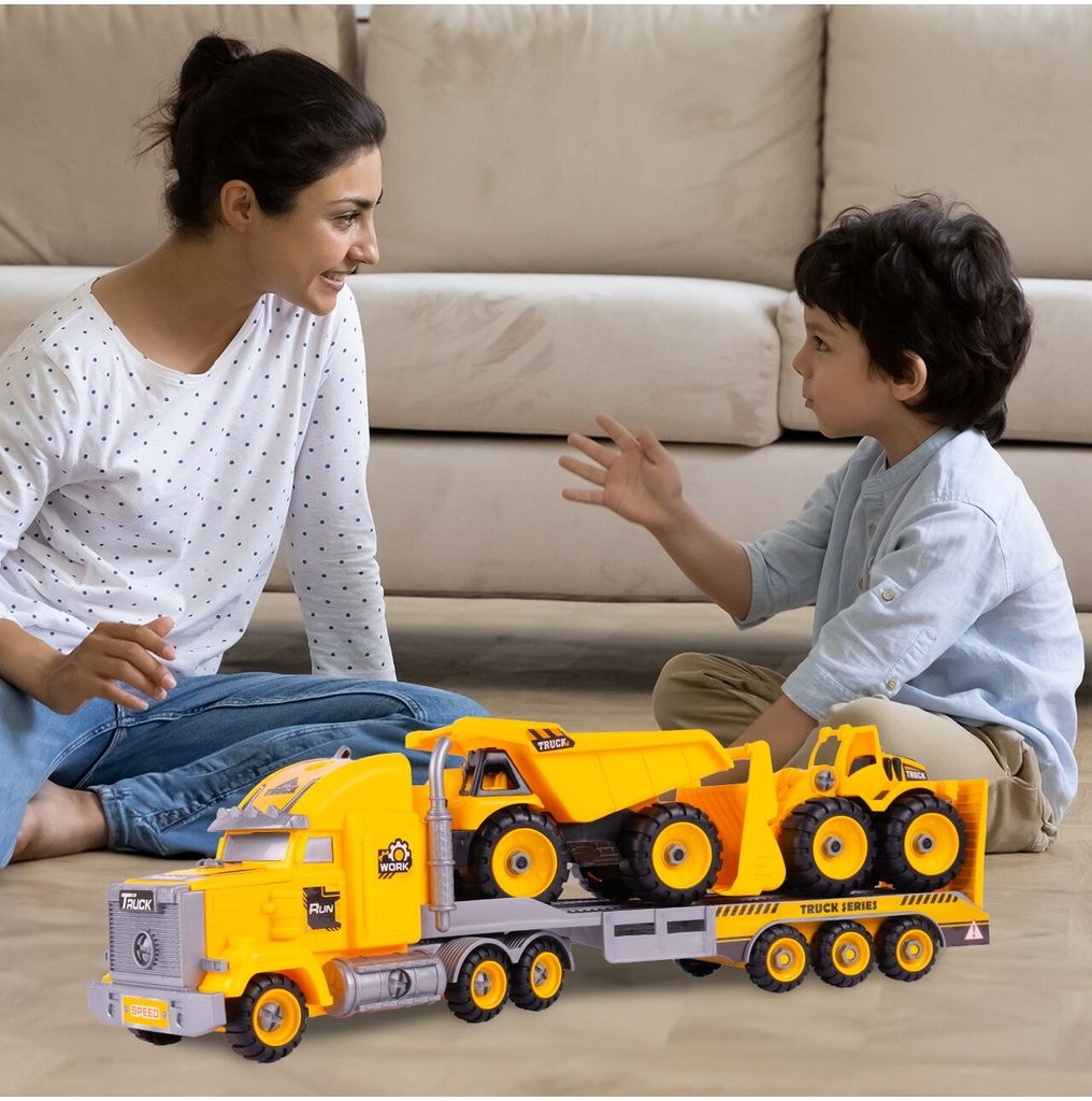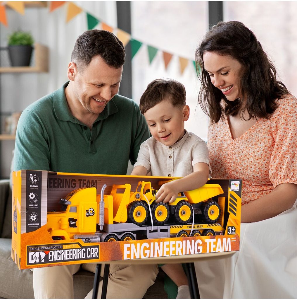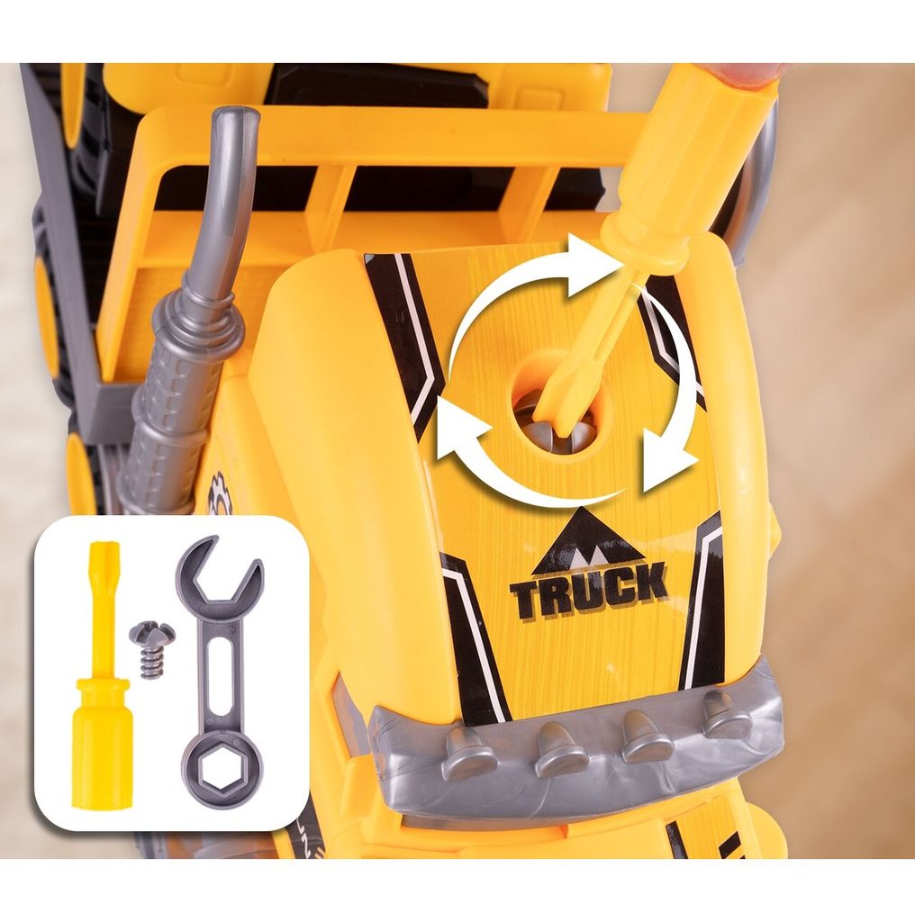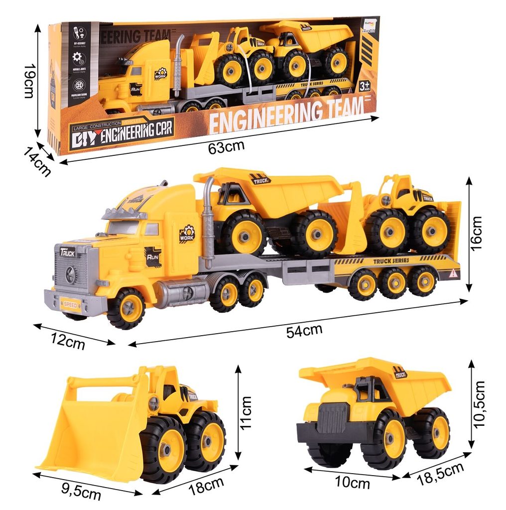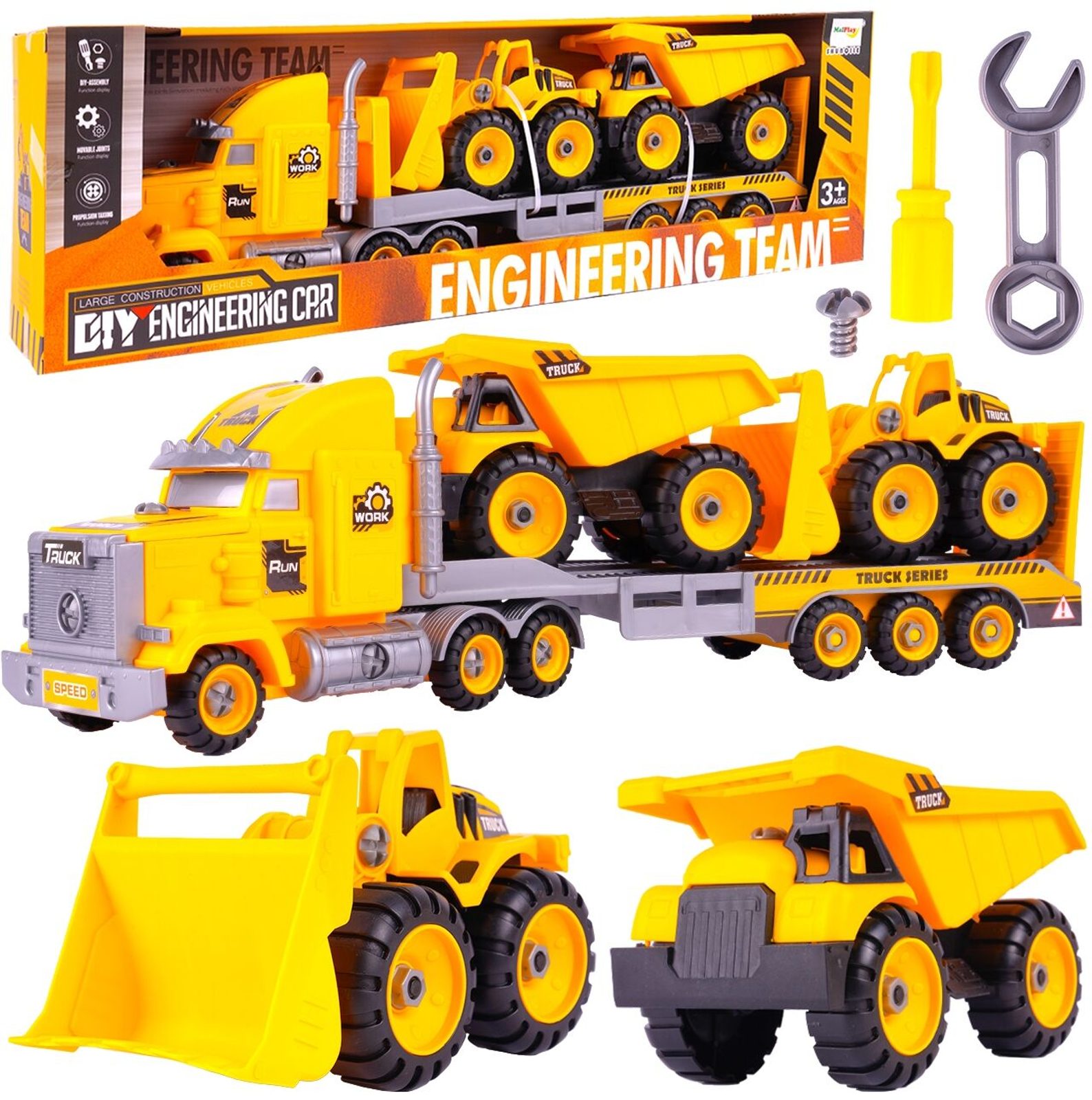 Velké šroubovací nákladní auto je ideální hračkou pro rozvoj manuální zručnosti a logického myšlení. Sada obsahuje kromě tahače také nákladní autíčko se sklopnou korbou a bagr se zvedací lžící. Vše lze rozebrat a poté zase složit pomocí přiloženého šroubováku a francouzského klíče. Hračka je určena pro děti od 36 měsíců věku.