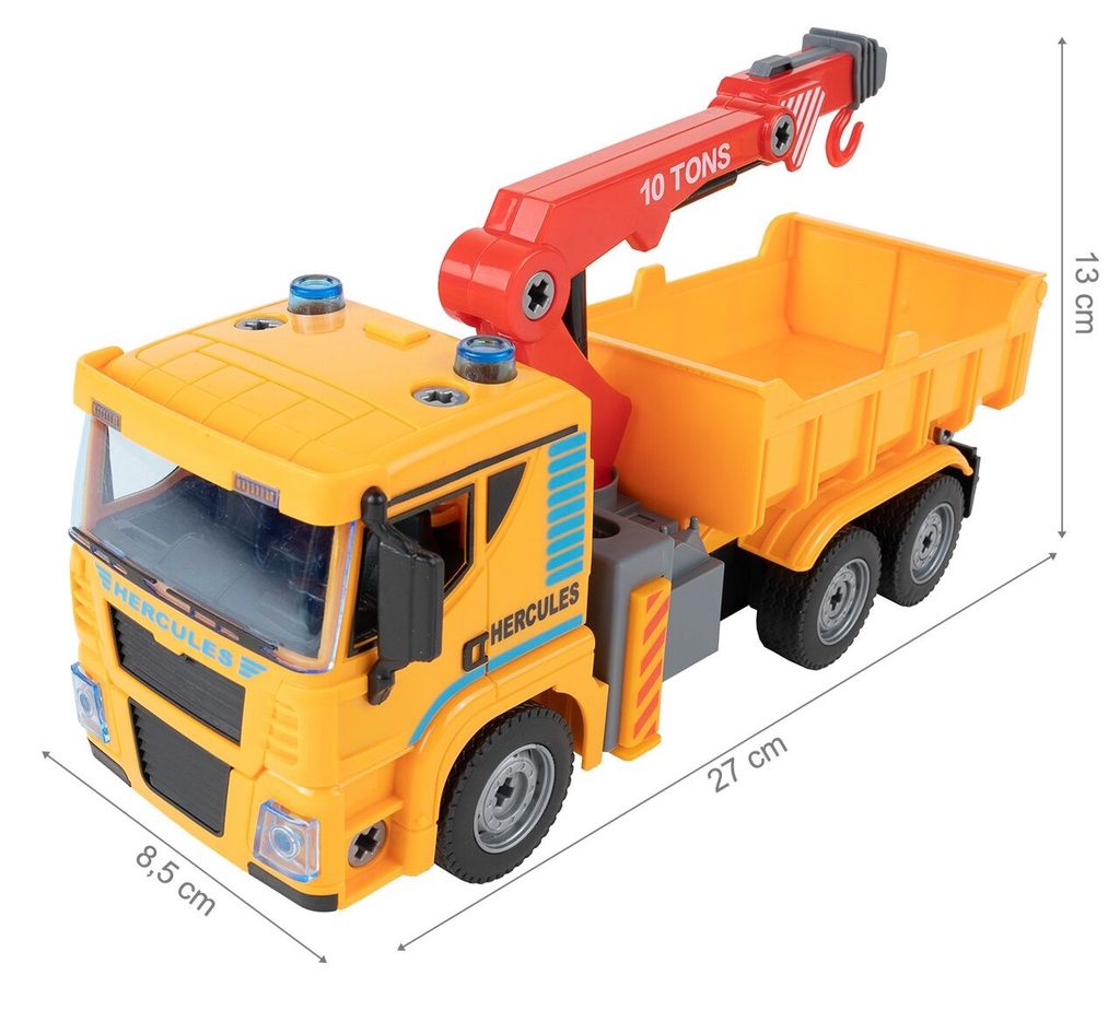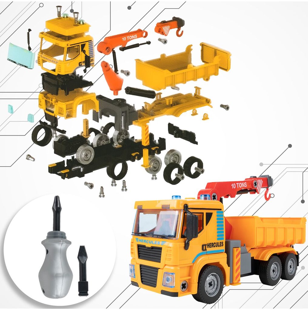 Šroubovací nákladní auto Hercules Truck je ideální hračkou pro rozvoj manuální zručnosti a logického myšlení. Lze ho kompletně rozebrat na jednotlivé díly a šrouby a poté zase složit pomocí přiloženého šroubováku se dvěma nástavci. Navíc je autíčko vybaveno světelnými a zvukovými efekty Celkem se sada skládá z 104 součástí. Zábava je tak nekonečná. Hračka je určena pro děti od 36 měsíců věku.