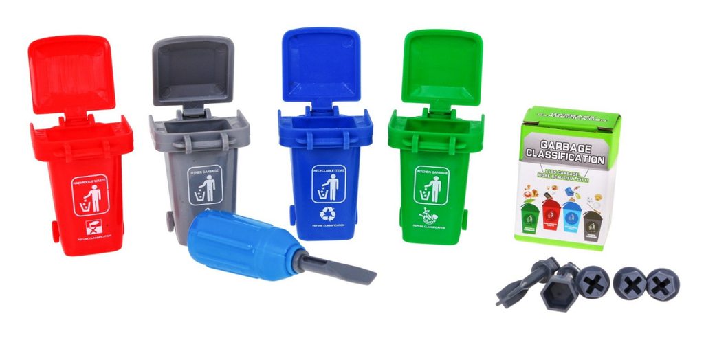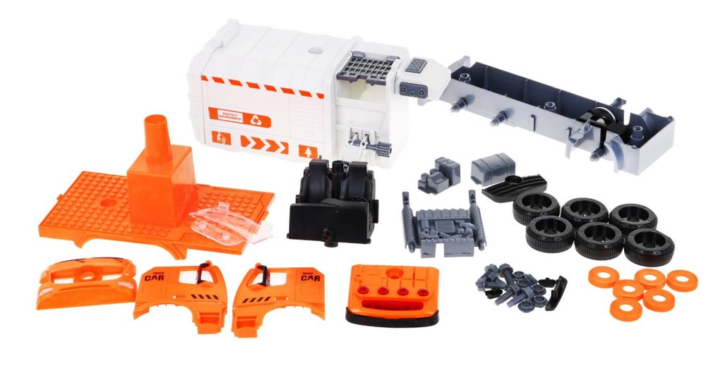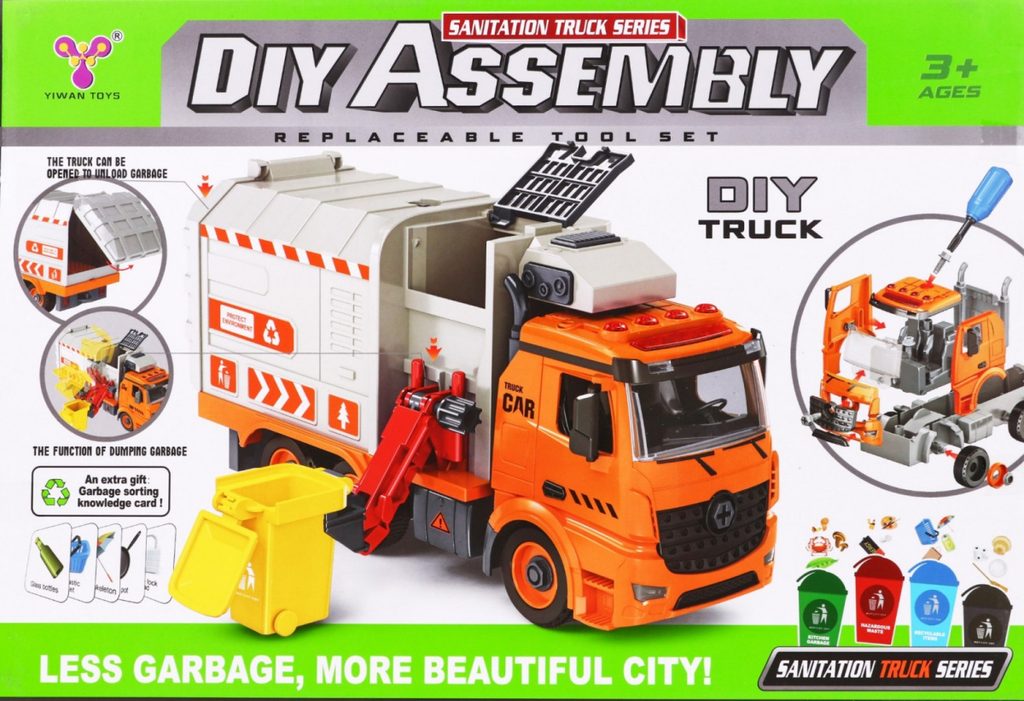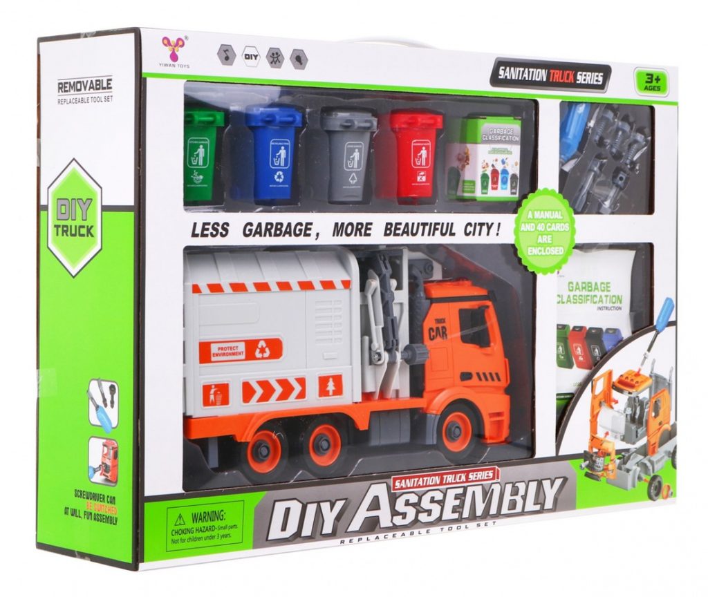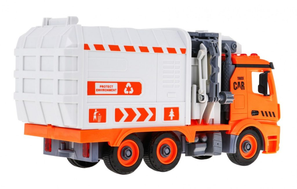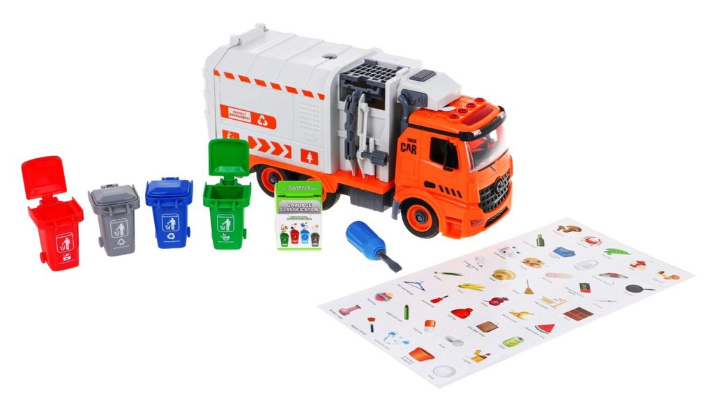 Tato sada kontejnerů a popelářského vozu je skvělým nástrojem pro učení hrou, který zaujme všechny malé nadšence do vozidel a kutily. Popelářský vůz lze pomocí přiloženého šroubováku s vyměnitelnými hroty rozebrat a znovu sestavit. Auto je vybaveno zvukovými a světelnými funkcemi a na boku má tyč pro zavěšení a zvedání kontejnerů na tříděný odpad. Sada obsahuje obrázkovou knihu s instrukcemi, které dítě naučí správně třídit odpad: zelený kontejner pro kuchyňský odpad, modrý pro recyklovatelné, šedý pro ostatní a červený pro nebezpečné. Hračka pomáhá rozvíjet ekologické povědomí a je určena pro děti od 3 let. Napájení zajišťují 3 baterie LR44, které jsou součástí balení.