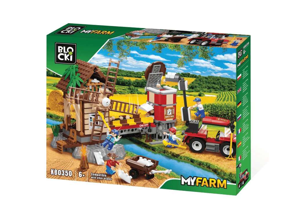 Stavebnice Blocki MyFarm mlýn umožní Vašemu dítěti stát se skutečným mlynářem. Stavebnice se skládá z 545 dílků, obsahuje kompletní mlýn s příslušenstvím, 4 postavičky zemědělců a traktor s vlečkou. Stavebnice zaručí dětem mnoho hodin zábavy, pomůže jim rozvíjet kreativitu, manuální dovednosti a zlepšuje logické myšlení. Stavebnice je kompatibilní se stavebnicemi ostatních světových značek jako je Lego, Sluban a další. Všechny dílky stavebnice se velmi snadno propojují a jsou vyrobeny z kvalitního plastu.