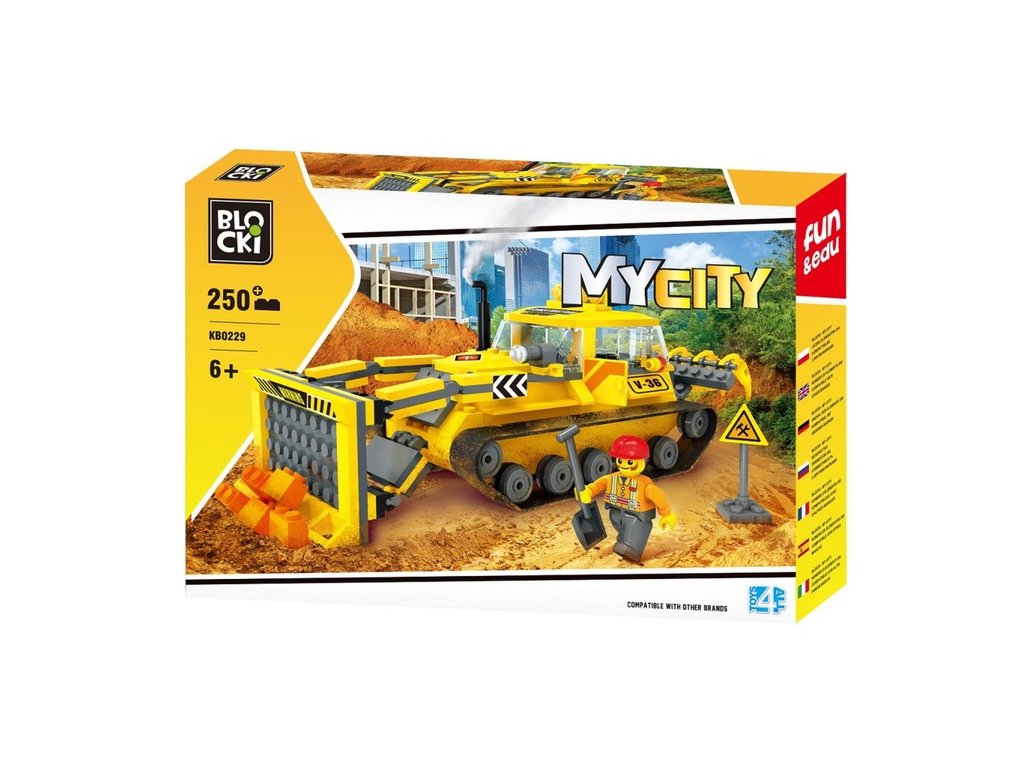 Stavebnice Blocki MyCity stavební buldozer umožní Vašemu dítěti stát se pravým stavebním dělníkem. Stavebnice se skládá z 250 dílků, obsahuje buldozer s pohyblivou radlicí a postavičku stavebního dělníka. Stavebnice zaručí dětem mnoho hodin zábavy, pomůže jim rozvíjet kreativitu, manuální dovednosti a zlepšuje logické myšlení. Stavebnice je kompatibilní se stavebnicemi ostatních světových značek jako je Lego, Sluban a další. Všechny dílky stavebnice se velmi snadno propojují a jsou vyrobeny z kvalitního plastu.