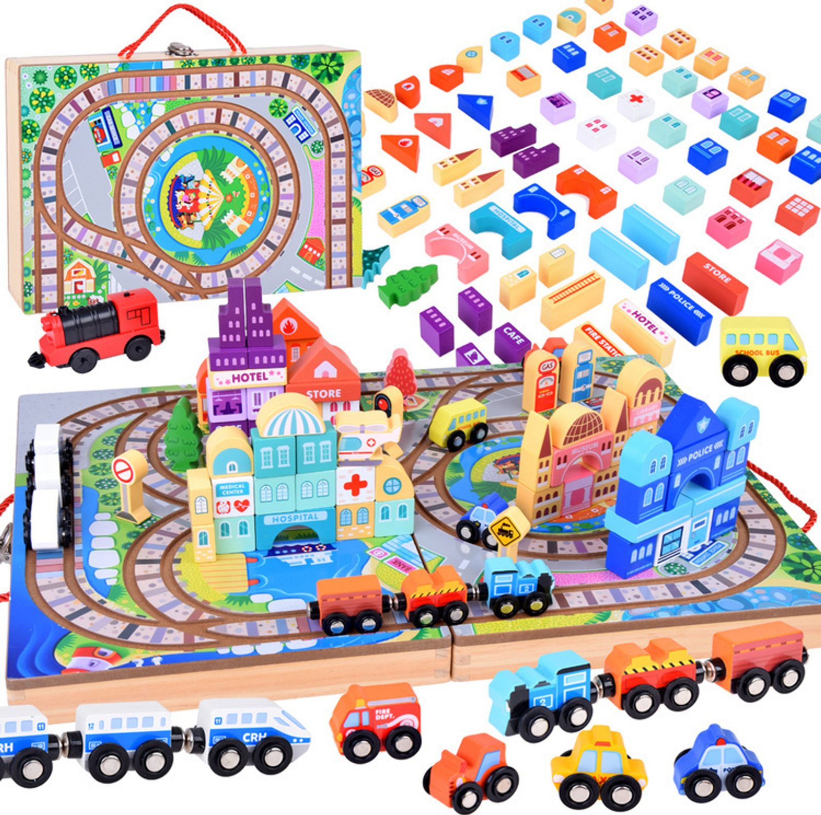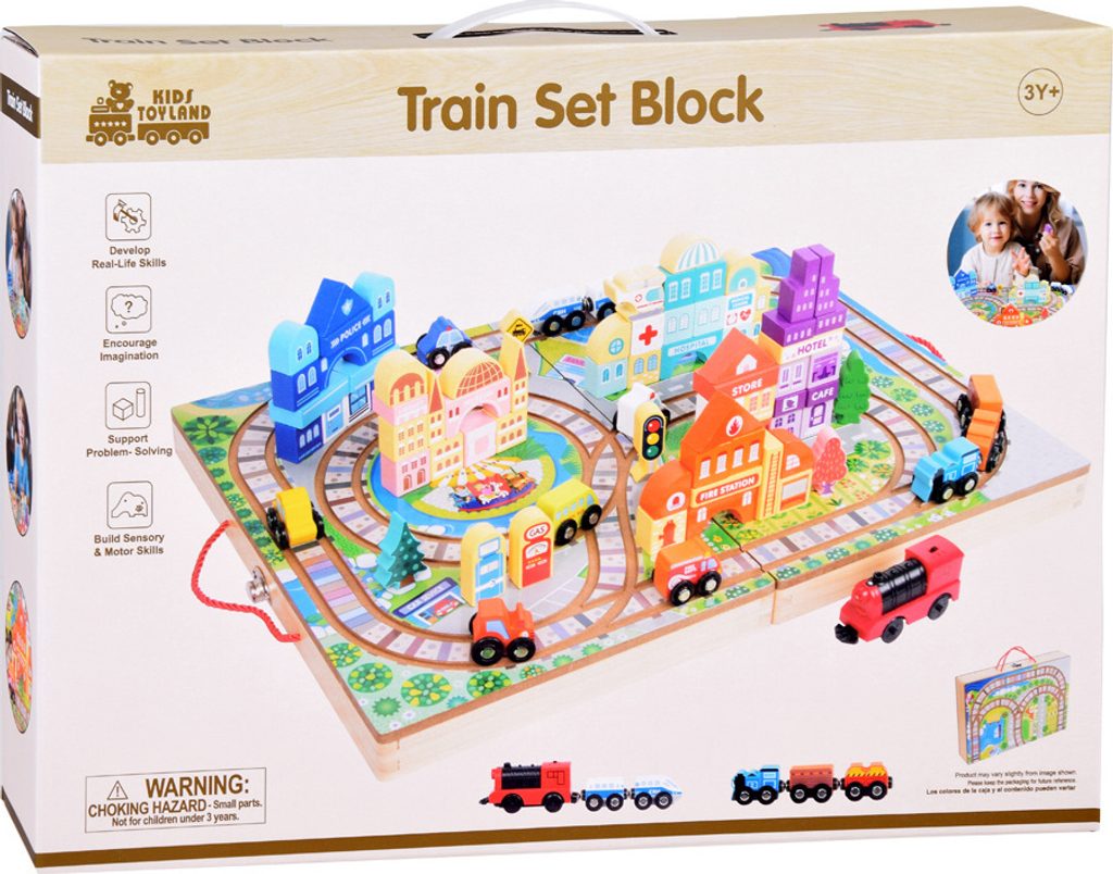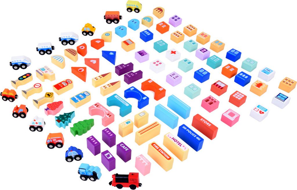Dřevěný vláček - Město s vláčkem a kolejemi, sada 89 dílků