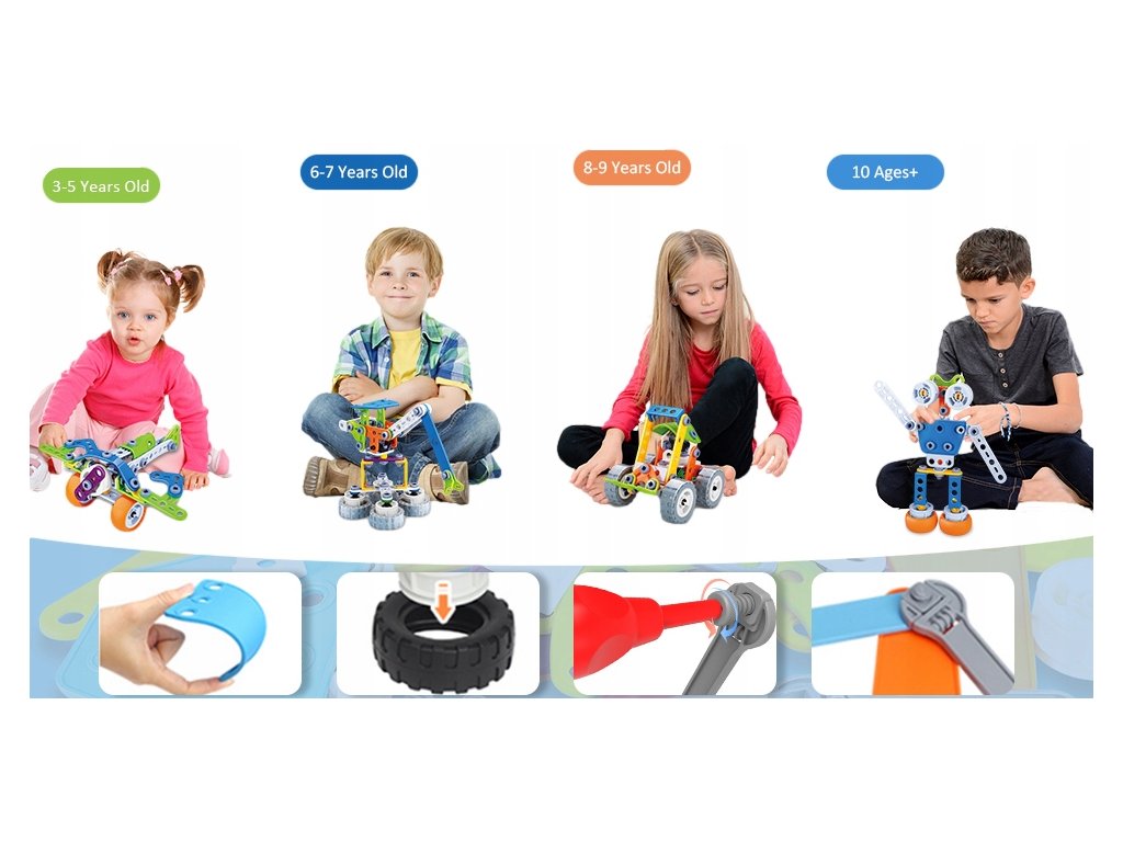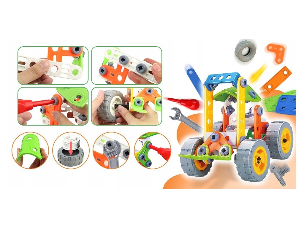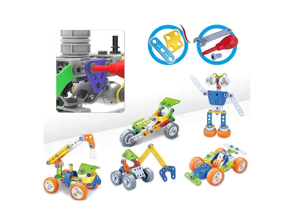 Barevná konstrukční stavebnice Build Play je ideální hračkou pro všechny malé konstruktéry. Skládá se z celkem 167 komponentů -konstrukčních dílů. Součástí sady je ruční šroubovák a francouzský klíč. Pomocí systému spojování konstrukčních prvků pomocí spojovacího materiálu si dítě může vytvořit celkem 10 různých konstrukcí jako jsou vozítka, letadla a postavičky. Hračka je určena pro děti od 5 let věku.