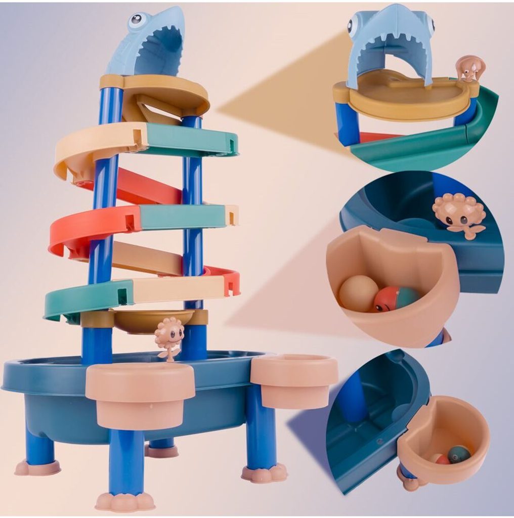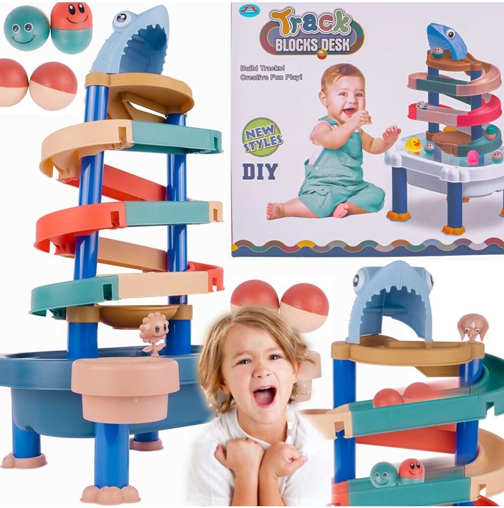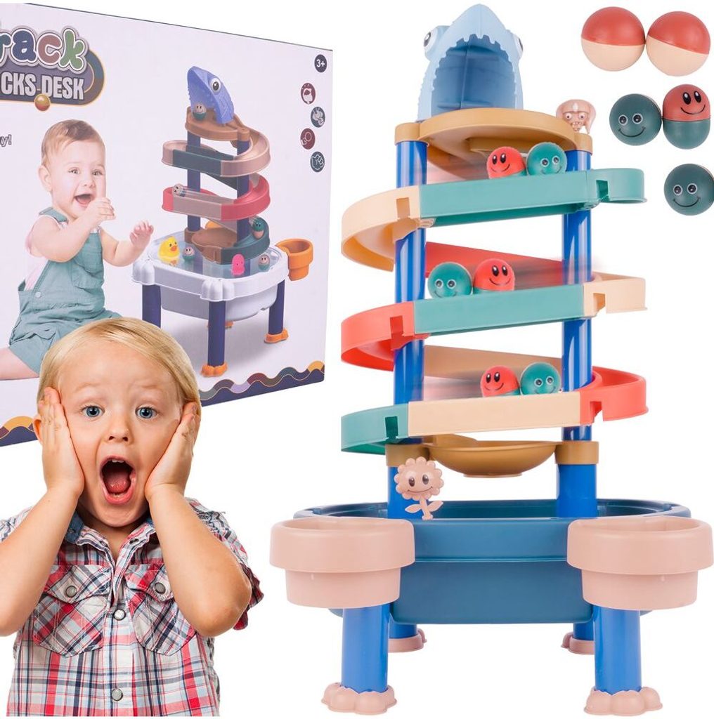 Dětská kuličková vodní dráha do vany Tracks Desk je ideální hračkou pro ty nejmenší děti. Sada obsahuje tyto součástI: konstrukční díly v různých tvarech a barvách ze kterých se vytváří dráha, 3 kuličky, "fazoli", hlavu žraloka, květinku a úložné prostory. Hračku lze využít jak s vou tak s pískem a bazének slouží i pro hru s jinými hračkami. Hračka je vyrobená z plastu v pestrobarevném provedení a určena pro děti od 3 let.