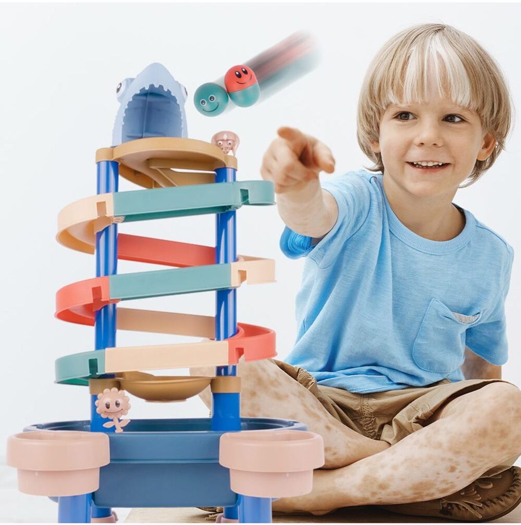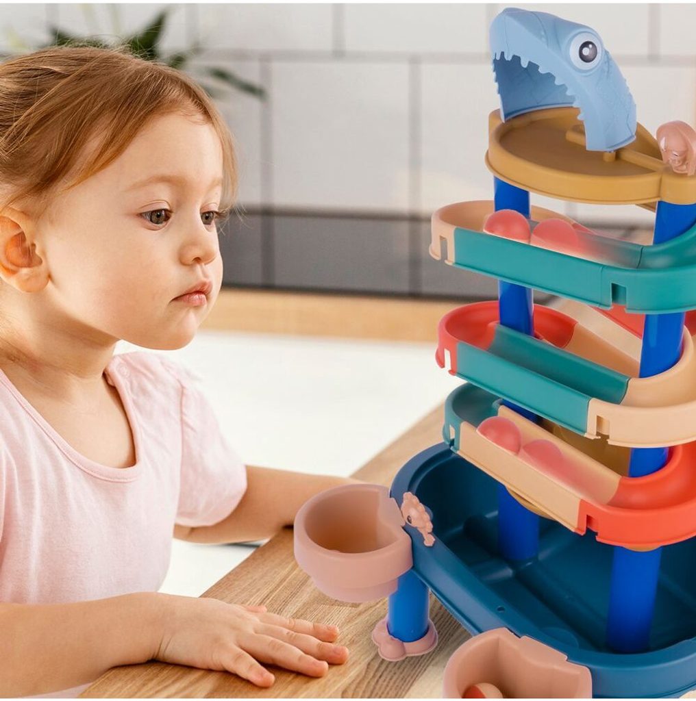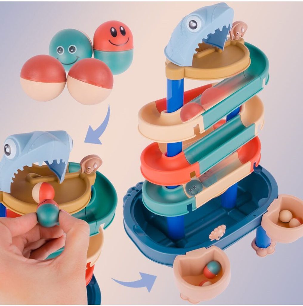 Dětská kuličková vodní dráha do vany Tracks Desk je ideální hračkou pro ty nejmenší děti. Sada obsahuje tyto součástI: konstrukční díly v různých tvarech a barvách ze kterých se vytváří dráha, 3 kuličky, "fazoli", hlavu žraloka, květinku a úložné prostory. Hračku lze využít jak s vou tak s pískem a bazének slouží i pro hru s jinými hračkami. Hračka je vyrobená z plastu v pestrobarevném provedení a určena pro děti od 3 let.
