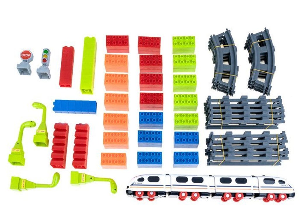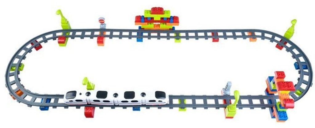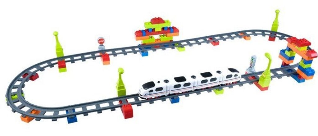 Stavebnicová vláčkodráha se zvuky Iron Horse pro nejmenší je ideální hračkou pro ty nejmenší děti kdy jim pomůže rozvíjet logické myšlení, rozpoznávání barev a tvarů, manuální dovednosti a motorickou koordinaci. Vláček je poháněný manuálně, během jízdy vydává melodie a zvuky jedoucího vlaku. Součástí sady je 74 kusů stavebnicových dílků ze kterých si může dítě sestavit tunel nebo budovu. Celková délka kolejí je 320 cm. Hračka je vyrobena z plastu a určena pro děti od 3 let.