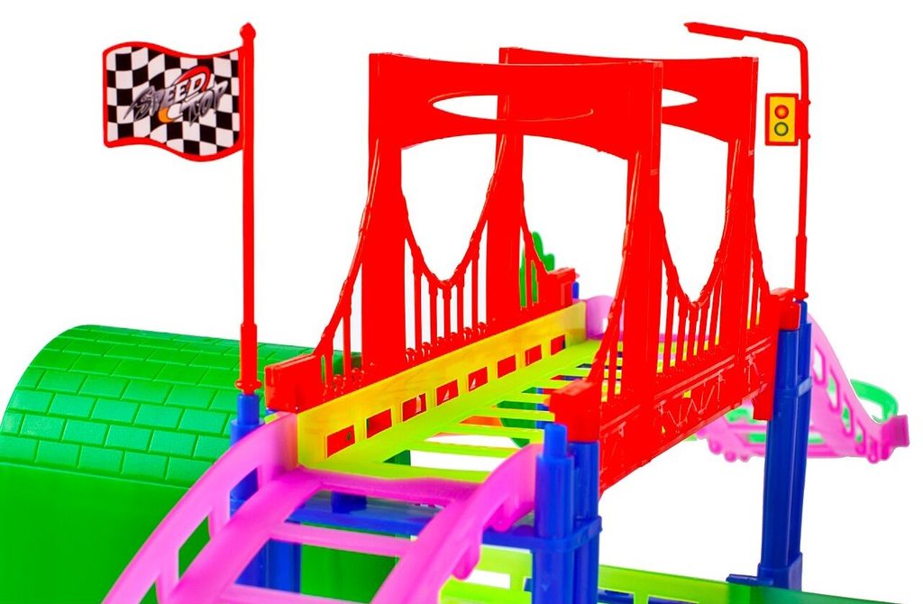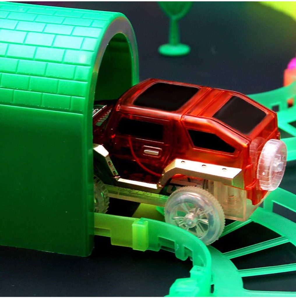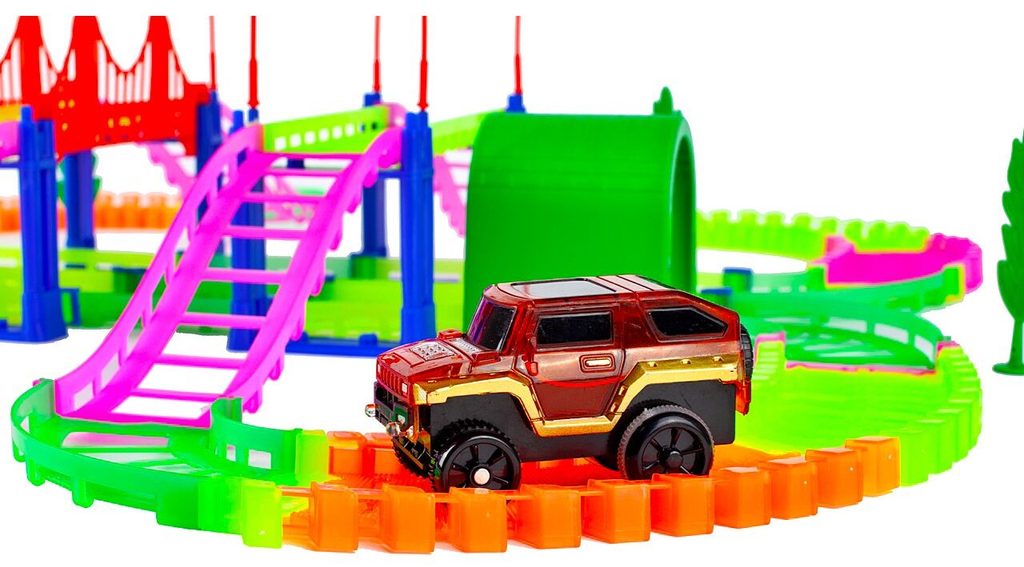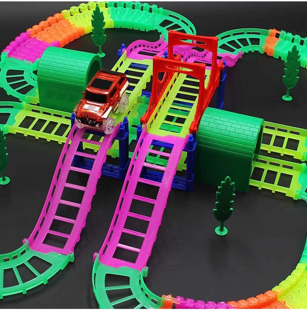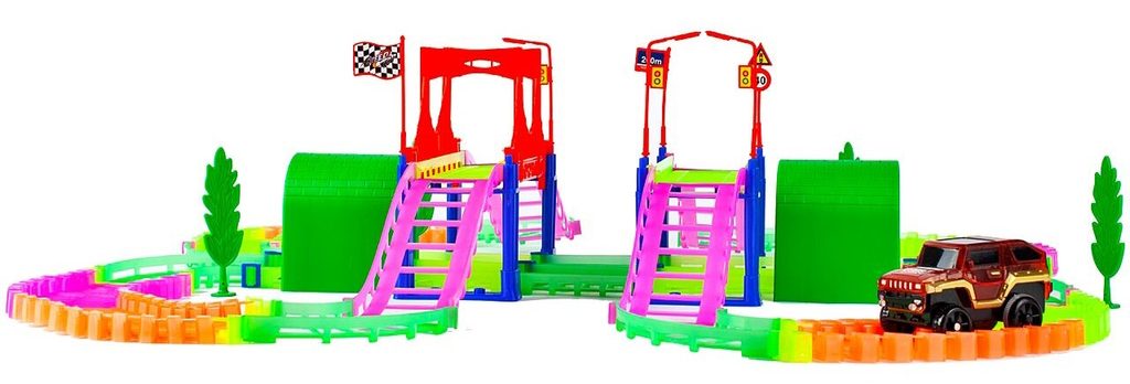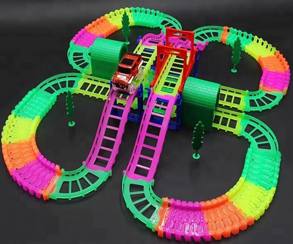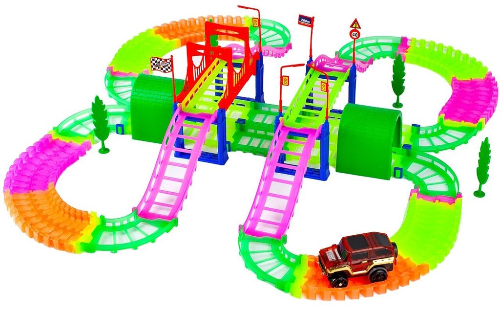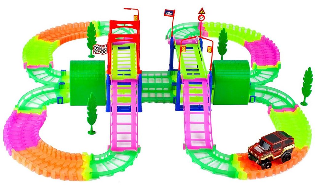Dětská svítící autodráha Luminous Rail se 135 elementy učí dětí představivost a podporuje kreativitu. Dráha je elastická a fluorescenční lze ji tak libovolně otáček a kombinovat a tmě svítí. Součástí dráhy jsou nadjezdy, stromečky, mosty a tunely. Autíčko, které je součástí balení je napájeno baterií a má LED podsvětlení. Hračka je určena pro děti od 36 měsíců věku.