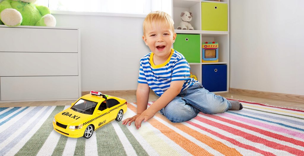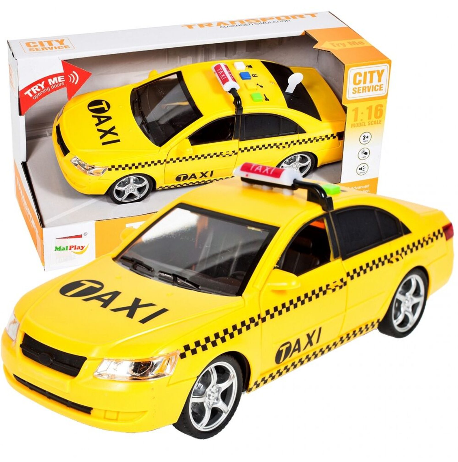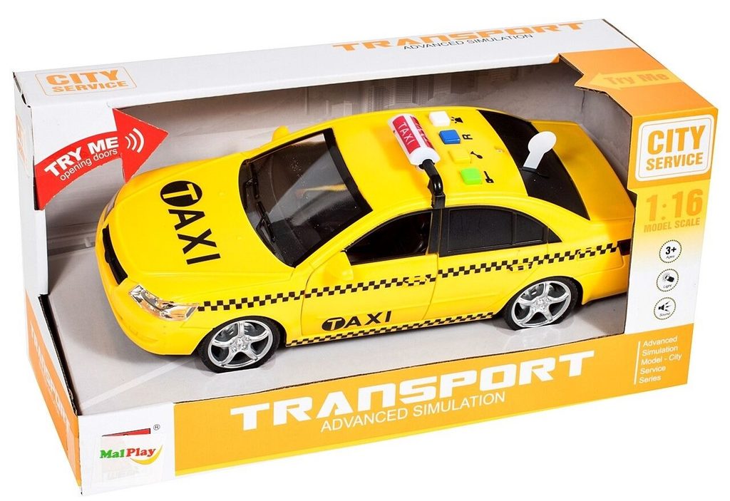 Taxikářské auto na setrvačník City Service je ideální hračkou pro rozvoj manuální zručnosti a logického myšlení. Je vybaveno tlačítky na střeše, které spouští různé zvuky. Přední dveře autíčka jsou otevírací. Pohon zajišťuje setrvačník na předních kolech. Hračka je určena pro děti od 36 měsíců věku.