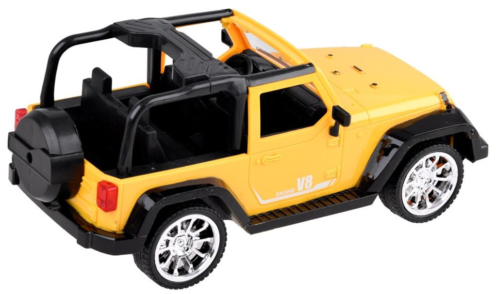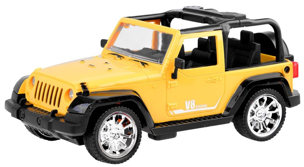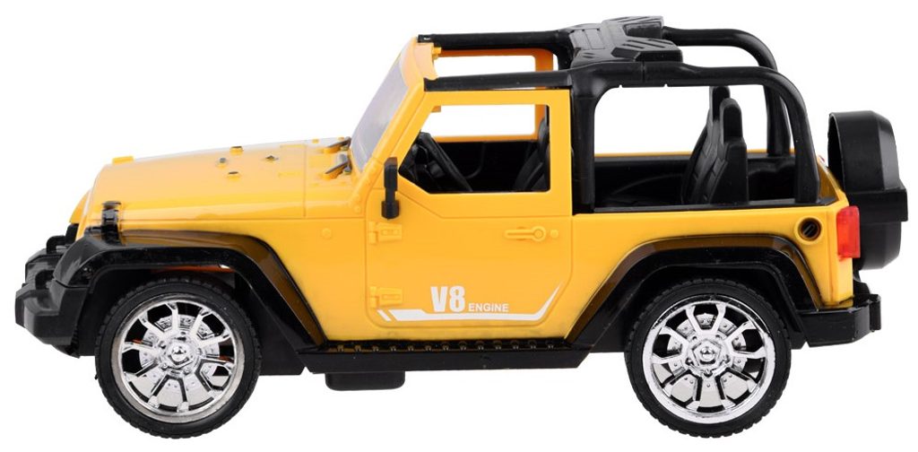 Terénní autíčko Jeep Engine V8 s dálkovým ovládáním 27MHz umožnuje jízdu dopředu a dozadu, zatáčí doprava a doleva. Je vybaveno gumovými koly a také předními svítícími světly. Součástí balení je dálkový ovladač se 2 tlačítky pro změnu směru jízdy a jízdu vpřed a vzad. Ovladač je napájen bateriemi, které nejsou součástí balení. Autíčko je vyrobeno z plastu a má certifikaci CE.