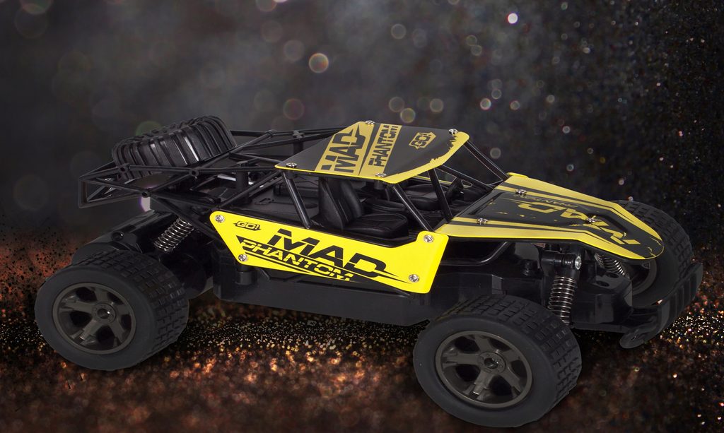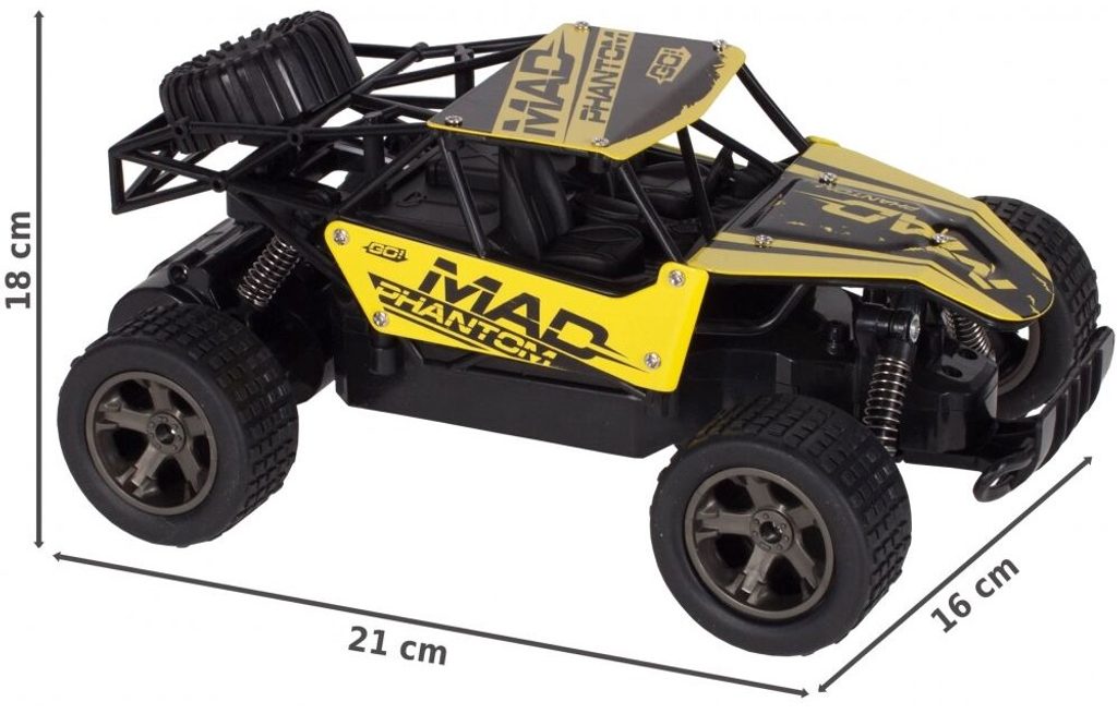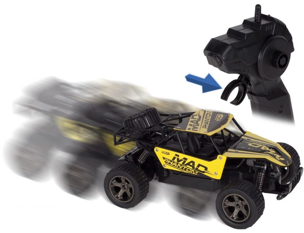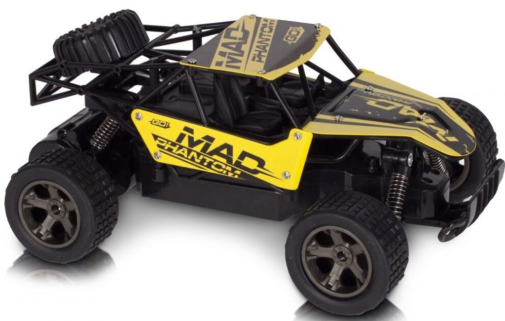 Terénní autíčko Mad Phantom na dálkové ovládání s dálkovým ovladáním 2,4G umožnuje jízdu dopředu a dozadu, zatáčí do všech směrů. Je osazeno gumovými koly s velmi dobrou přilnavostí a je vybaveno silnými tlumiči nárazů. Součástí balení je 4,8V akumulátor napájení autíčka, nabíječka a dálkový ovladač. Dálkové ovládání je napájeno bateriemi, které nejsou součástí balení. Autíčko je vyrobeno z odolného plastu a má certifikaci CE.