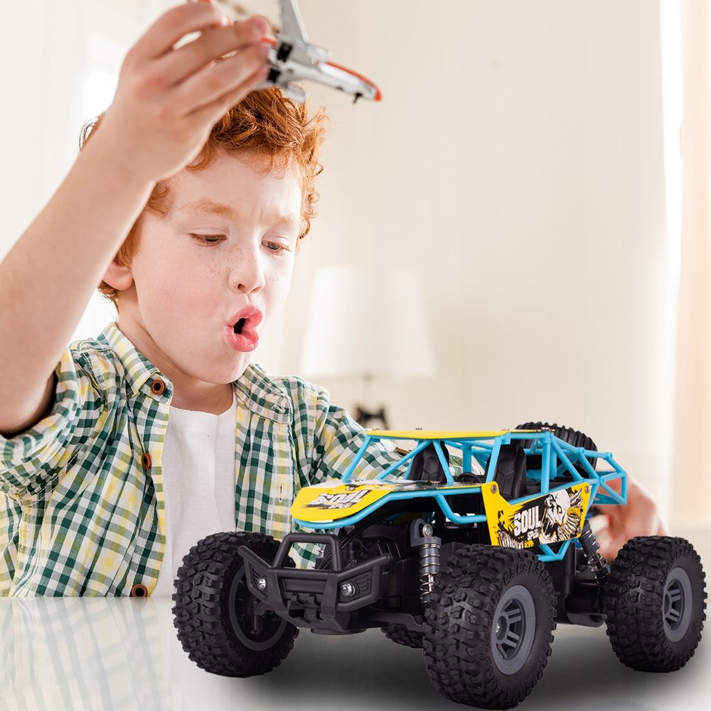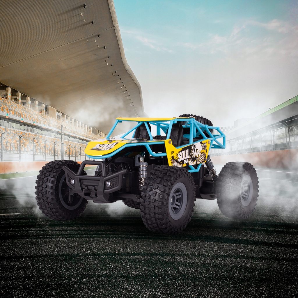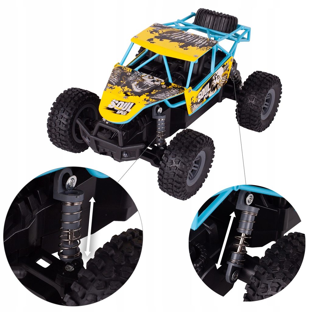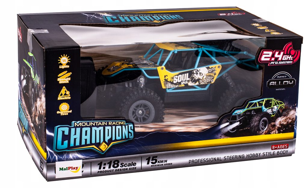 Terénní autíčko Mountain Champion na dálkové ovládání s dálkovým ovladáním 2,4GHz umožnuje jízdu dopředu a dozadu, zatáčí do všech směrů. Je osazeno gumovými koly s velmi dobrou přilnavostí a je vybaveno silnými tlumiči nárazů. Součástí balení je 3,7V 500mAh akumulátor napájení autíčka, nabíječka a dálkový ovladač. Dálkové ovládání je napájeno bateriemi, které nejsou součástí balení. Autíčko je vyrobeno z odolného plastu a má certifikaci CE.