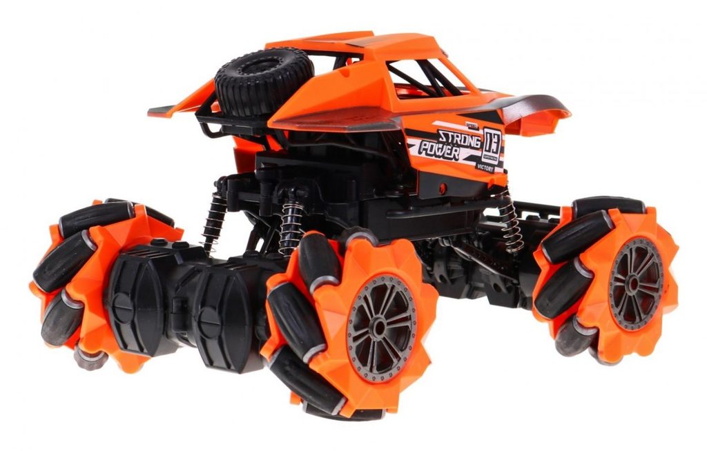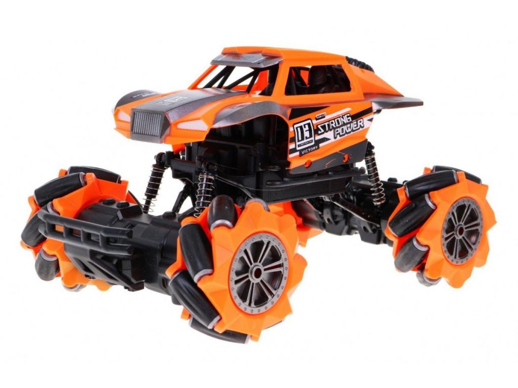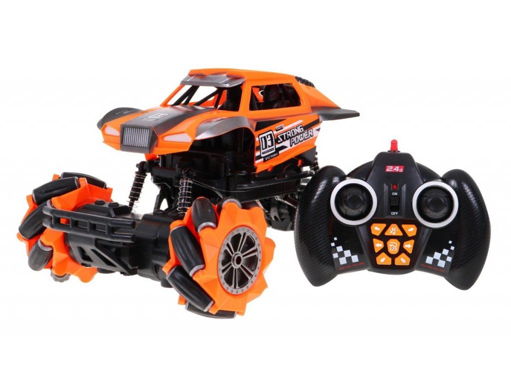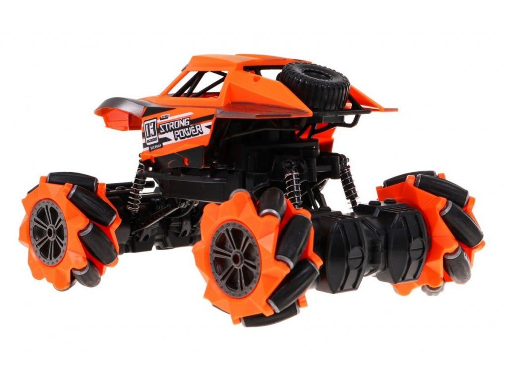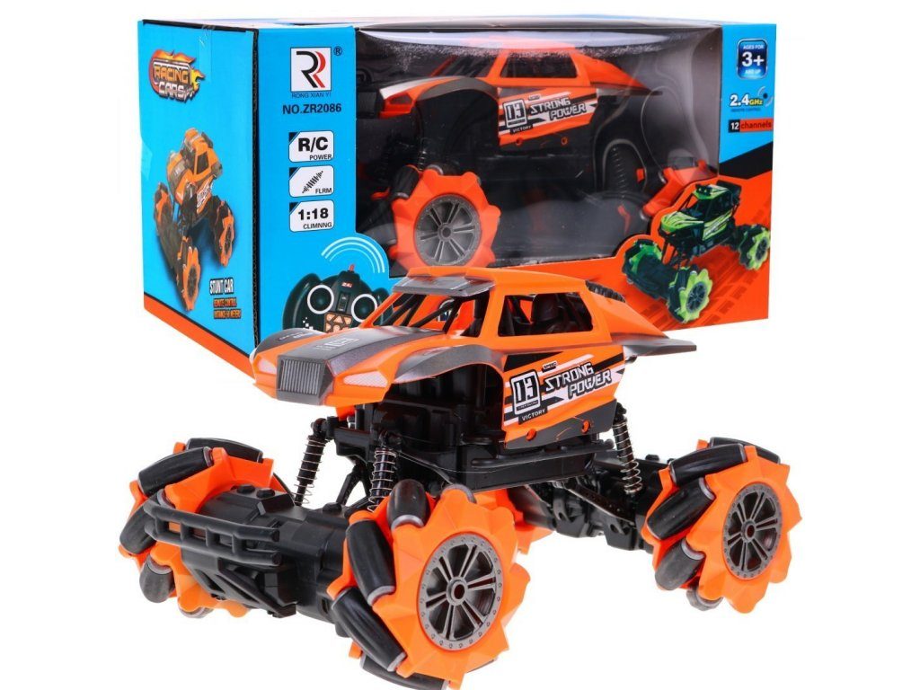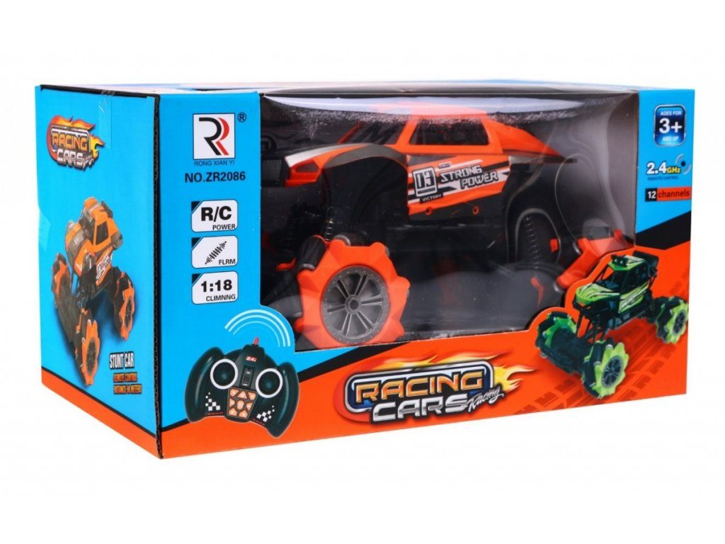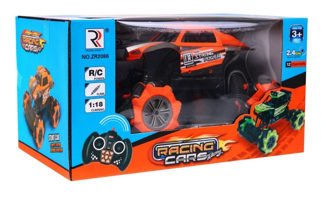 Terénní auto na dálkové ovládání s futuristickým designem Racing Crawler s dálkovým ovladáním 2,4G umožnuje jízdu dopředu a dozadu, má otáčecí kola doprava a doleva a umožňuje také boční jízdu. Každé kolo másvůj samostatný tlumič nárazů. Ovládání autíčka je velmi jednoduché, pomocí dvou joysticků se ovládá směr a pomocí šesti tlačítek směr jízdy a demo jízda. Součástí balení je akumulátor,dálový ovladač a USB nabíječka. Dálkové ovládání je napájeno bateriemi, které nejsou součástí balení. Autíčko je vyrobeno z plastu a má certifikaci CE.