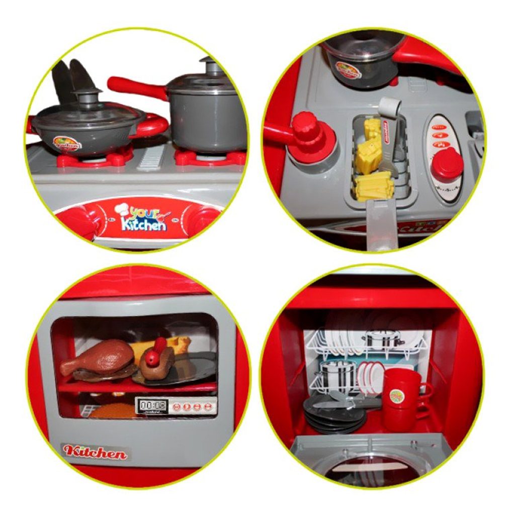 Velká dětská kuchyňka Interest Kitchen se zvukovými a světelnými efekty je určena pro děti od 3 let věku. Je vybavena příslušenstvím jako jsou příbory, talíře, hrnce, imitace potravin a mnoho dalších. Vaše dítě se určitě s touto velkou kuchyňkou nudit nebude. Trouba kuchyňky je otevírací. Je vyrobena z plastu v pestrobarevném provedení.
