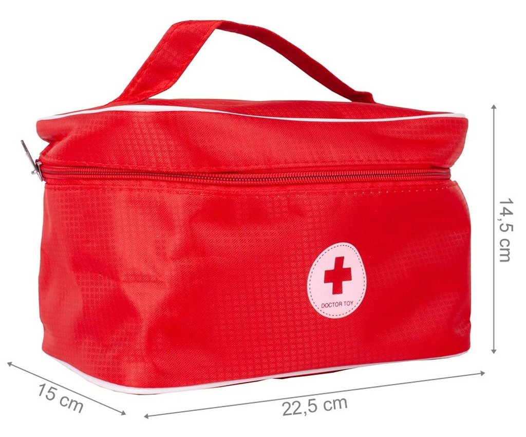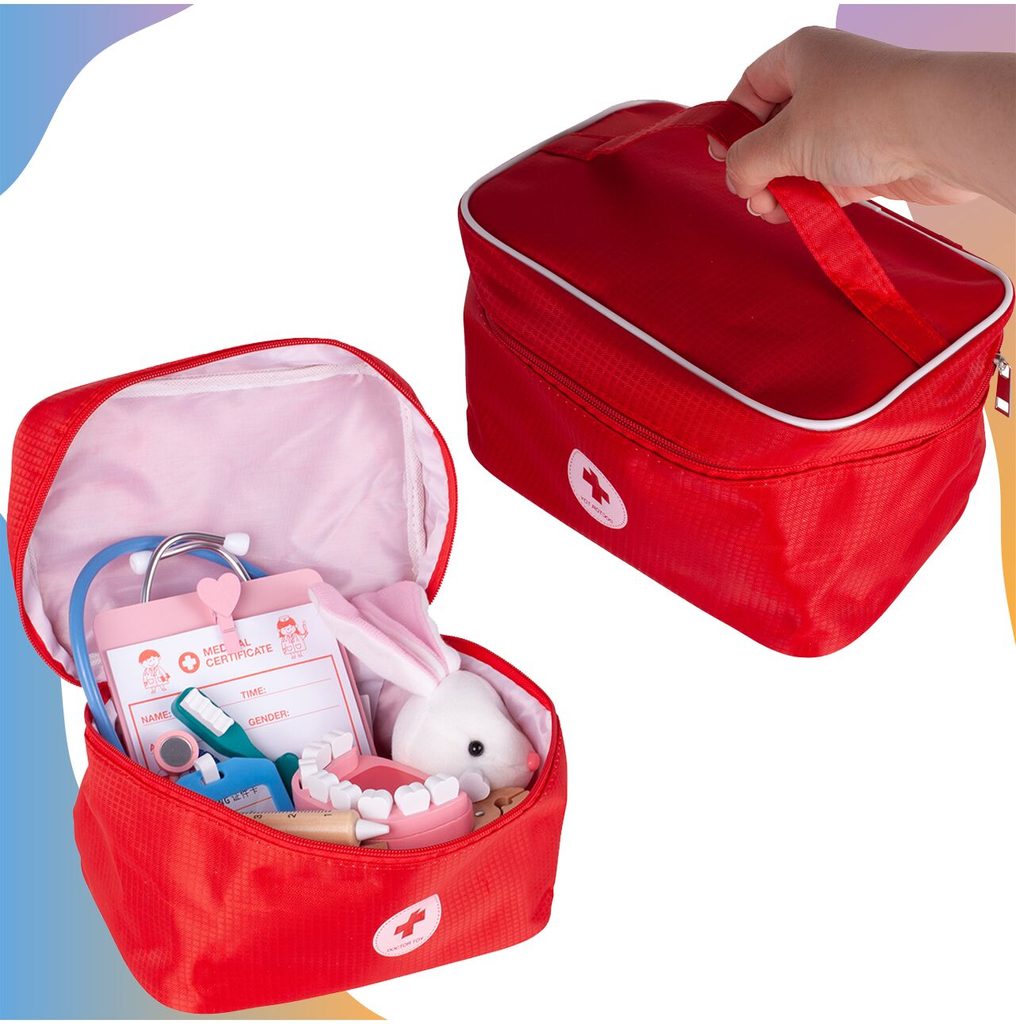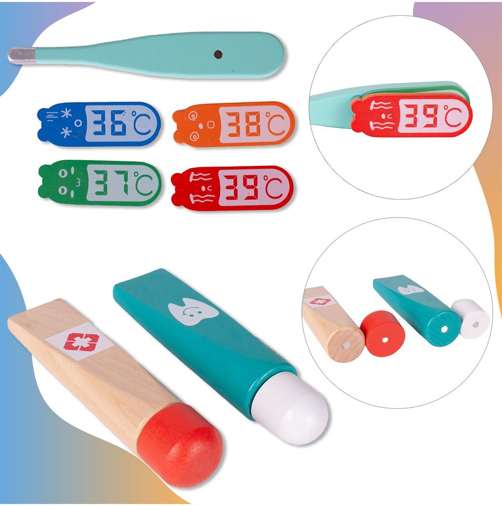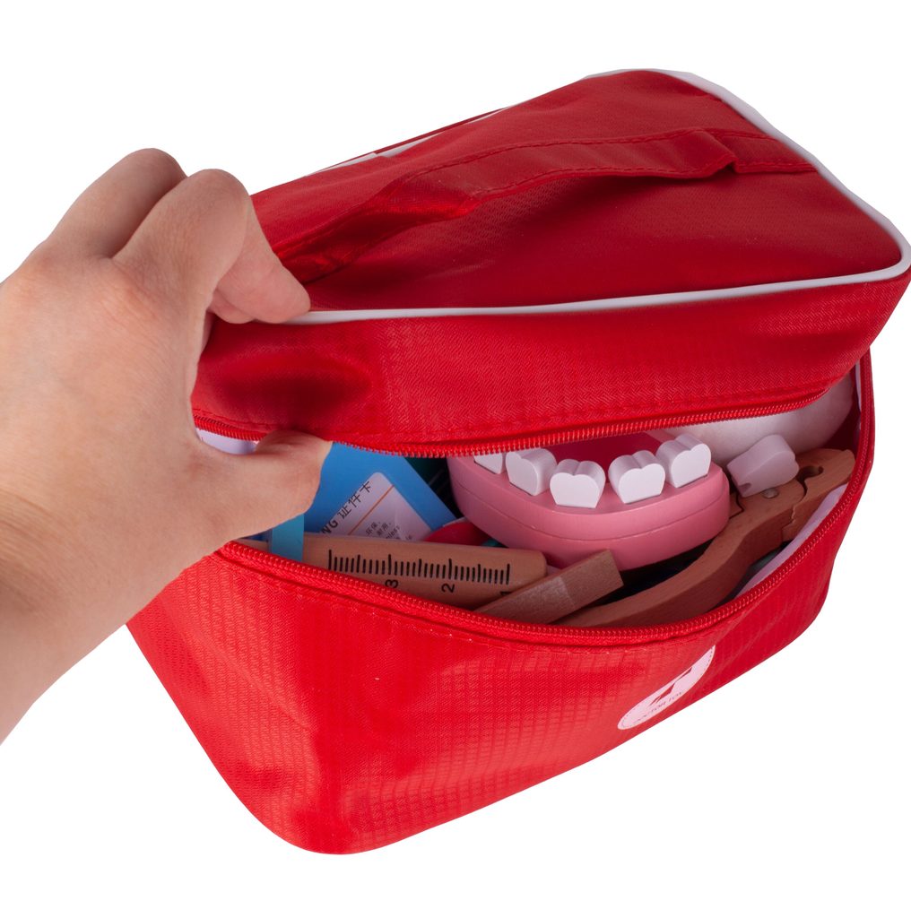 Velká dřevěná souprava Malý zubař je skvělou hračkou pro všechny holčičky a chlapečky. Sada obsahuje mnoho součástí kdy je vše uloženo v červené taštičce s obrázkem. Dítě zde nalezne plyšového králíčky, stetoskop, zubařské zrcátko, vrták, kleště, stříkačku, identifikační kartičku, imitace léků, pastu, čelist s 9 vyjímatelnými zoubky a mnoho dalších. Vaše dítě se určitě s touto hračkou nudit nebude a návštěva u skutečného zubaře pro něj nebude tolik stresující. Hračka je určena pro děti od 36 měsíců věku.