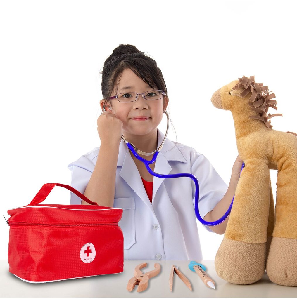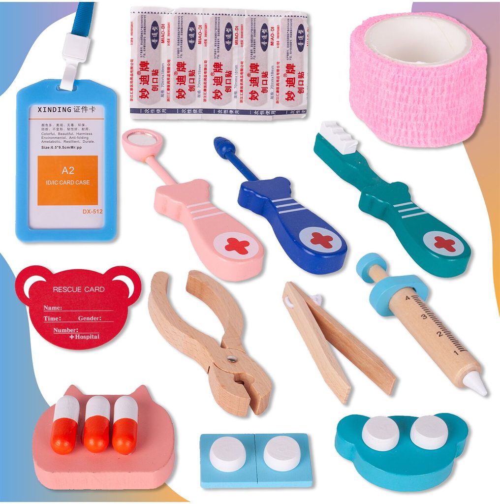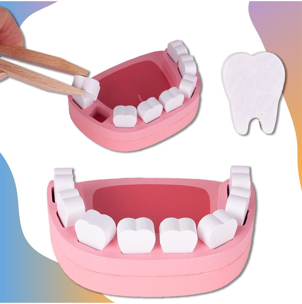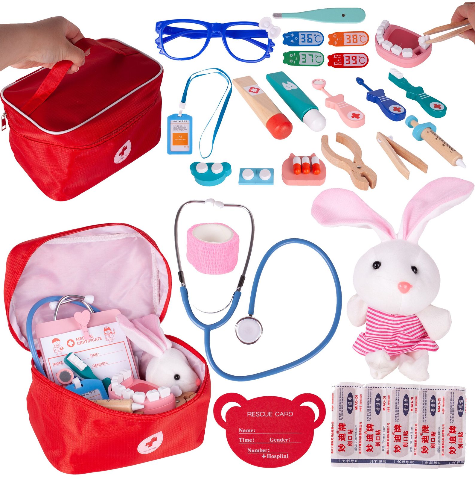 Velká dřevěná souprava Malý zubař je skvělou hračkou pro všechny holčičky a chlapečky. Sada obsahuje mnoho součástí kdy je vše uloženo v červené taštičce s obrázkem. Dítě zde nalezne plyšového králíčky, stetoskop, zubařské zrcátko, vrták, kleště, stříkačku, identifikační kartičku, imitace léků, pastu, čelist s 9 vyjímatelnými zoubky a mnoho dalších. Vaše dítě se určitě s touto hračkou nudit nebude a návštěva u skutečného zubaře pro něj nebude tolik stresující. Hračka je určena pro děti od 36 měsíců věku.